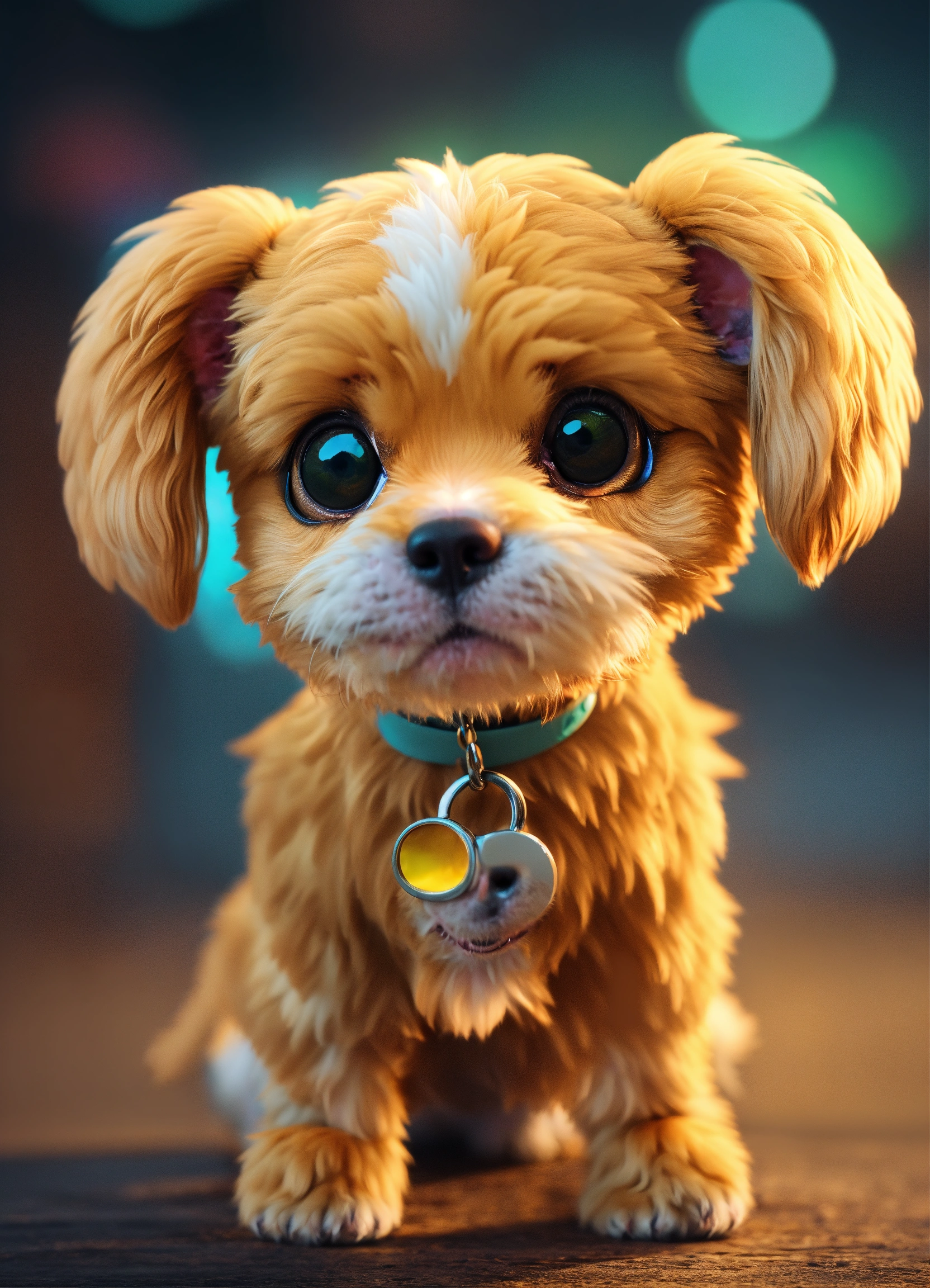4d photographic image of full body image of a cute little chibi dog realistic, vivid colors octane render trending on artstation, artistic photography, photorealistic concept art, soft natural volumetric cinematic perfect light, uhd no background