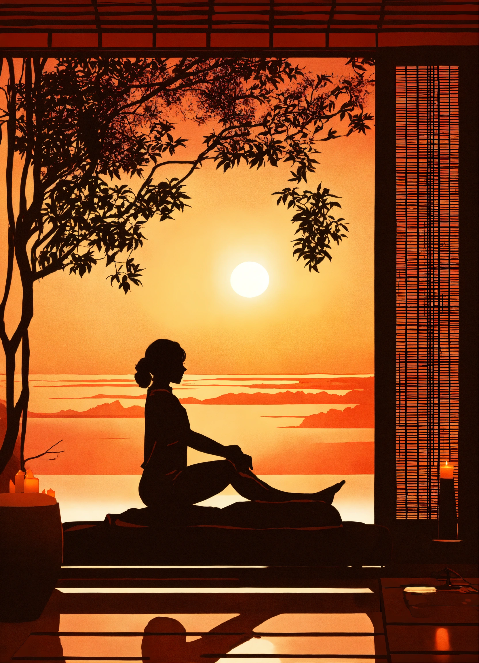 Please generate an image of the silhouette of a woman taking a relaxing massage therapy in a spa