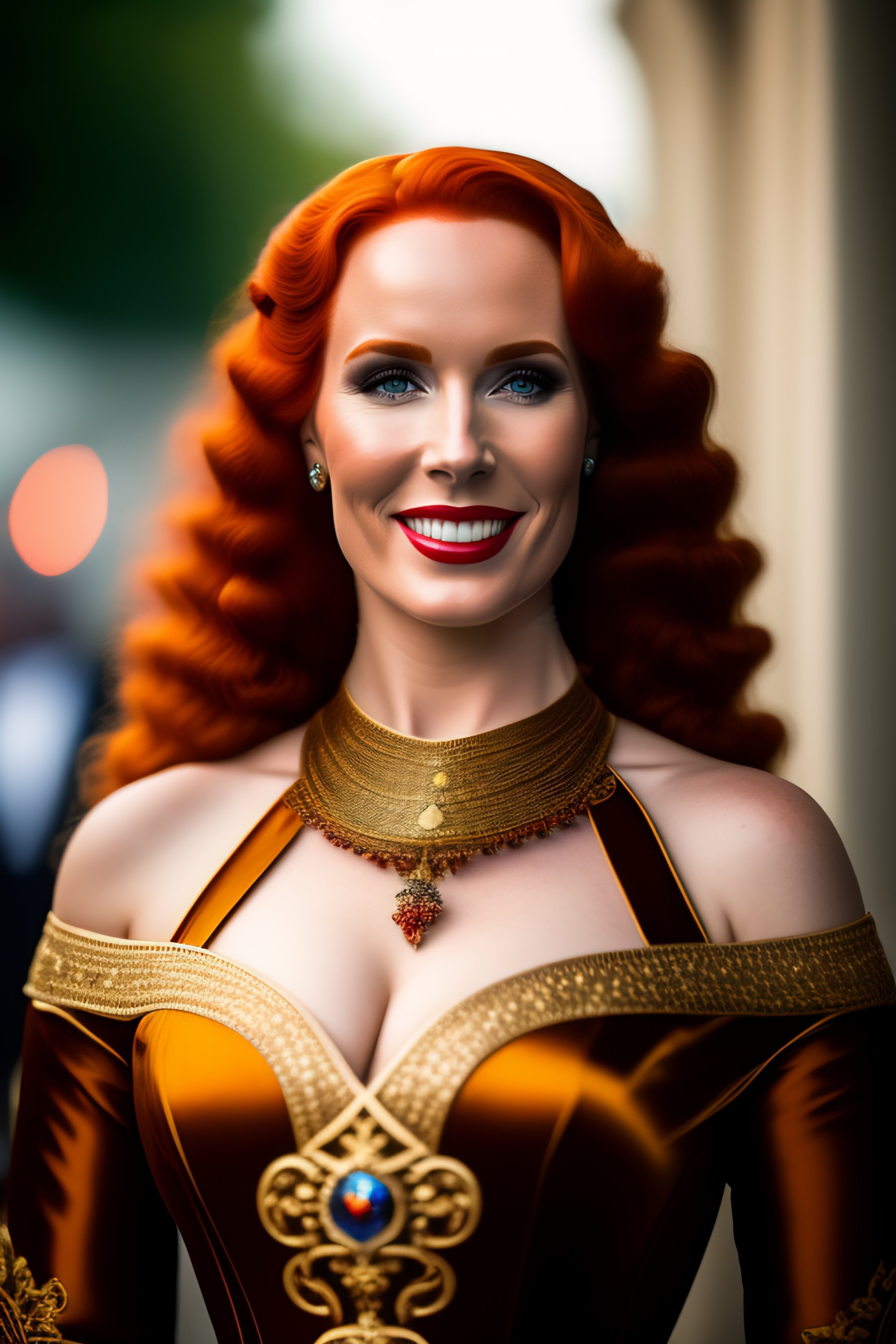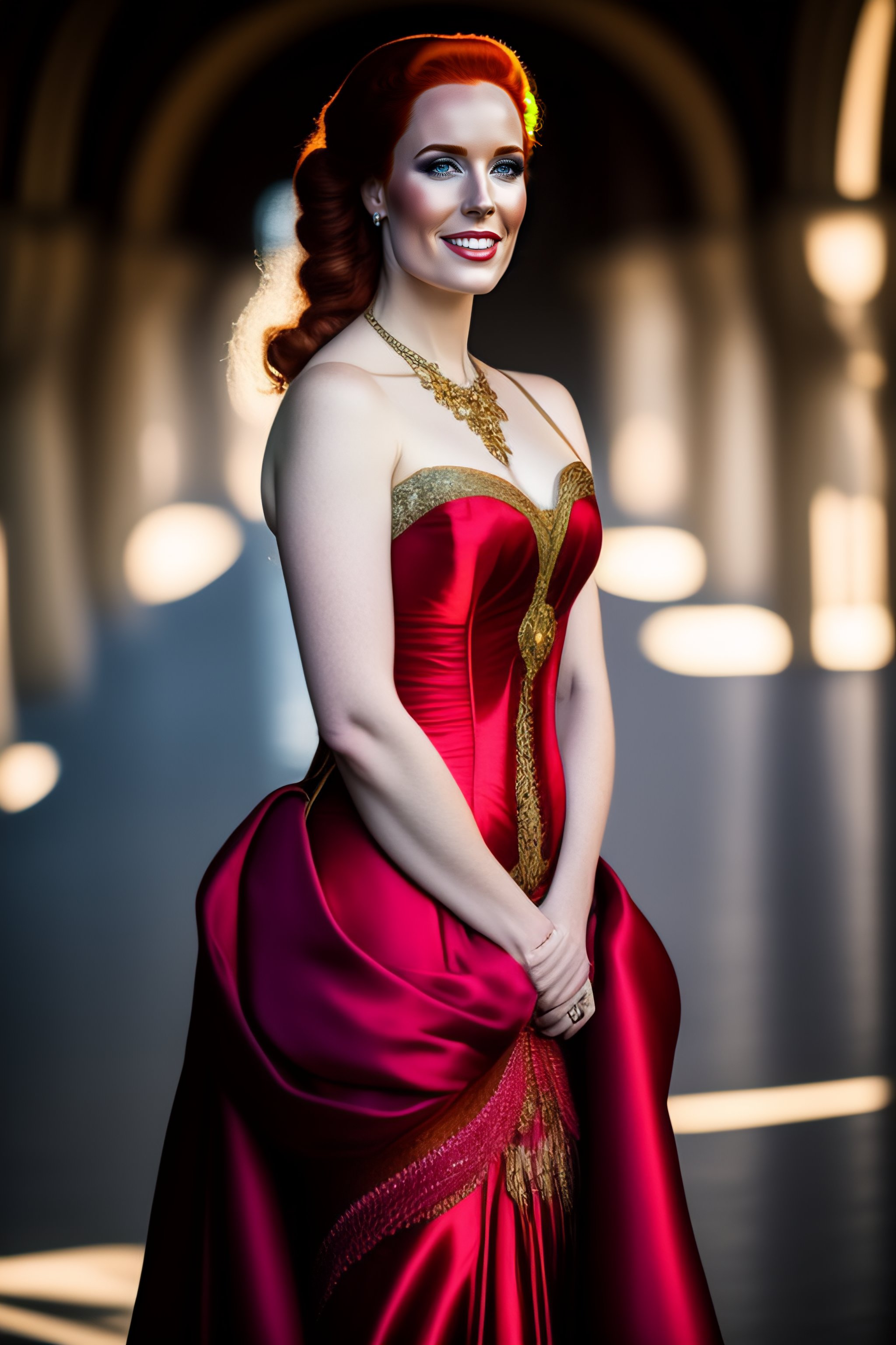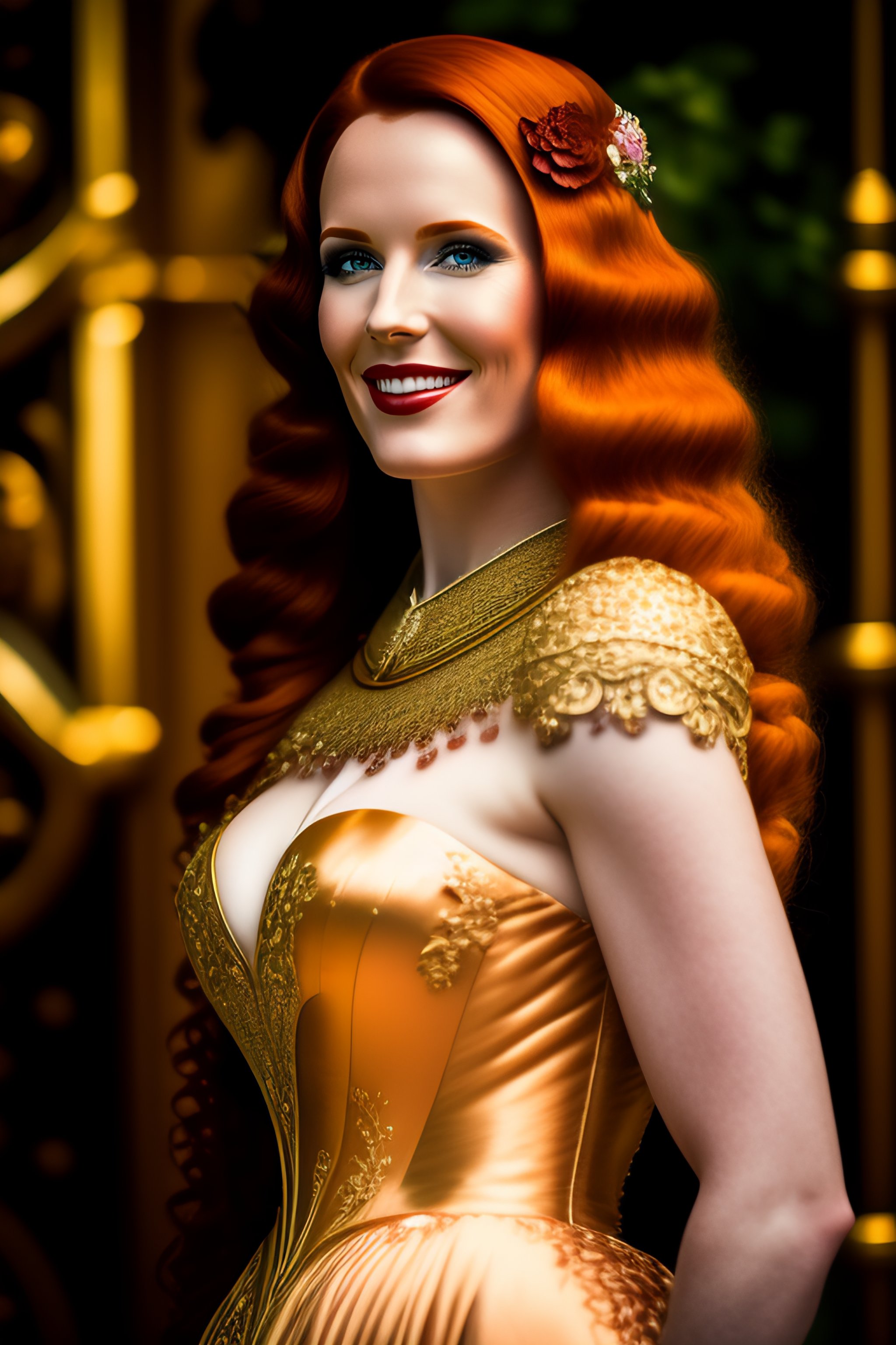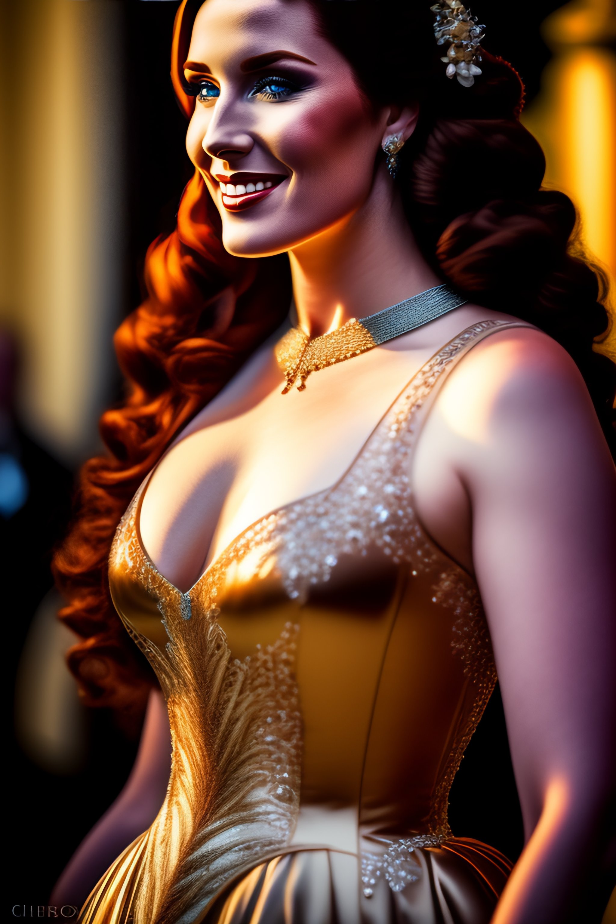 Simone simons smiles, realistic detailed, beautiful gorgeous, art nouveau dress, proportional body, art by gustave courbet, film, nikon 70-200mm f/2.8g