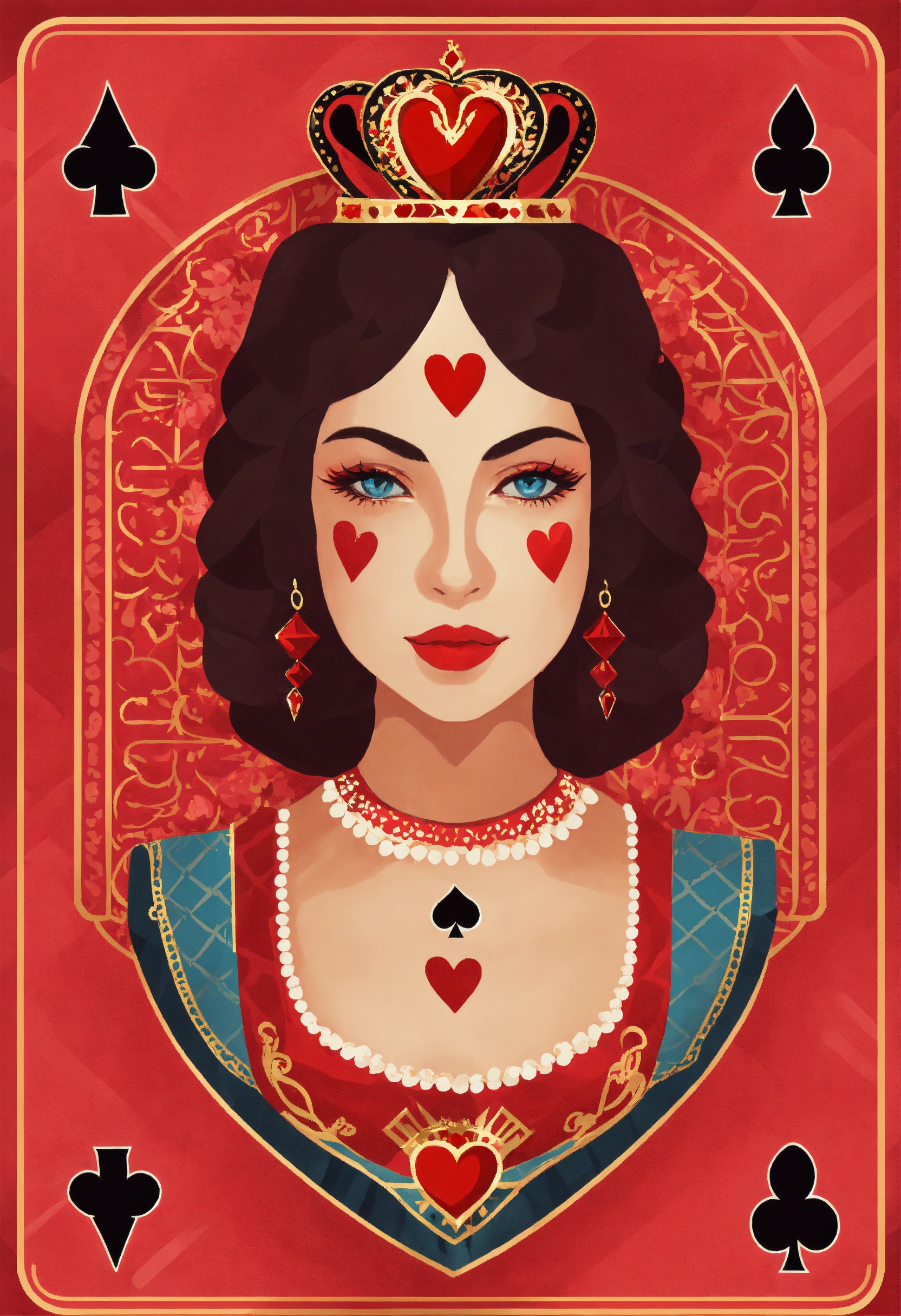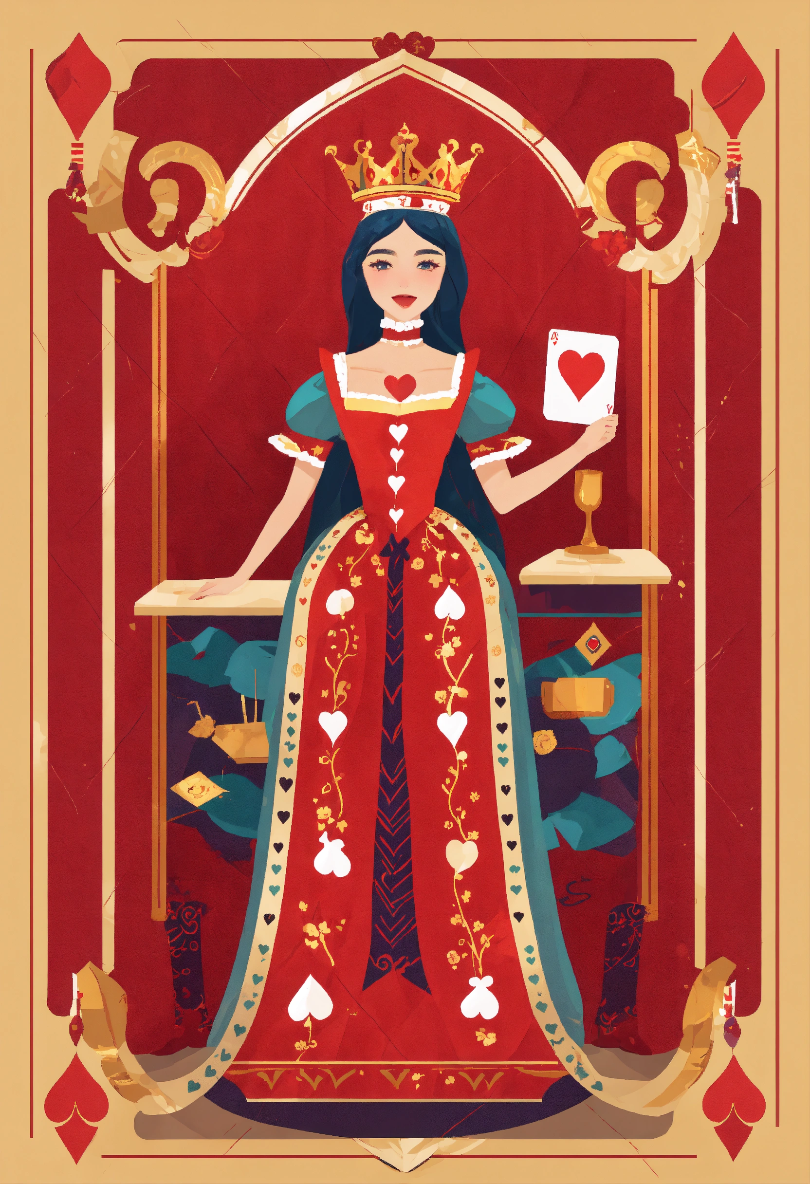 A queen of hearts playng card flat design