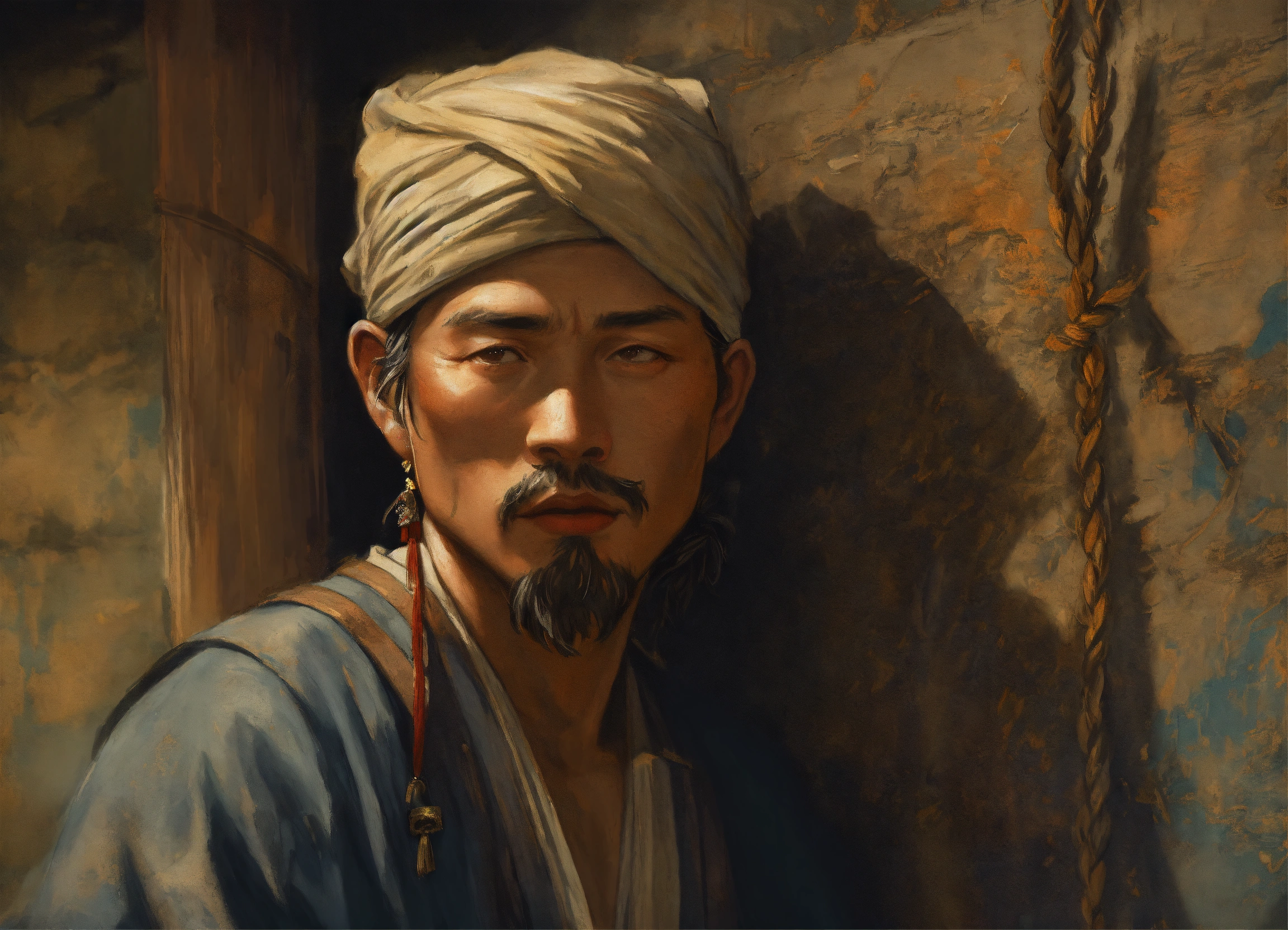 Close up, veteran chinese farm workers hidden over a wall, wearing dirty ruined robes, head bandana, pirate style, 16th century, bahamas, colonial, highly detailed, epic, dramatic, dark ambient, intrincate, digital painting, art by donato giancola and james gurney, trending on artstation, pinterest.