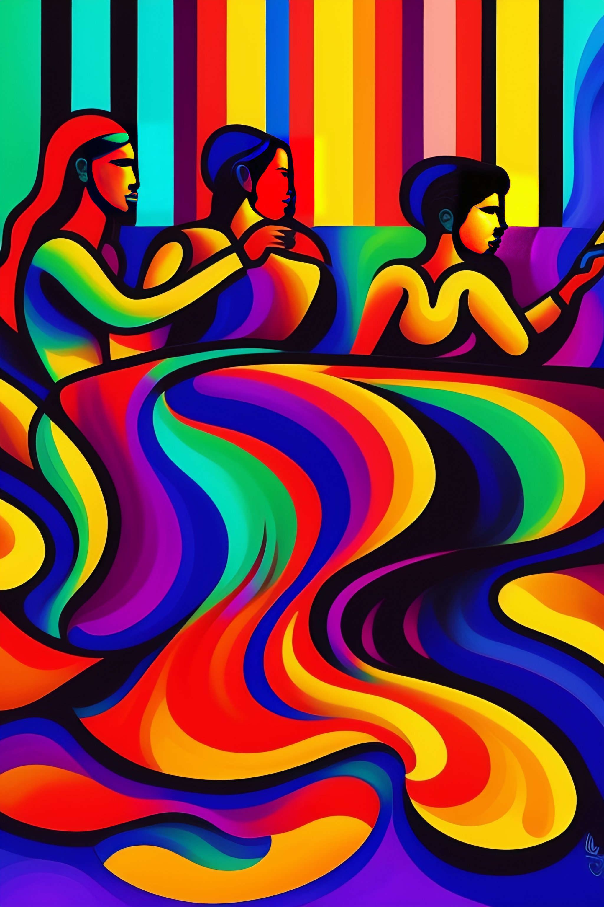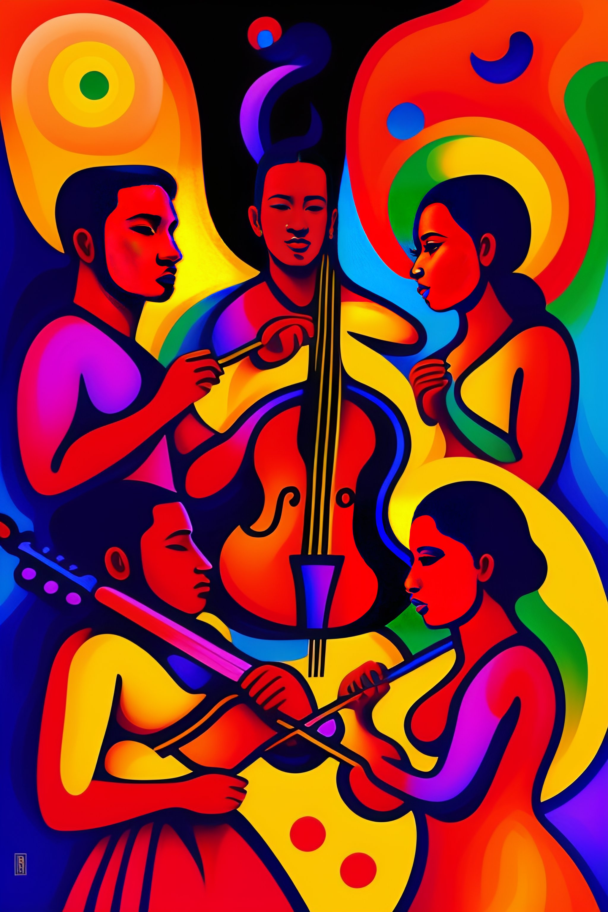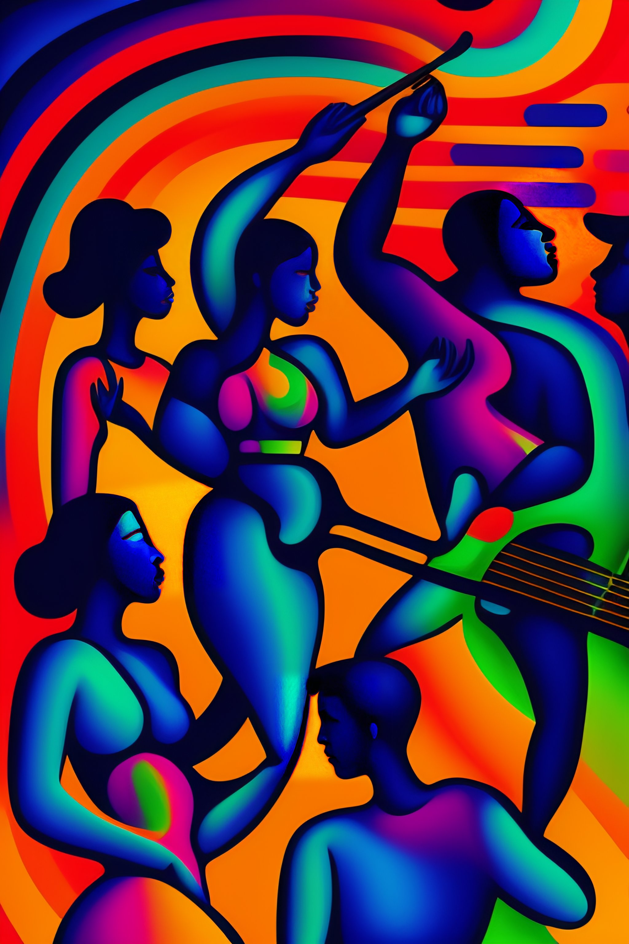 A painting of a group of men and women playing instruments, very powerful and free, dance wild, an ultrafine detailed painting behance, artwork, fauvism, academic art