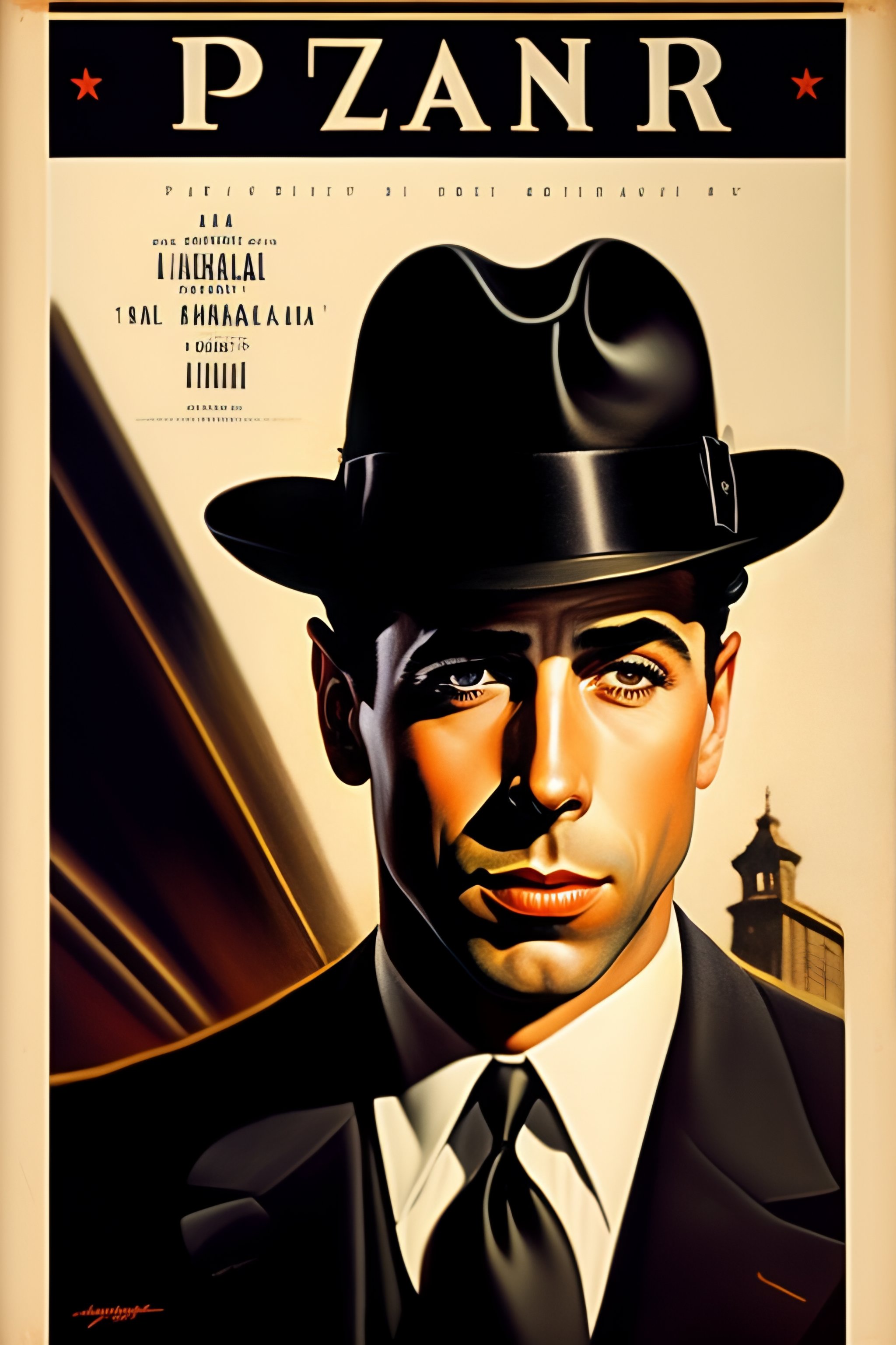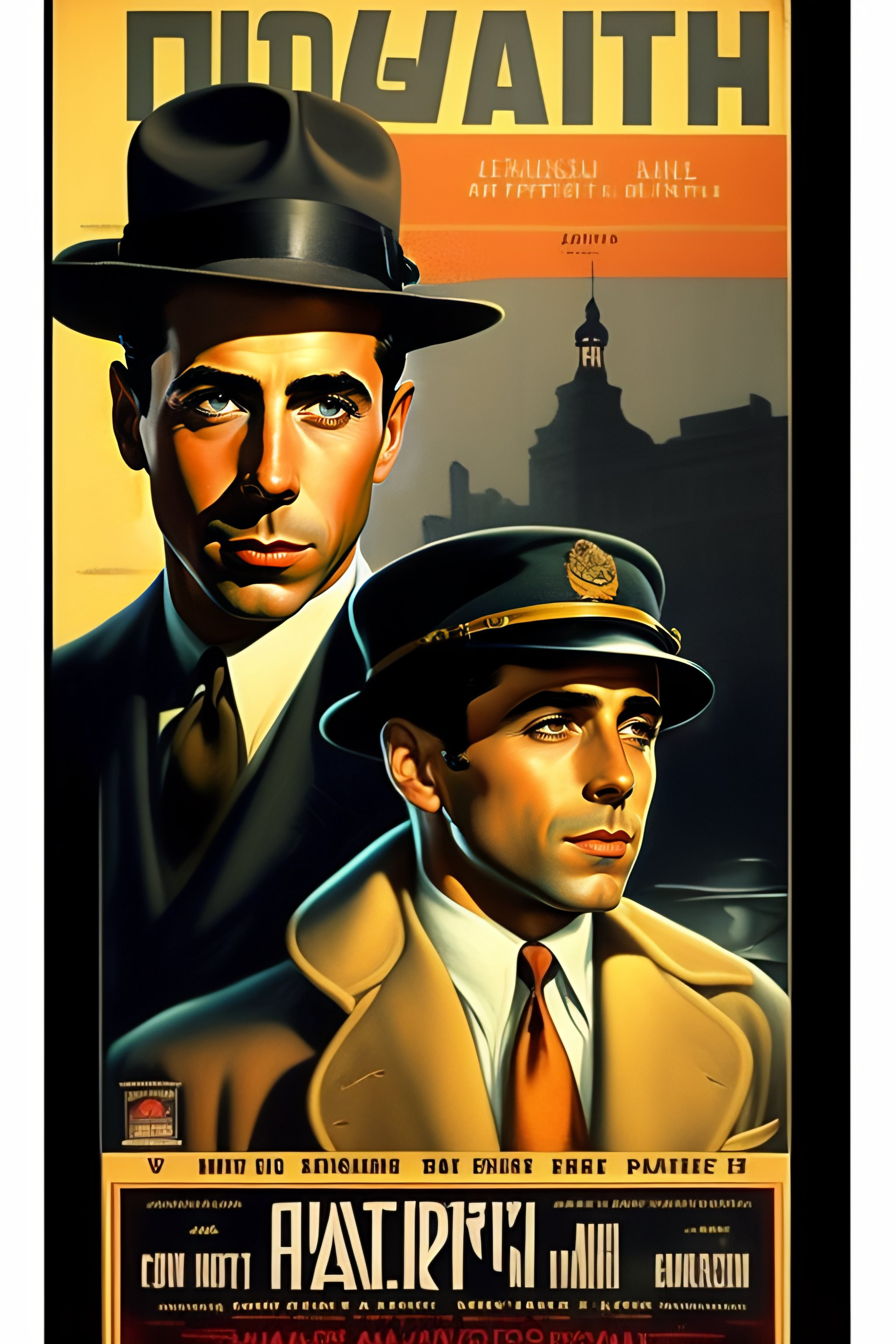 Young humphrey bogart as noir detective with grey fedora hat, intrincate details, 1 9 4 0 movie poster, detective pulp cover, by norman rockwell