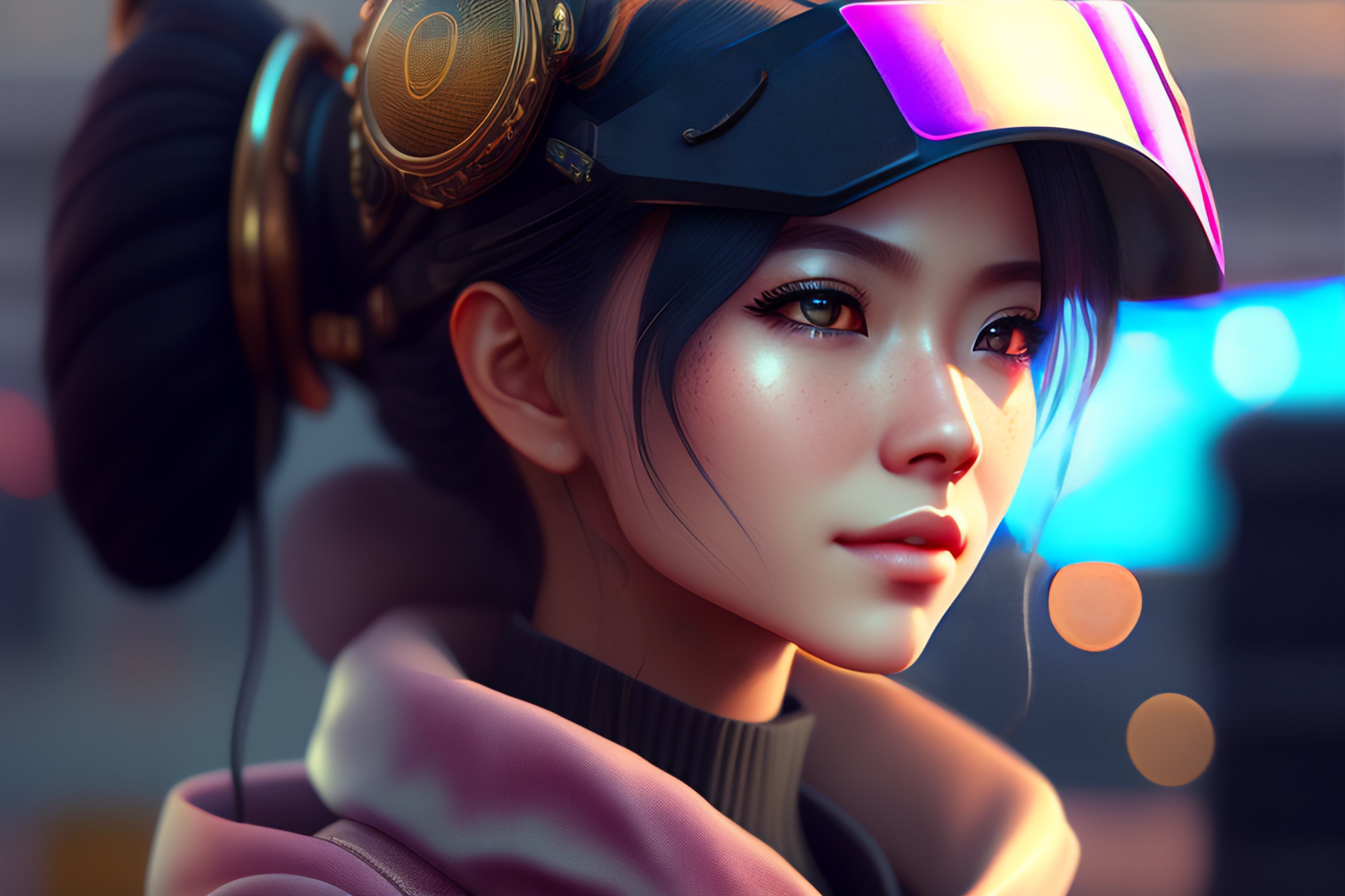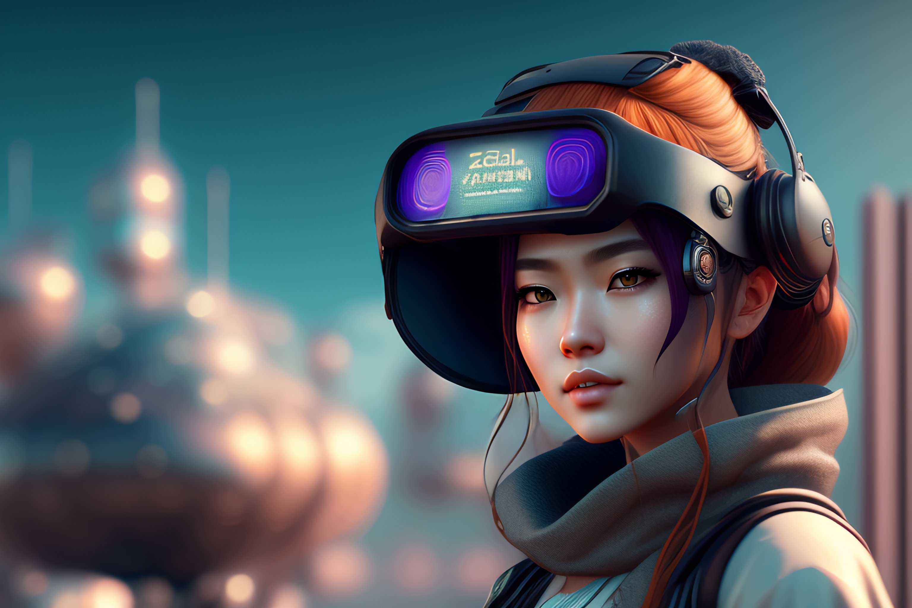 Solarpunk girl kawaii wearing oculus, ultra realistic, concept art, intricate details, highly detailed, photorealistic, octane render, 8 k