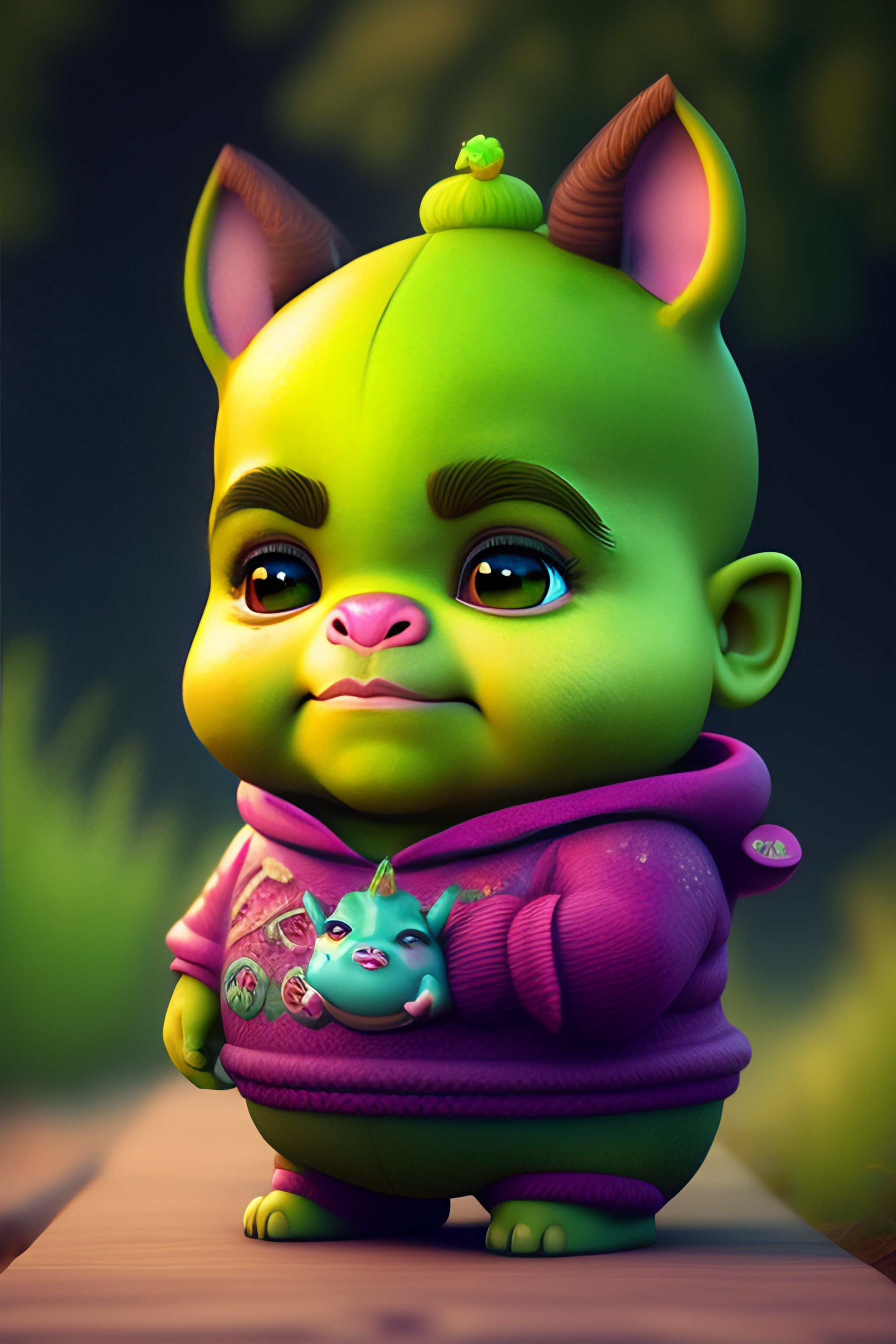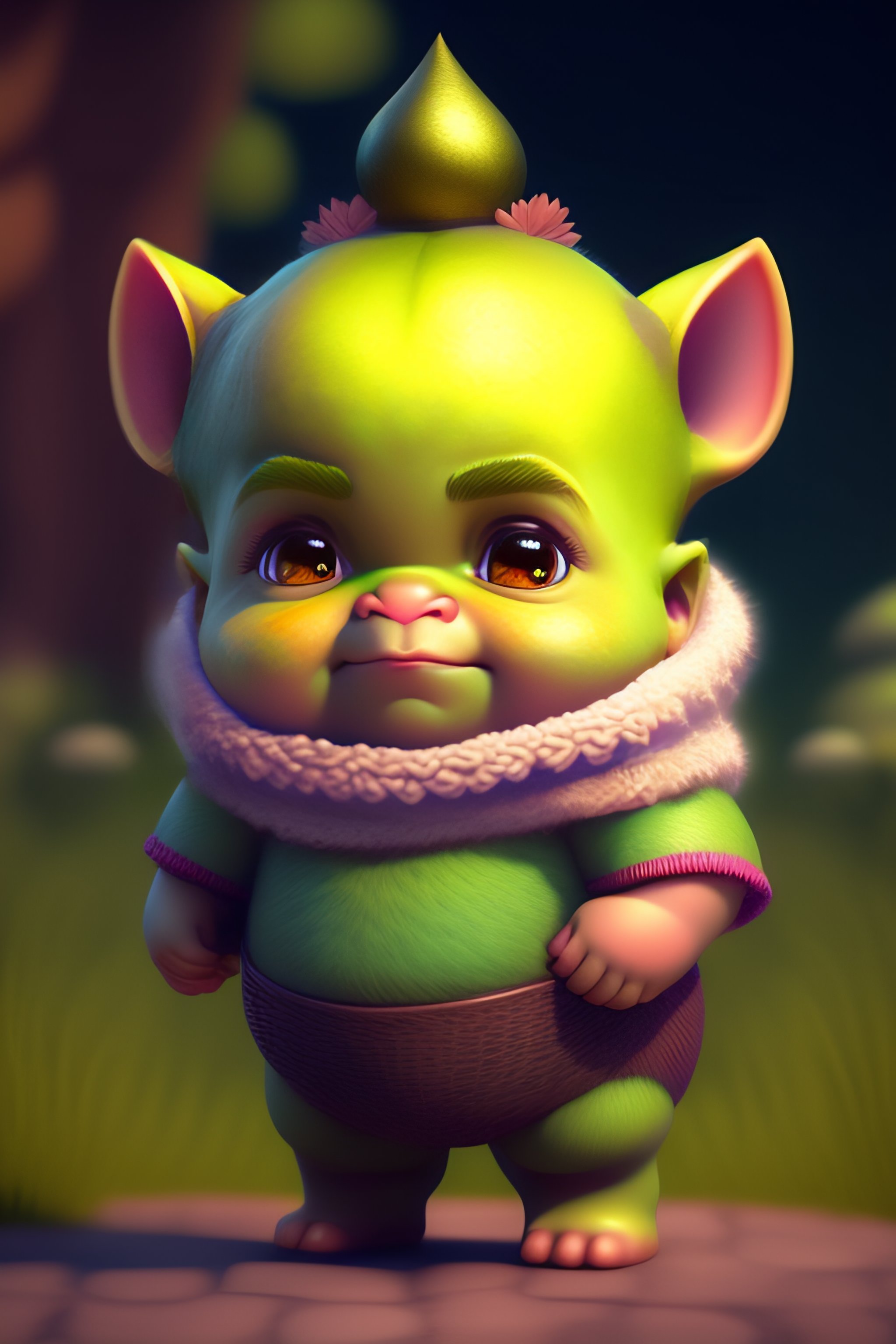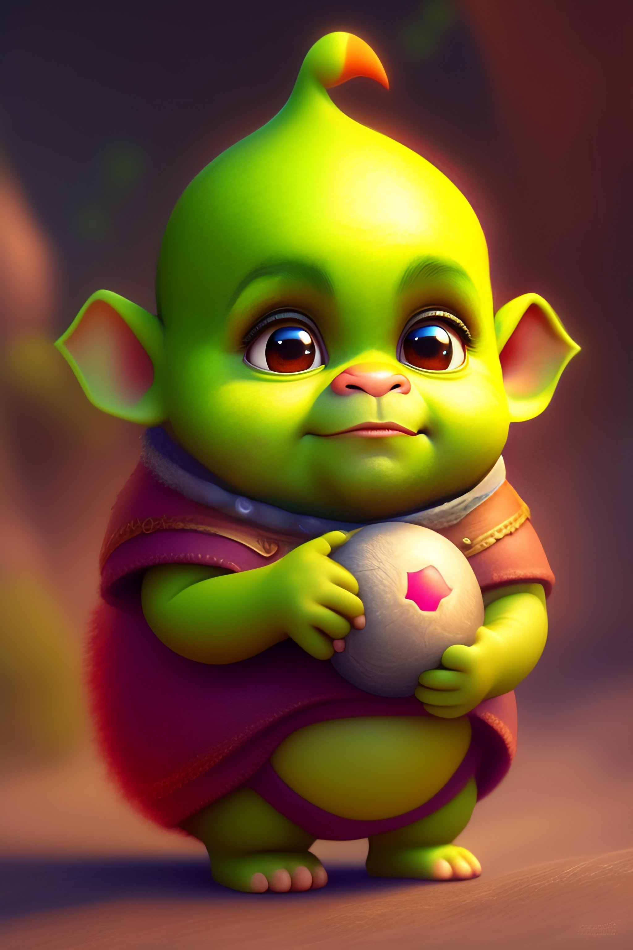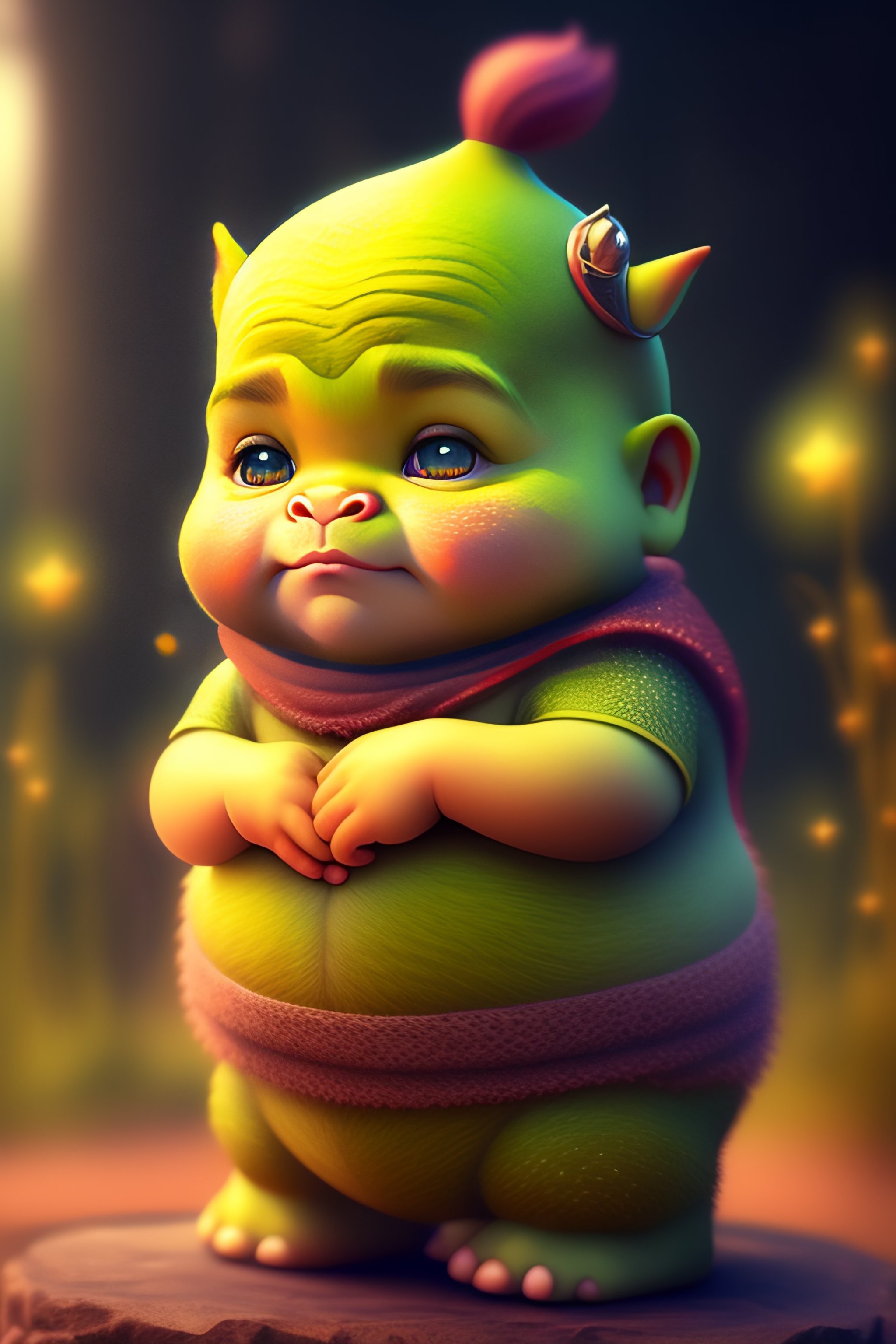 Cute and adorable cartoon shrek baby, fantasy, dreamlike, surrealism, super cute, trending on artstation
