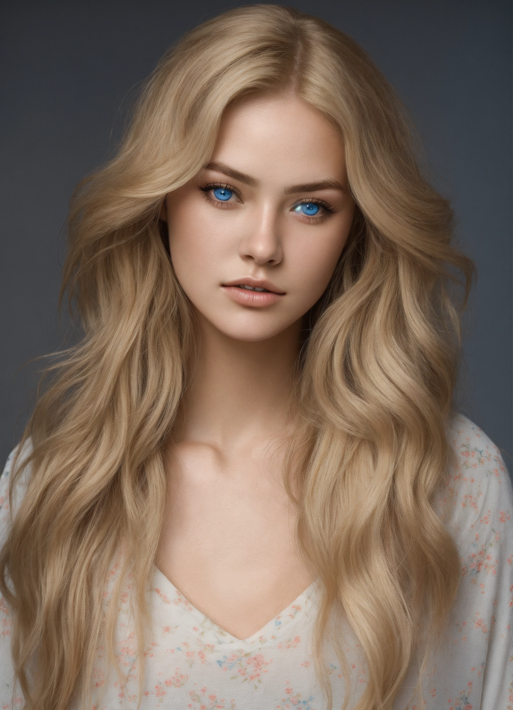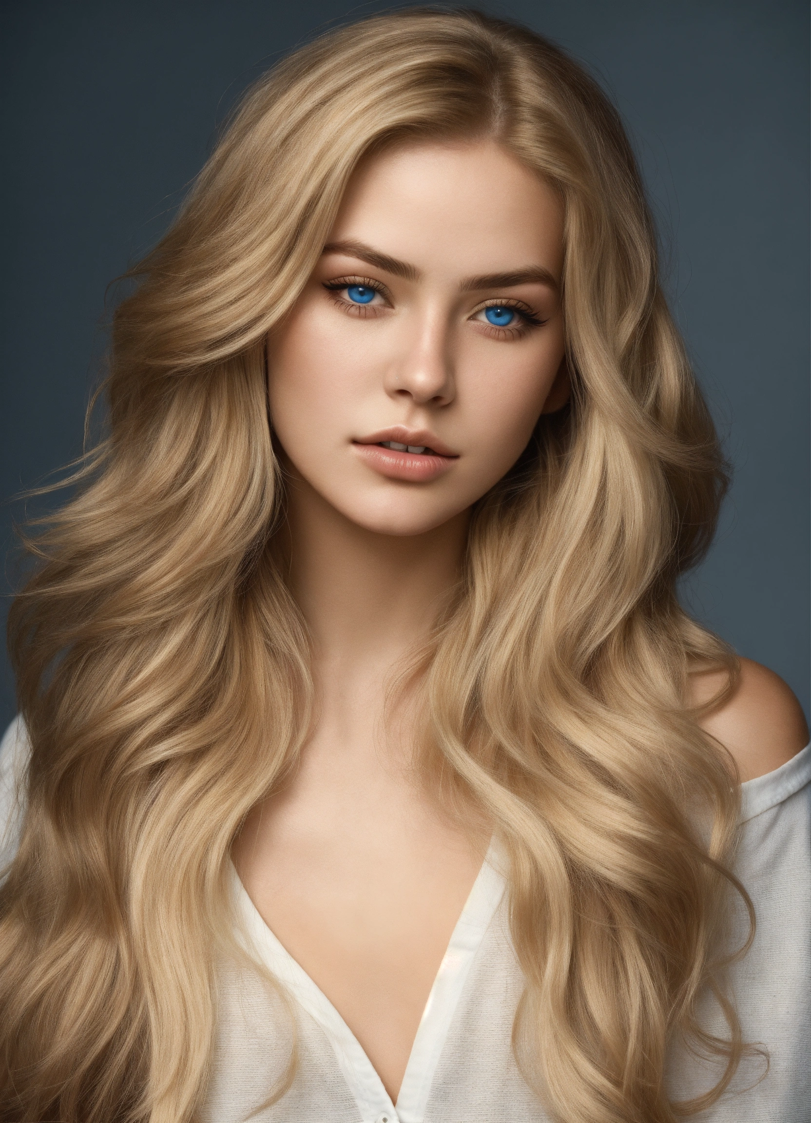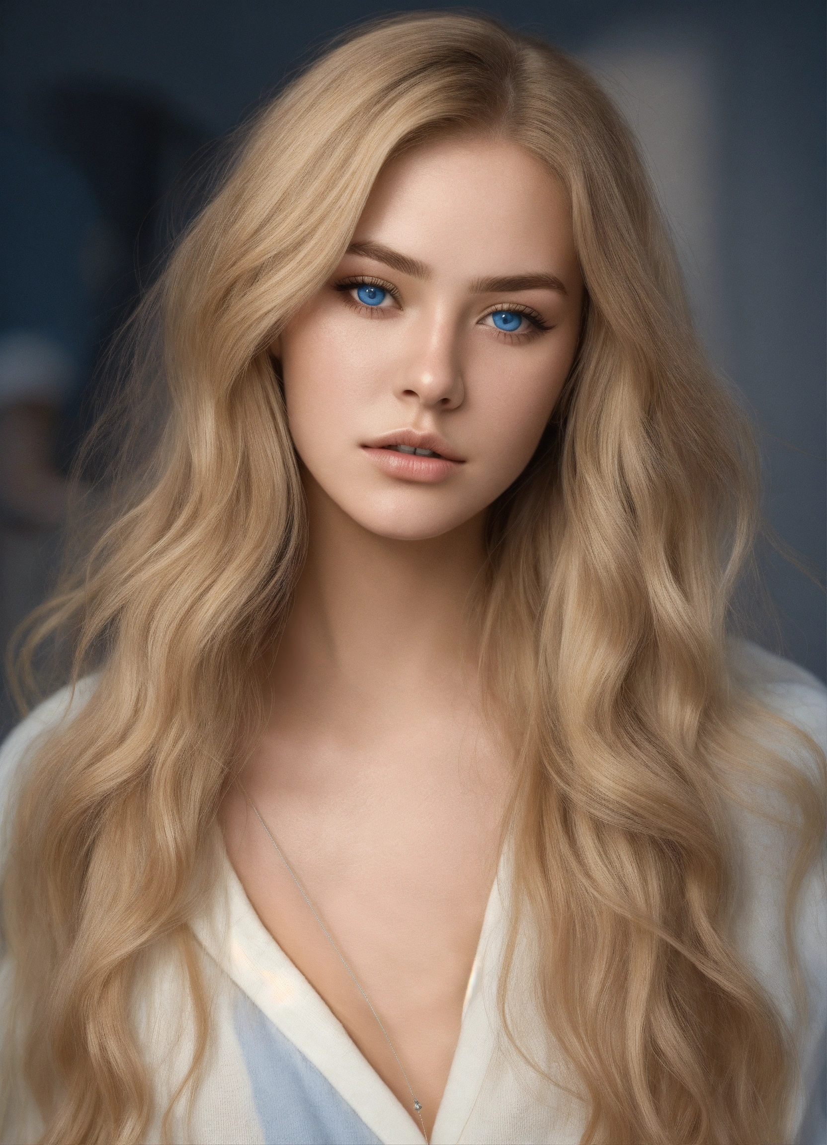 Ultra-realistic very innocent beautiful women 20-year-old with full lips, with long blonde hairs, with big bright blue eyes, photo realistic