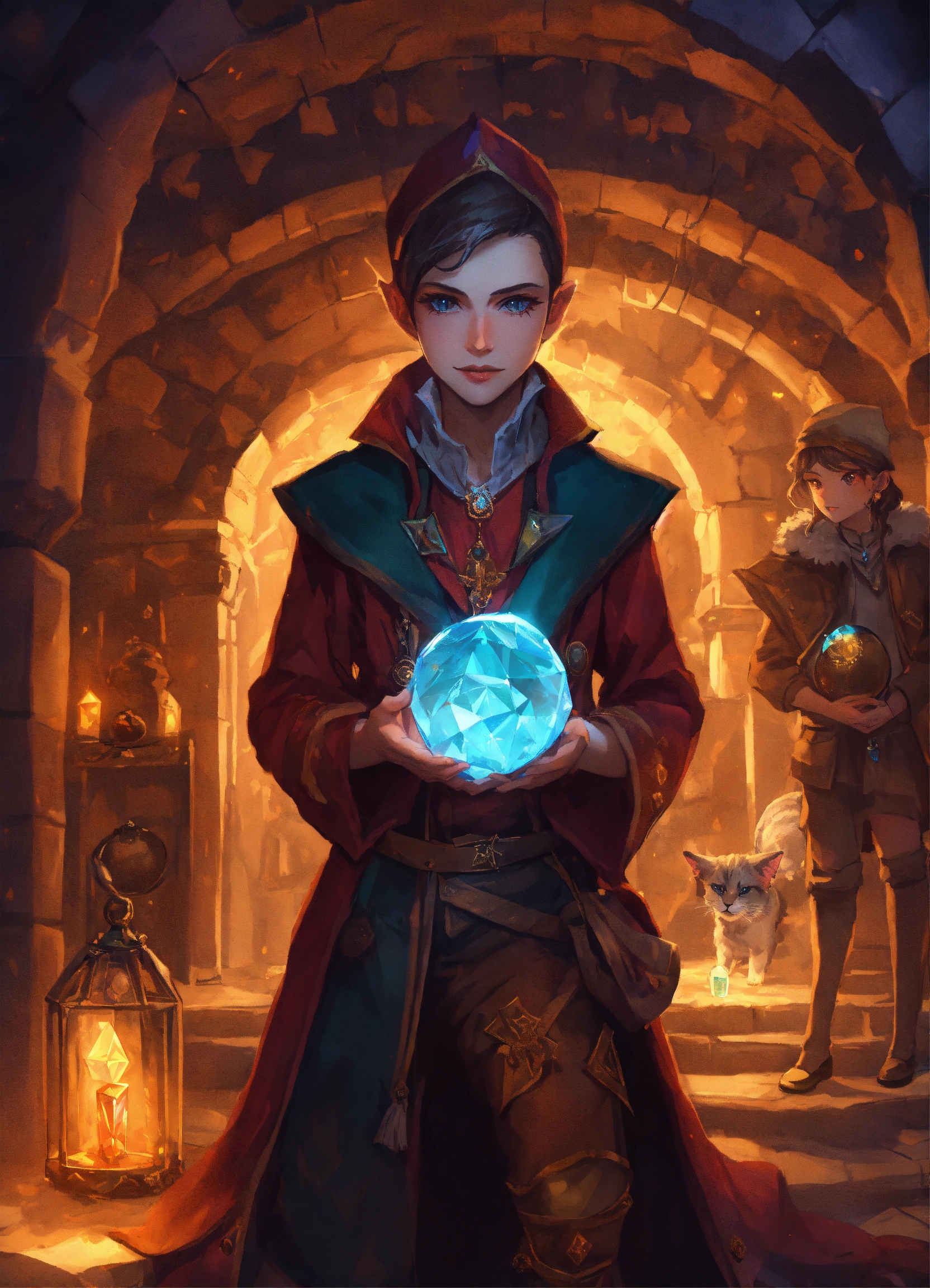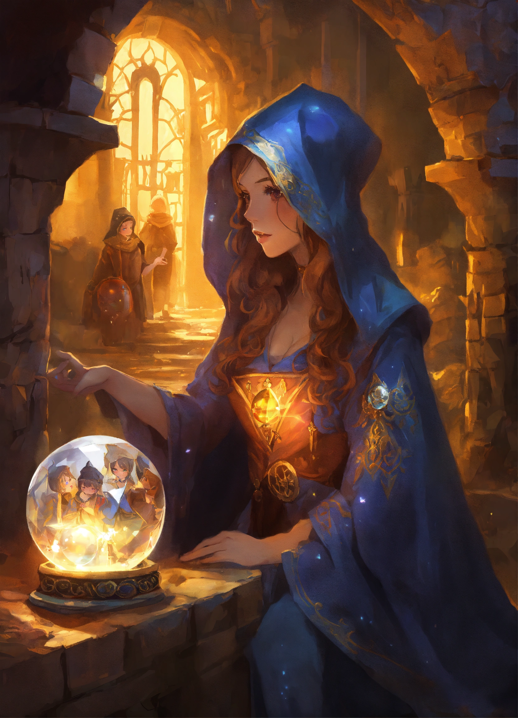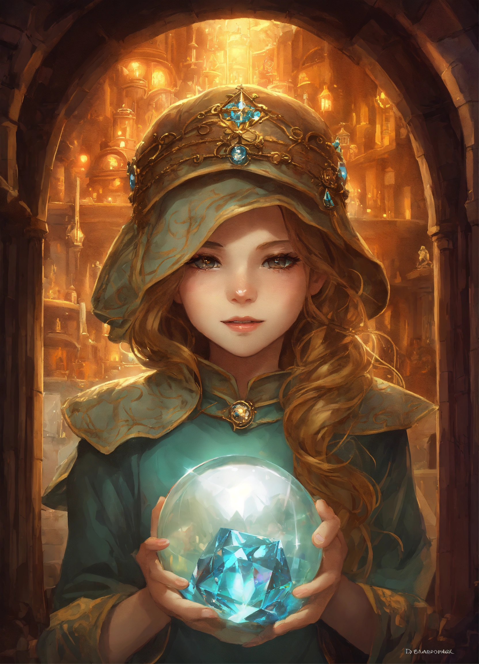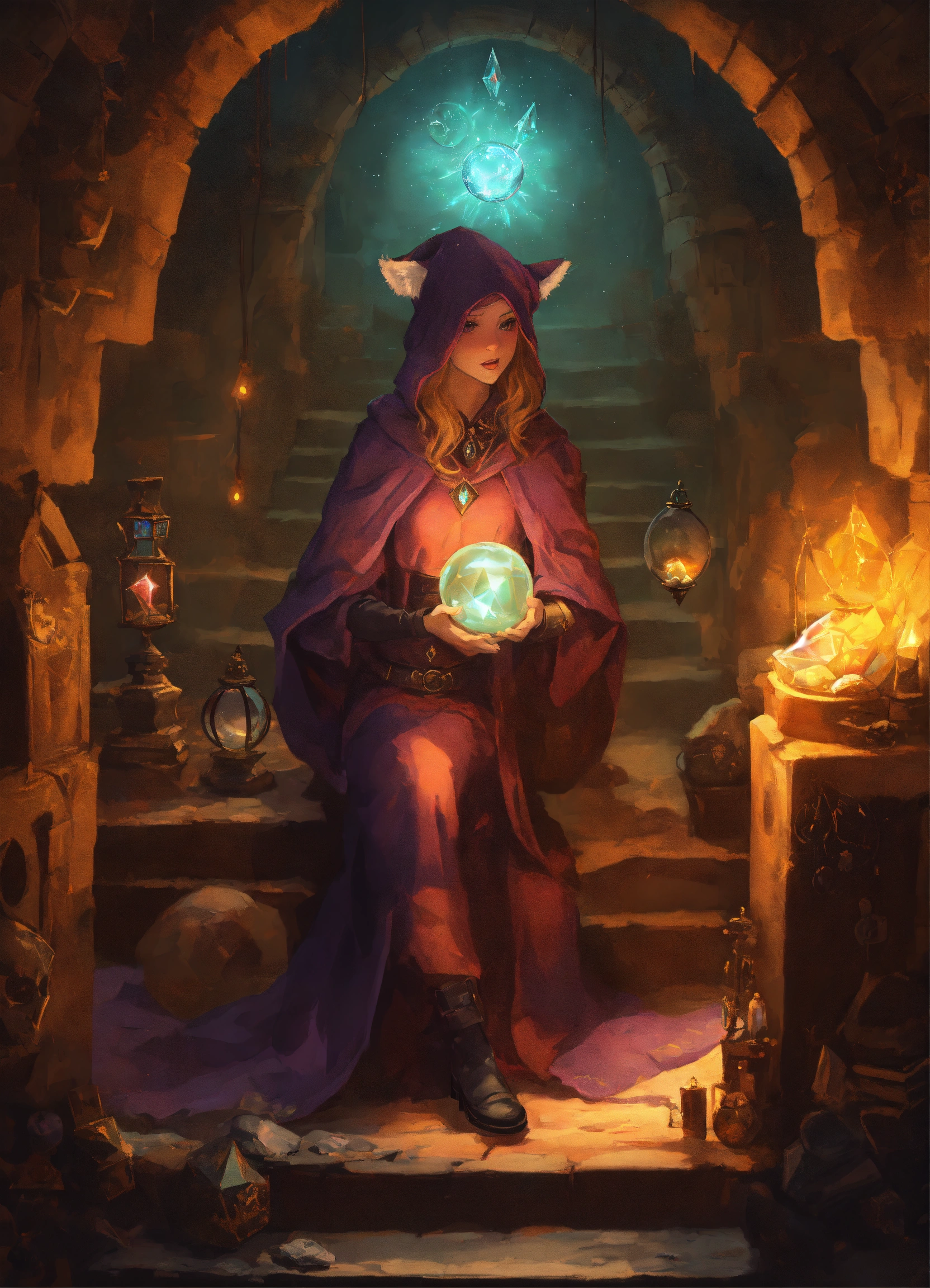 Charming mage newborns, dnds, with diamond pupils, underground catacombs, dystopia, and a crystal ball