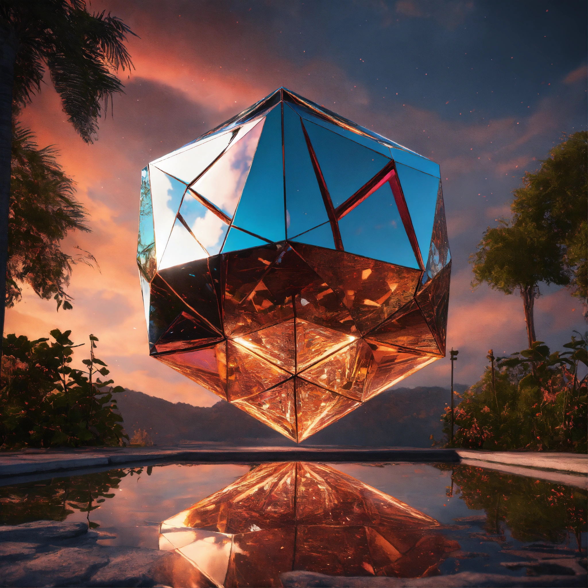 A stuning photo of a realistic beaulifull mirrored icosahedron 8k