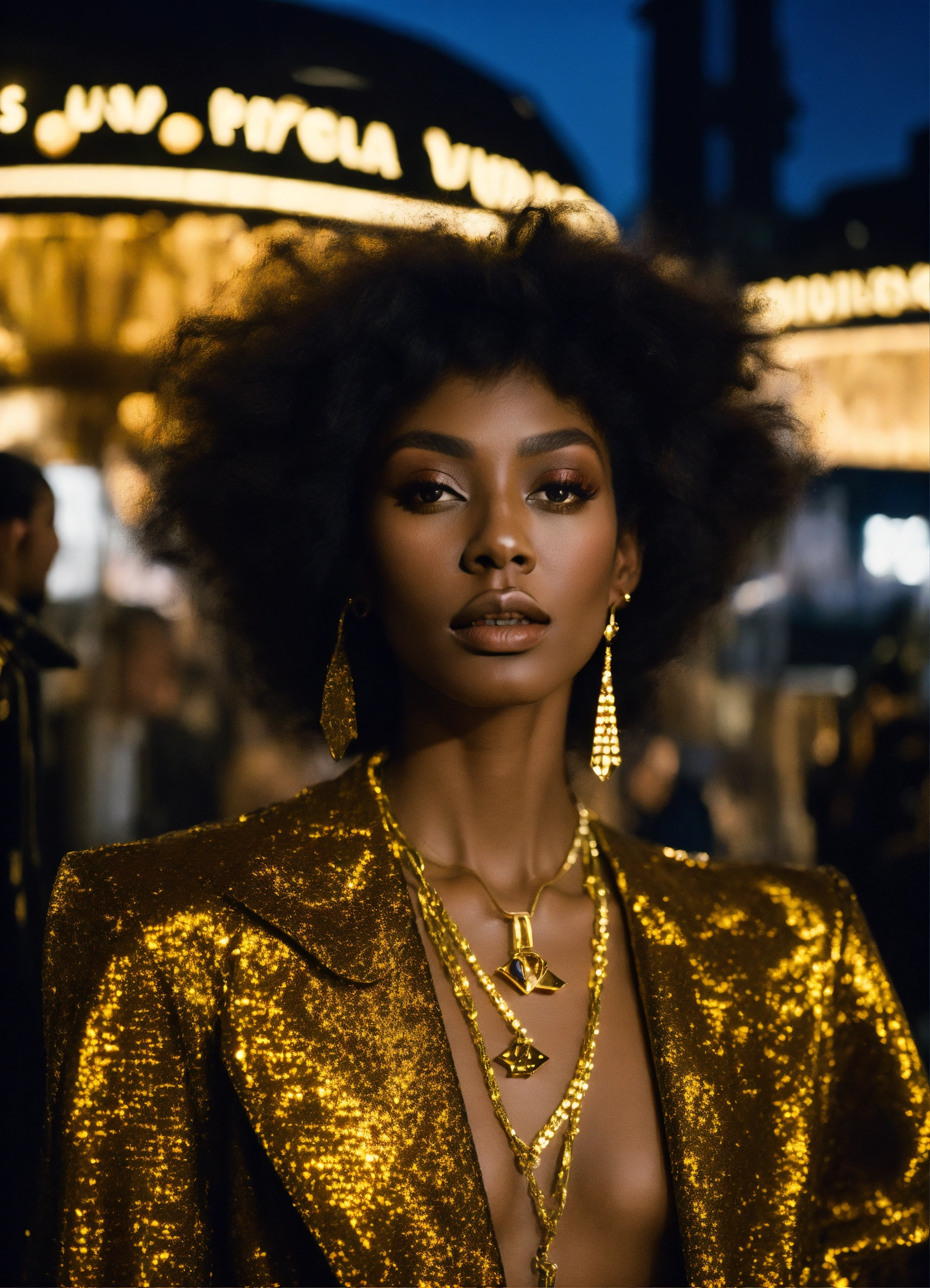 Donyale luna, 8k resolution, hyper realistic, renaissance tour 2023, 35mm film, editorial, high fashion, 2023, louis vuitton, by virgil abloh