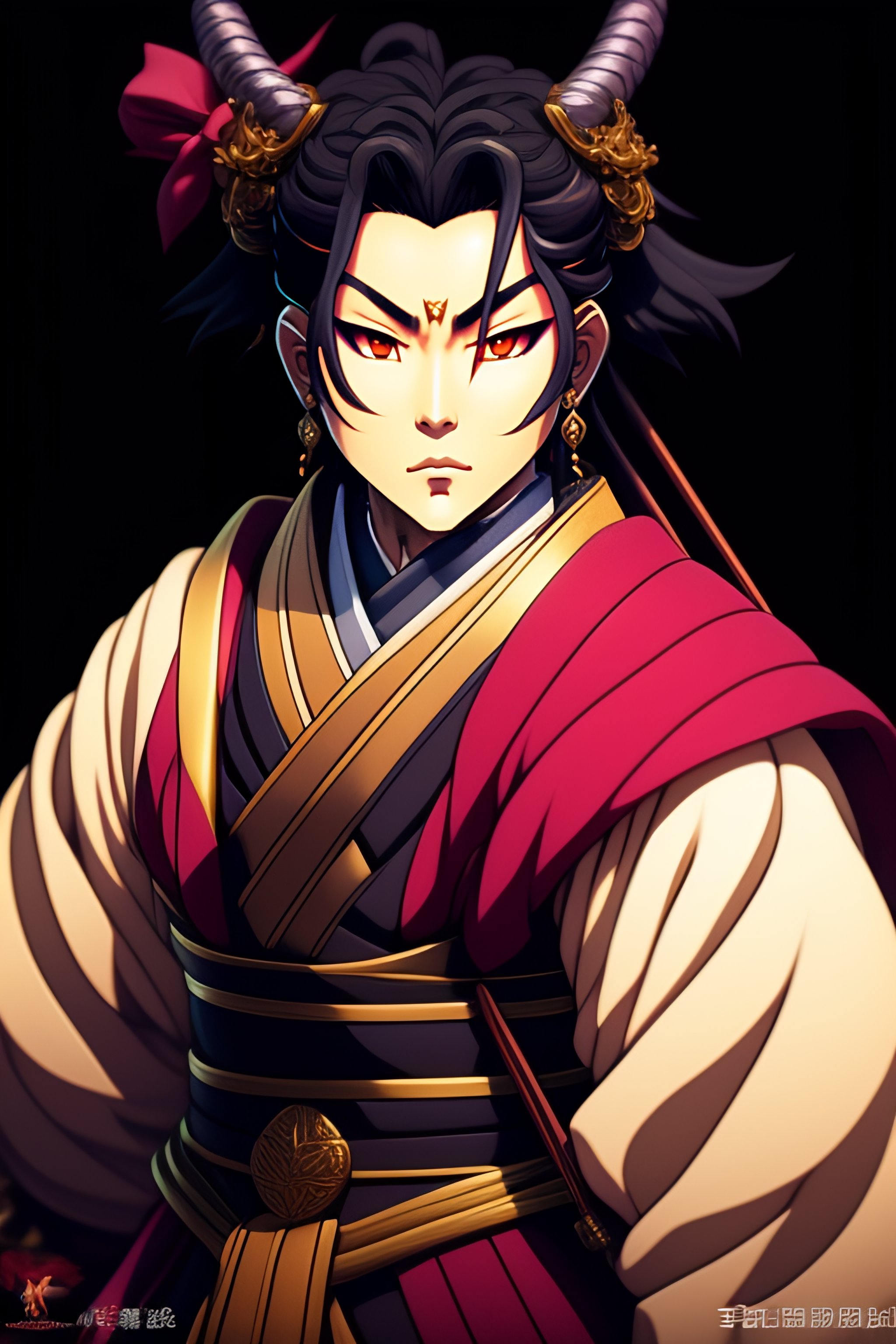 Kyojuro from demon slayer in 80s dark fantasy style