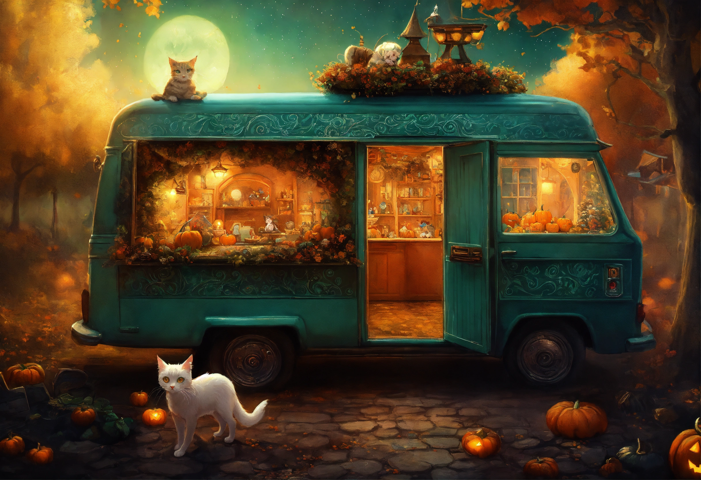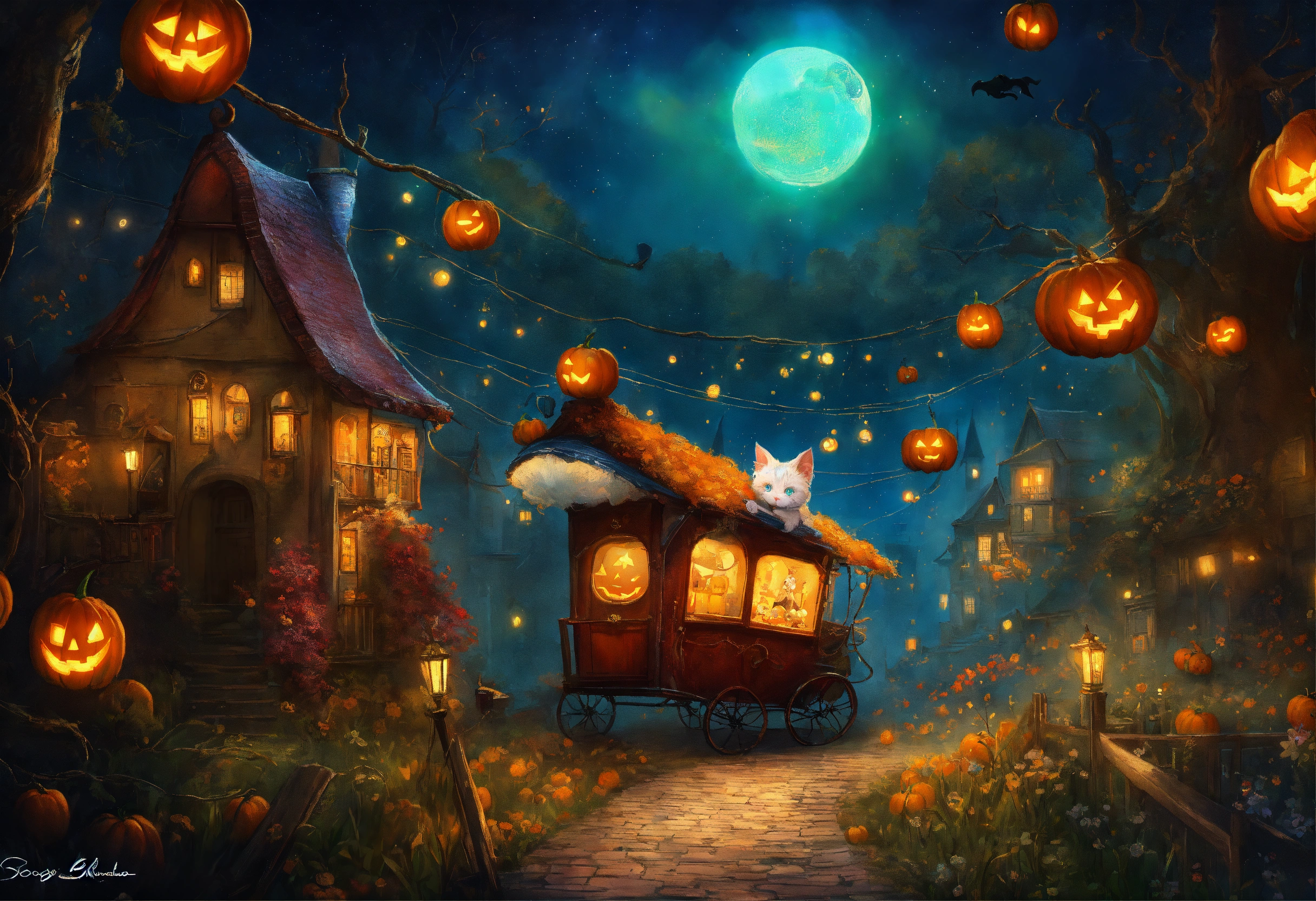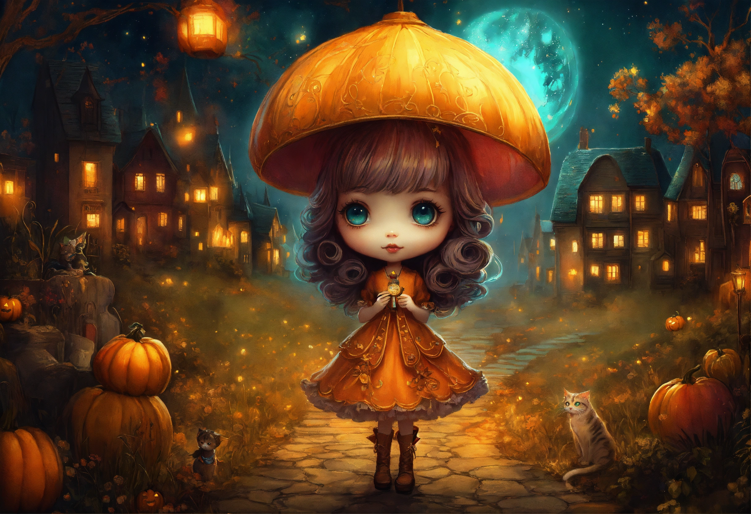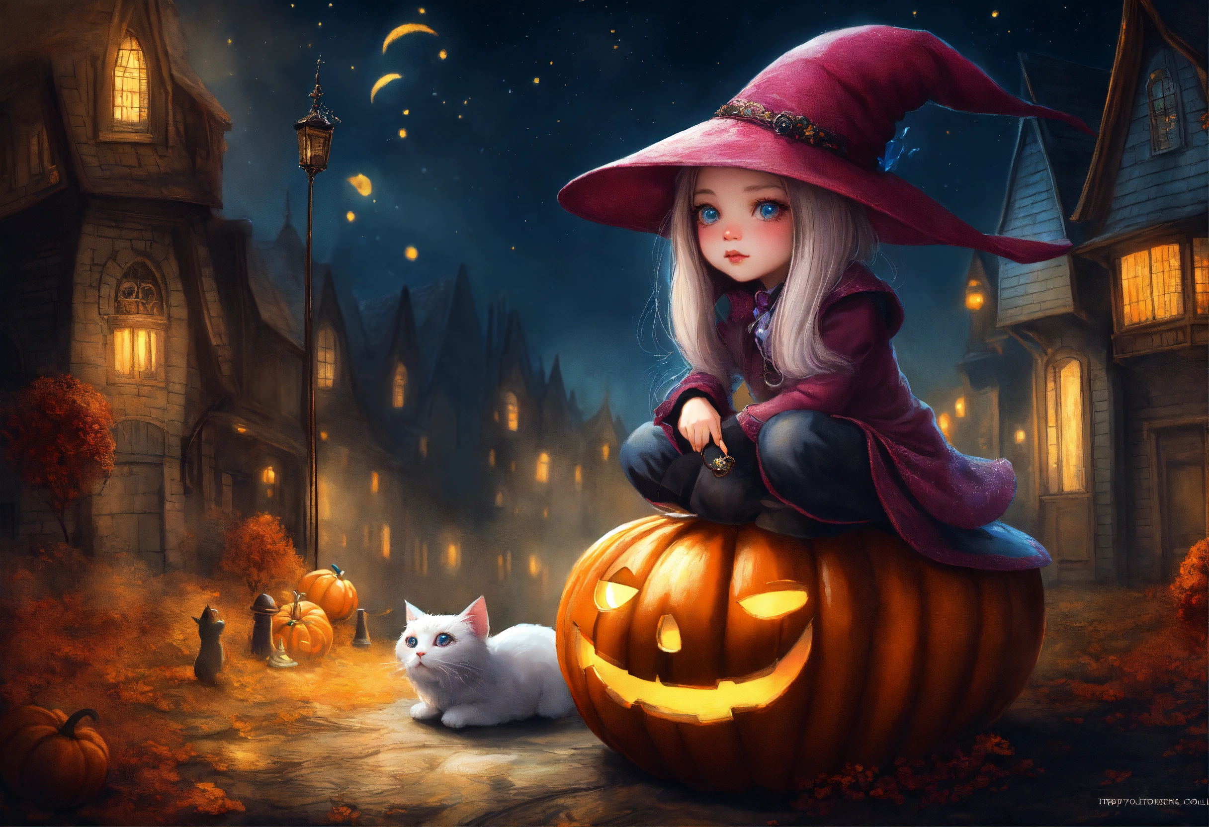 Boo!!! weird inspiration, ultra high detail, 32k, detailed 2d digital art, ink, acrylic, by craola, nicoletta ceccoli, todd lockwood, omar rayyan, andy kehoe, dan mumford, storybook illustration, halloween, cute tiny marie antoinette witch girl and cat, emails, cute little ghosts, city street, very big luminous eyes, stars, van gogh's starry sky, fairy tale, storybook, mystical, unusual highly detailed, intricate, complex pose, masterpiece, high quality, bright colors, complex background