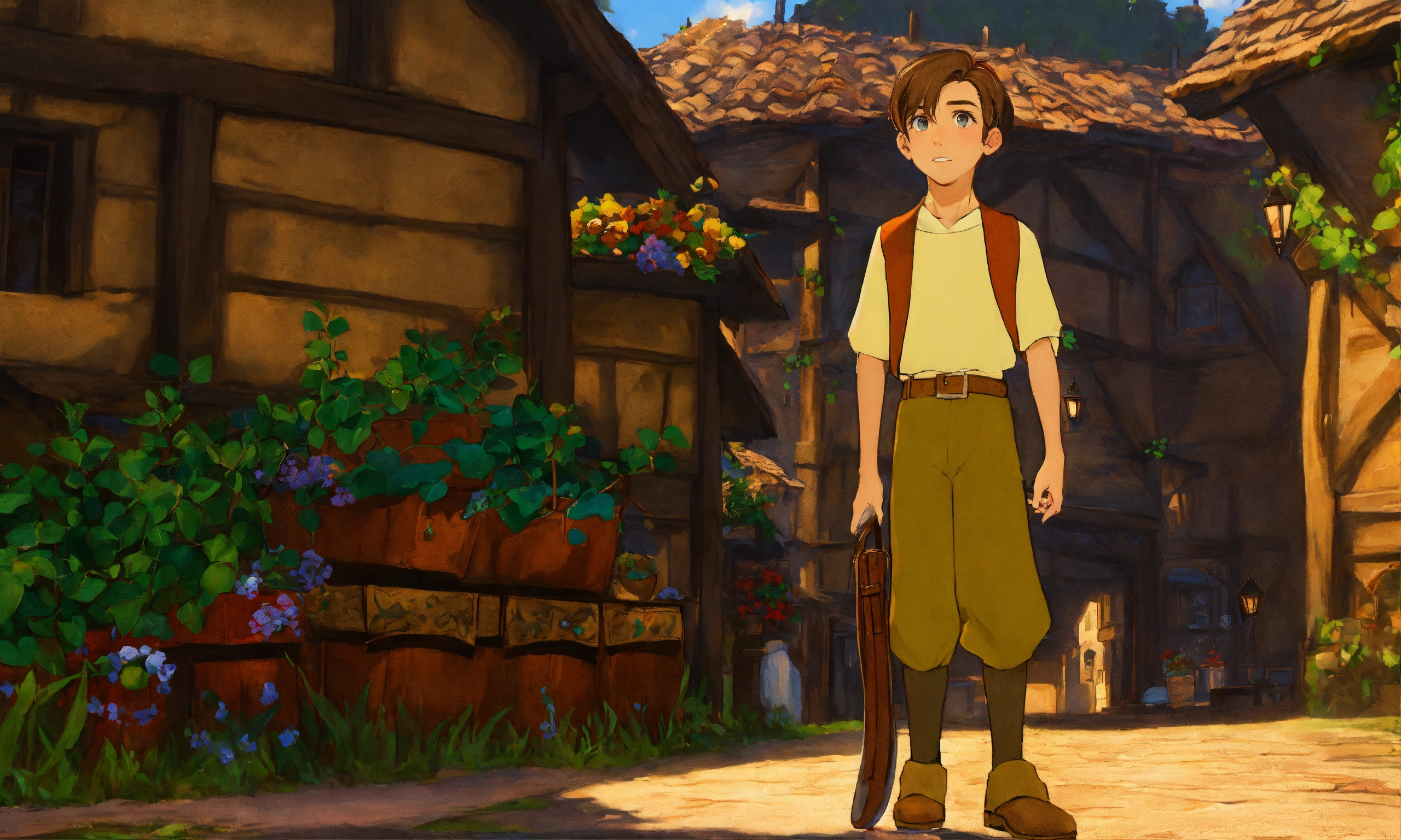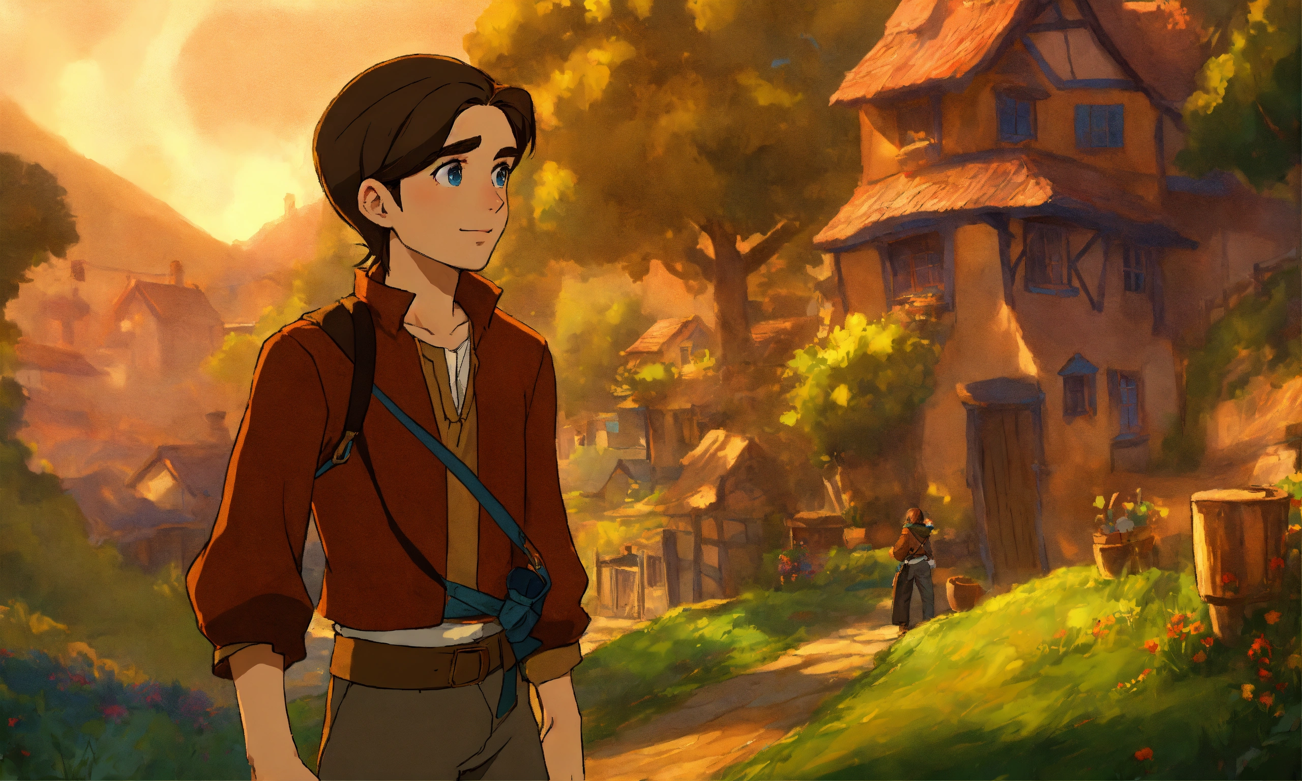 Jim hawkins de pequeño con estilo de a boy in a village