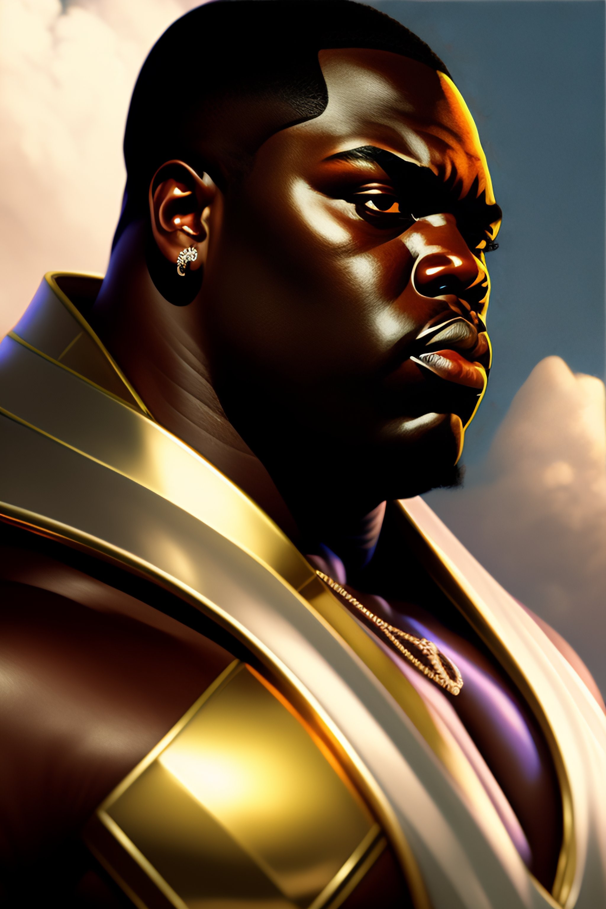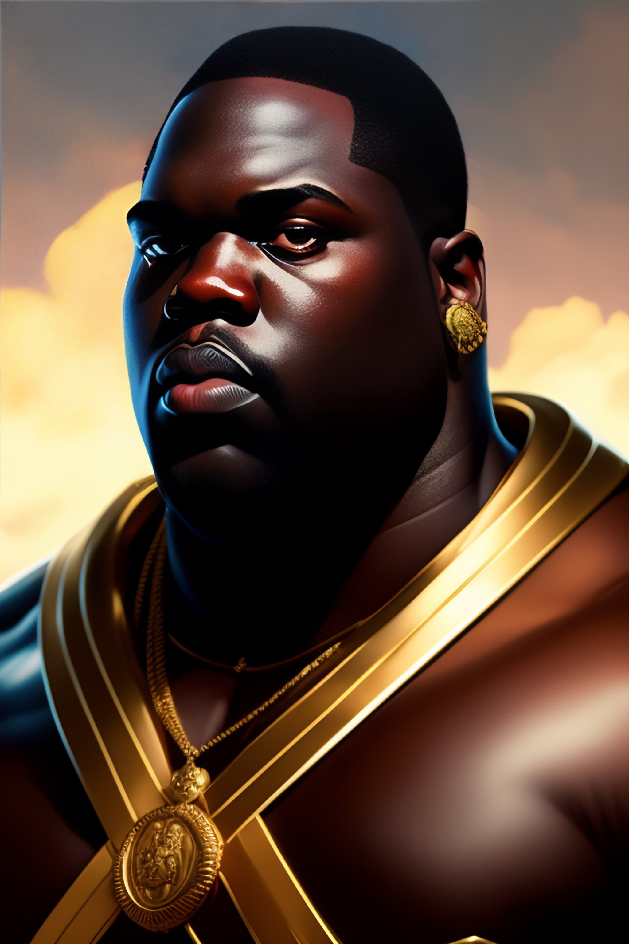 Pixel art of notorious big as greek god zeus, looking angry, rusty armor, portrait, digital painting, artstation, concept art, beautiful face, symmetric face, cinematic, videogame cover art, by artgerm and greg rutkowski and alphonse mucha