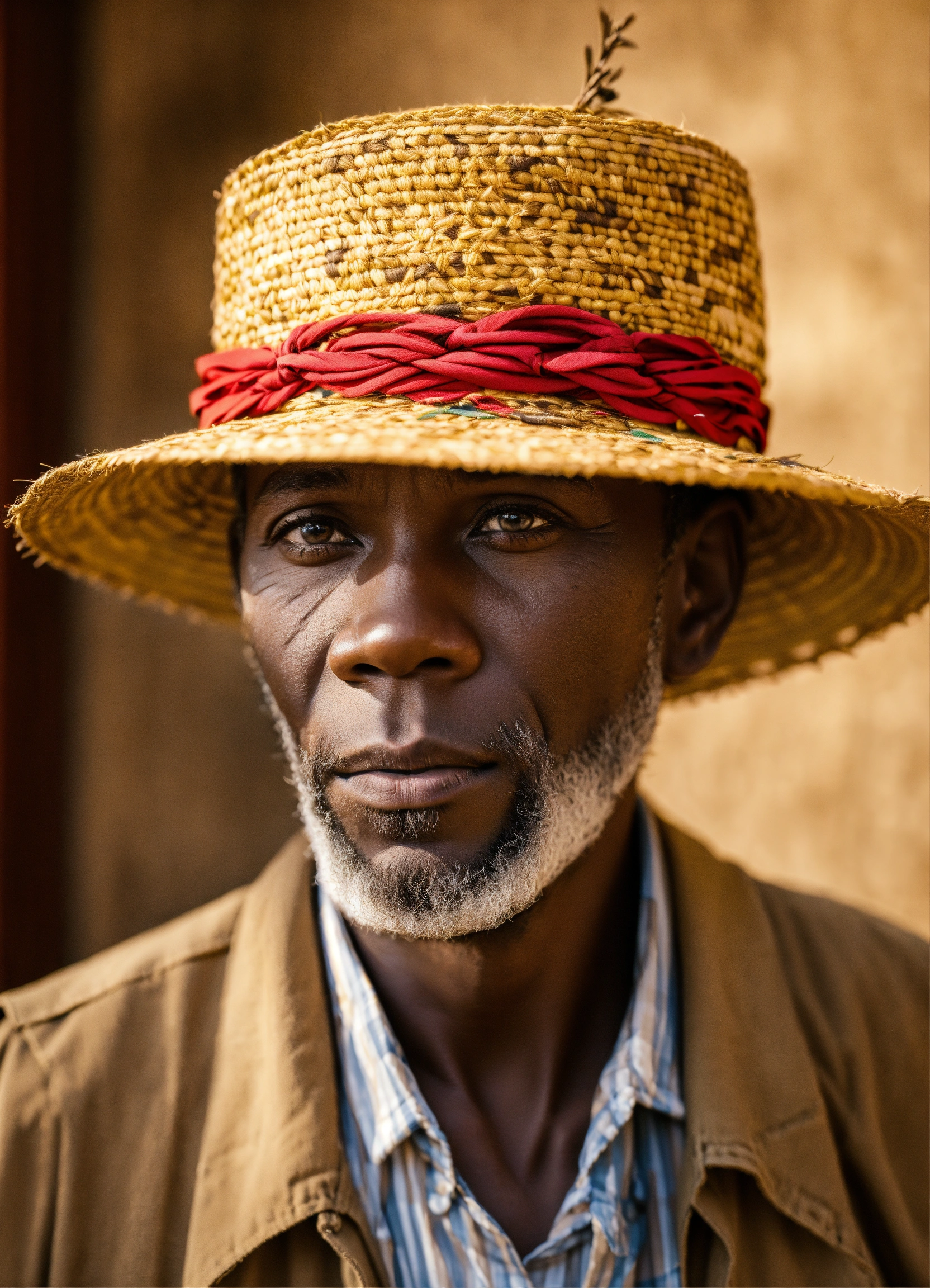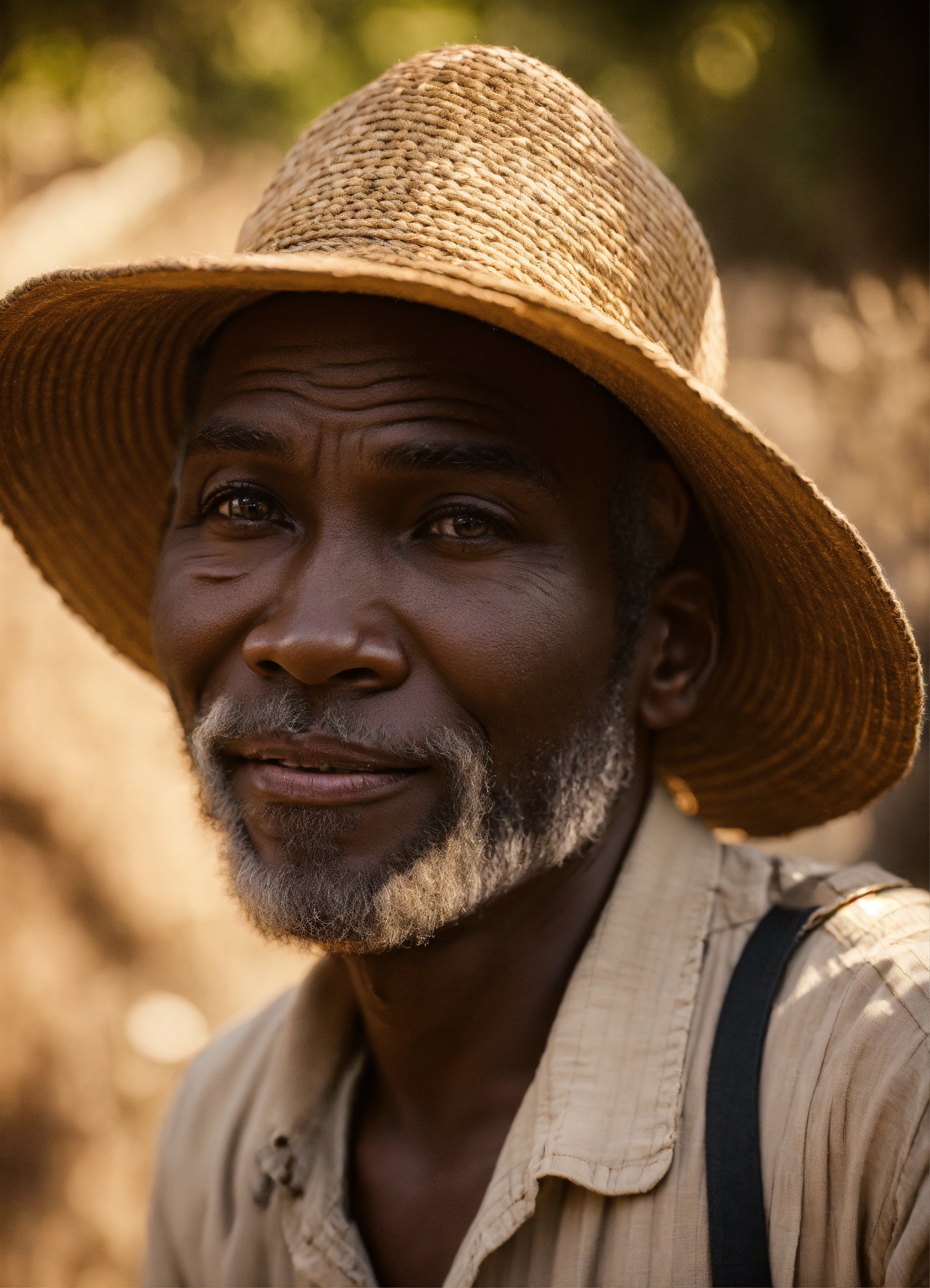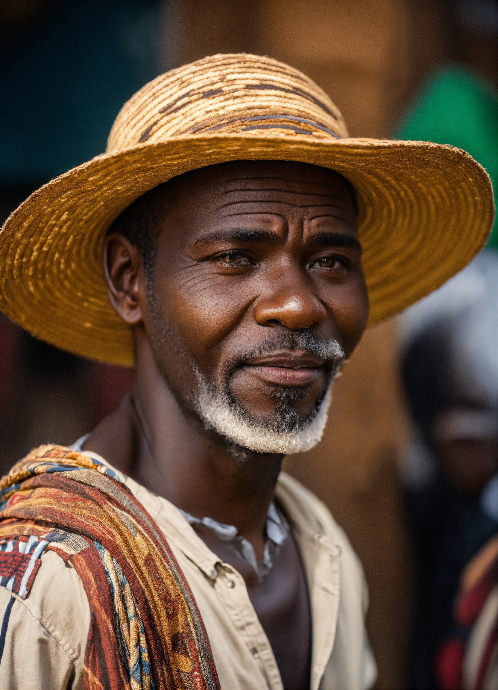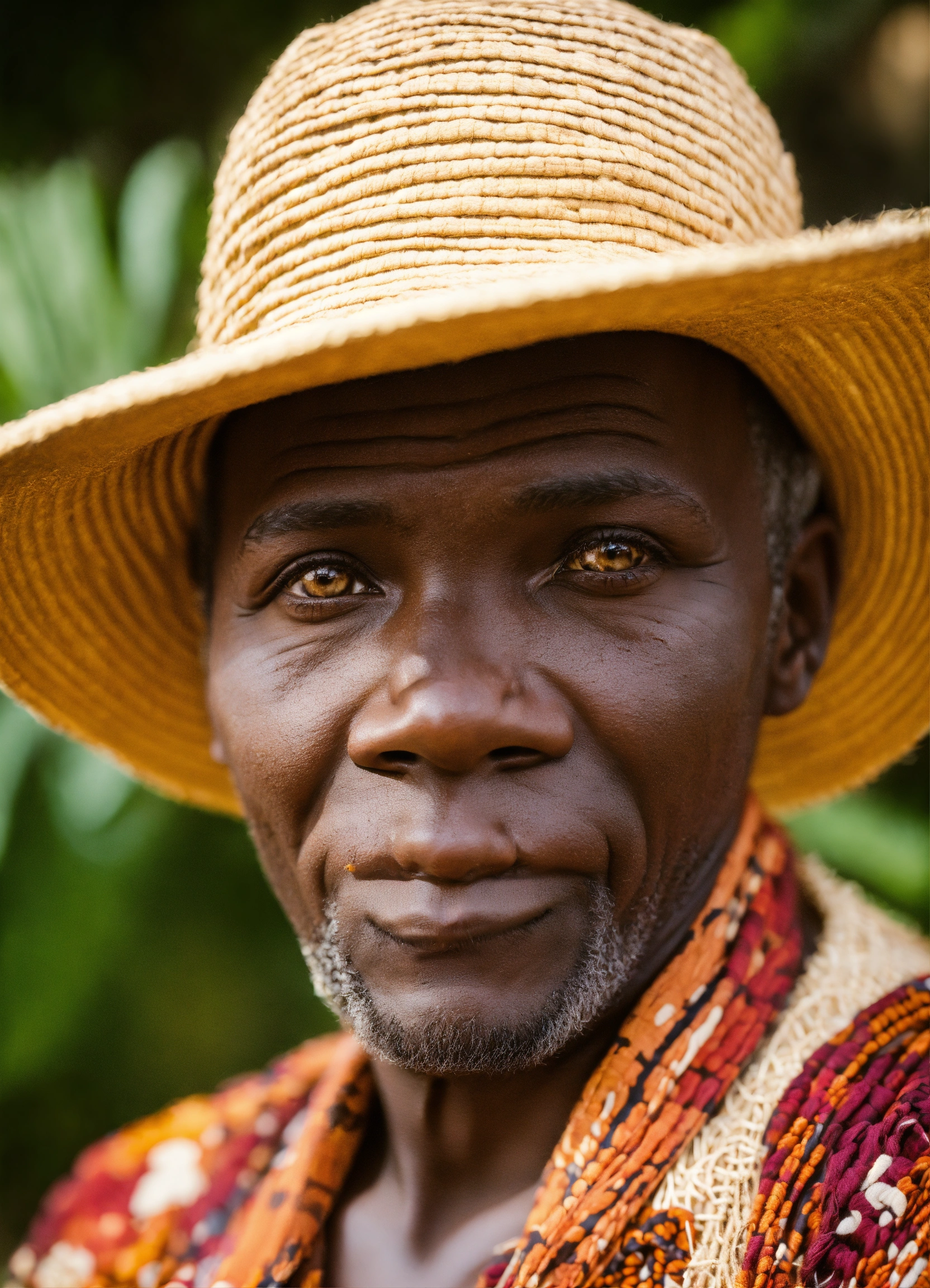 Visage vieux homme africain marque pa la vie avec chapeau de paille