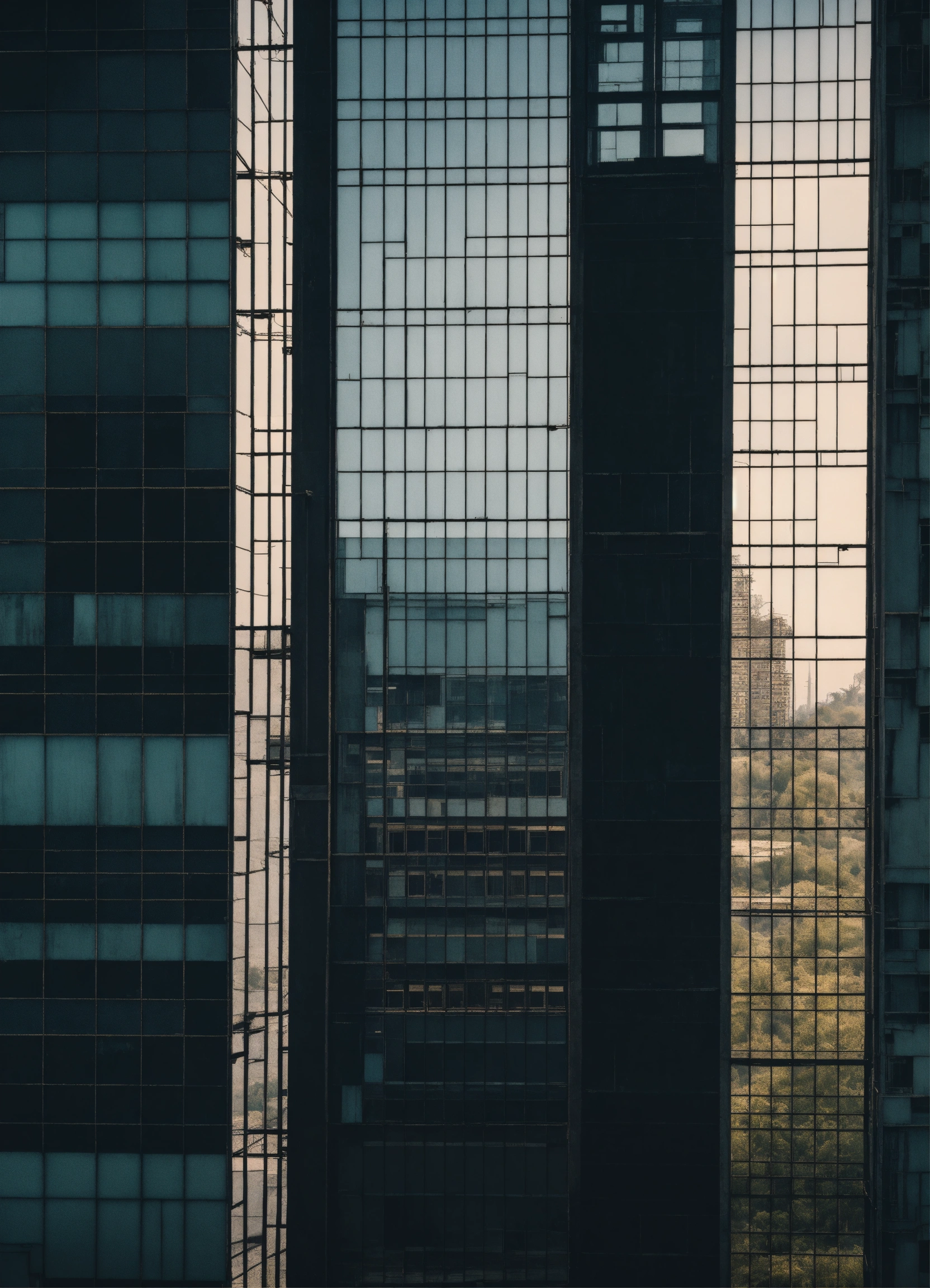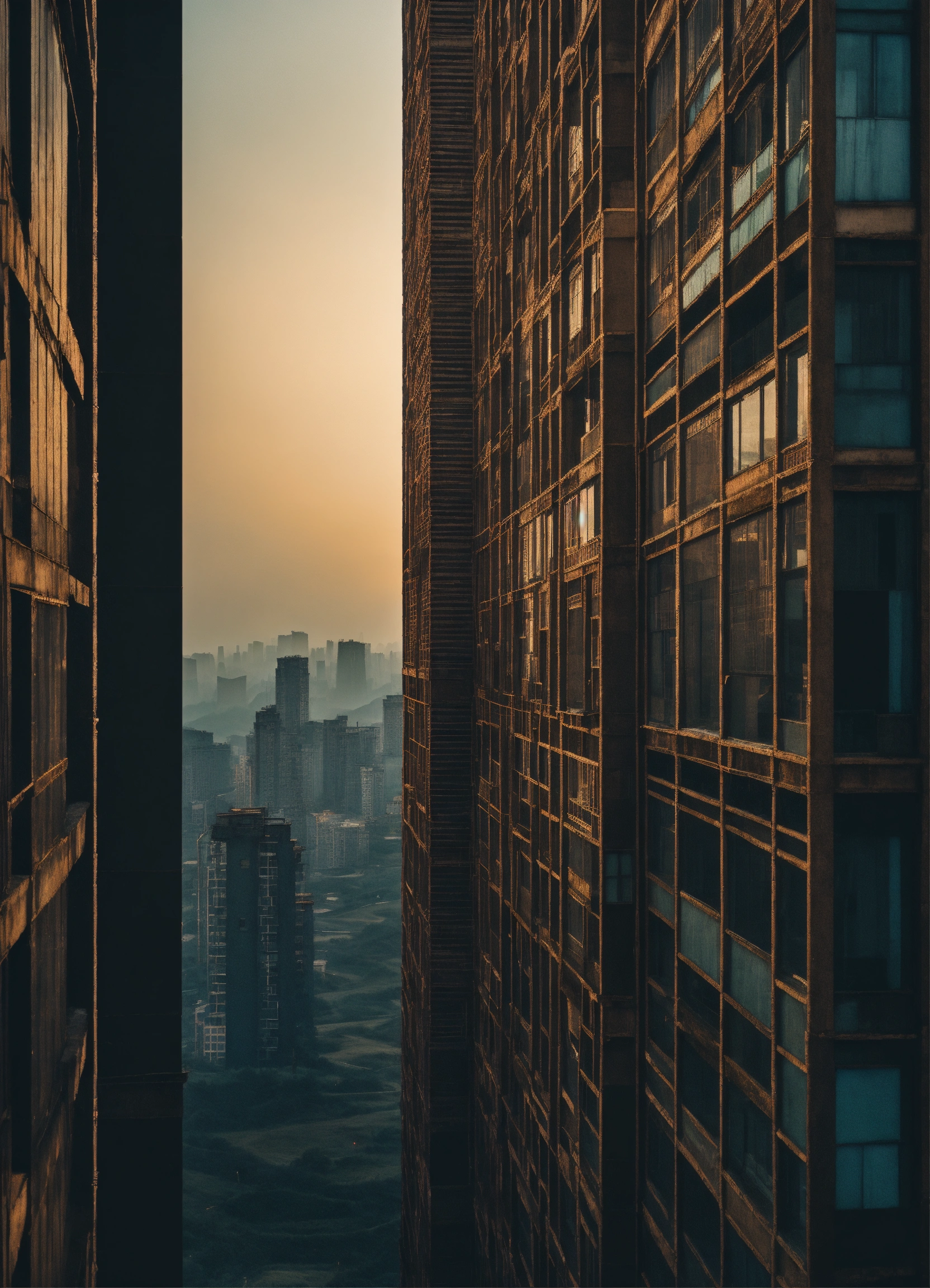 Some people look over tall building windows, in the style of dark hues, rural china, coded patterns, sparse and simple, uhd image, urbancore, sovietwave, negative space, award-winning design