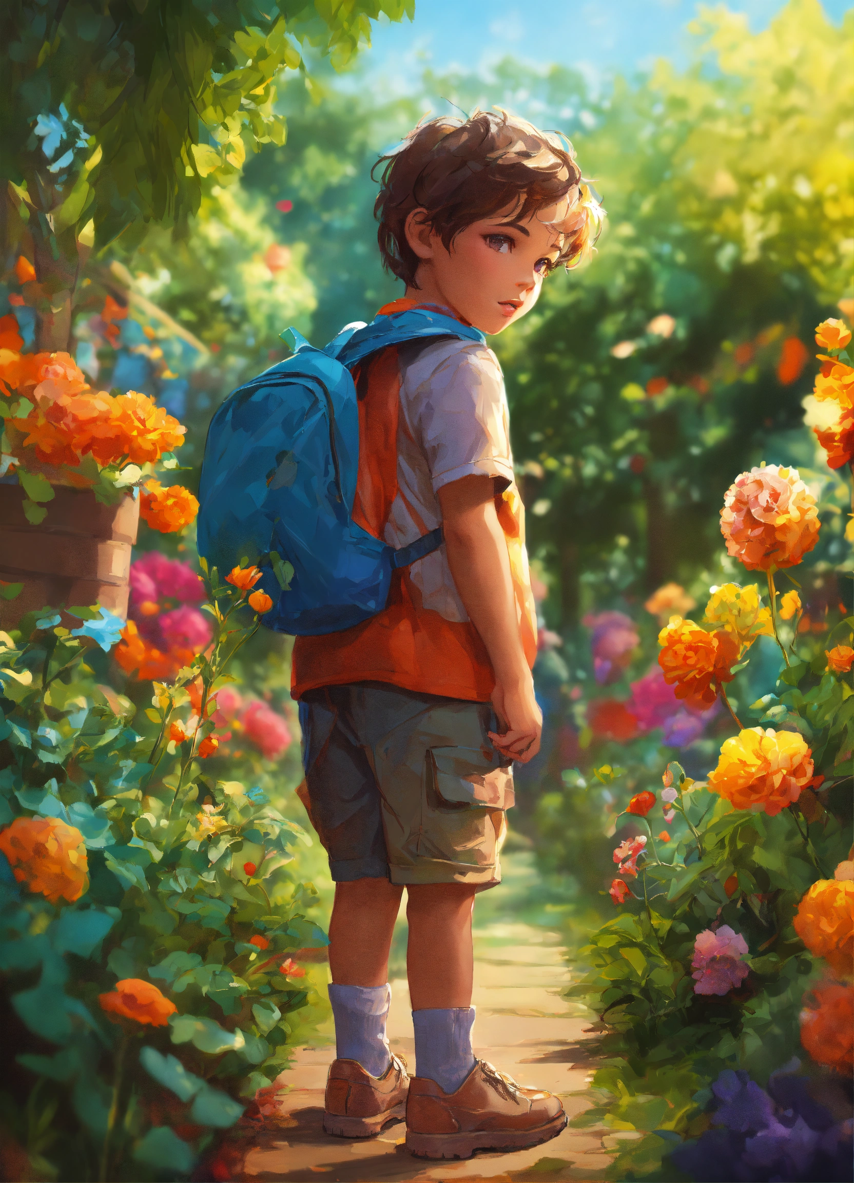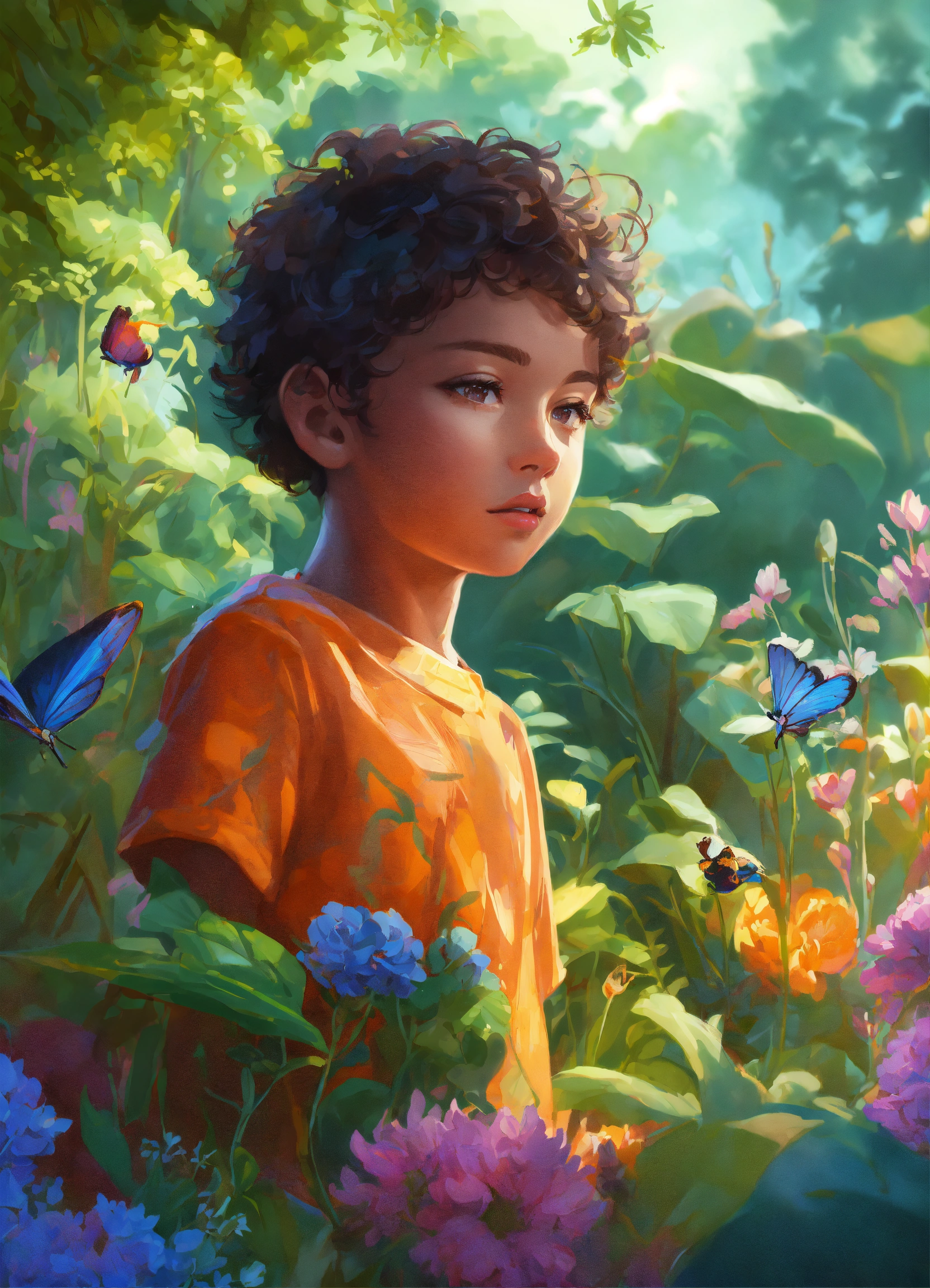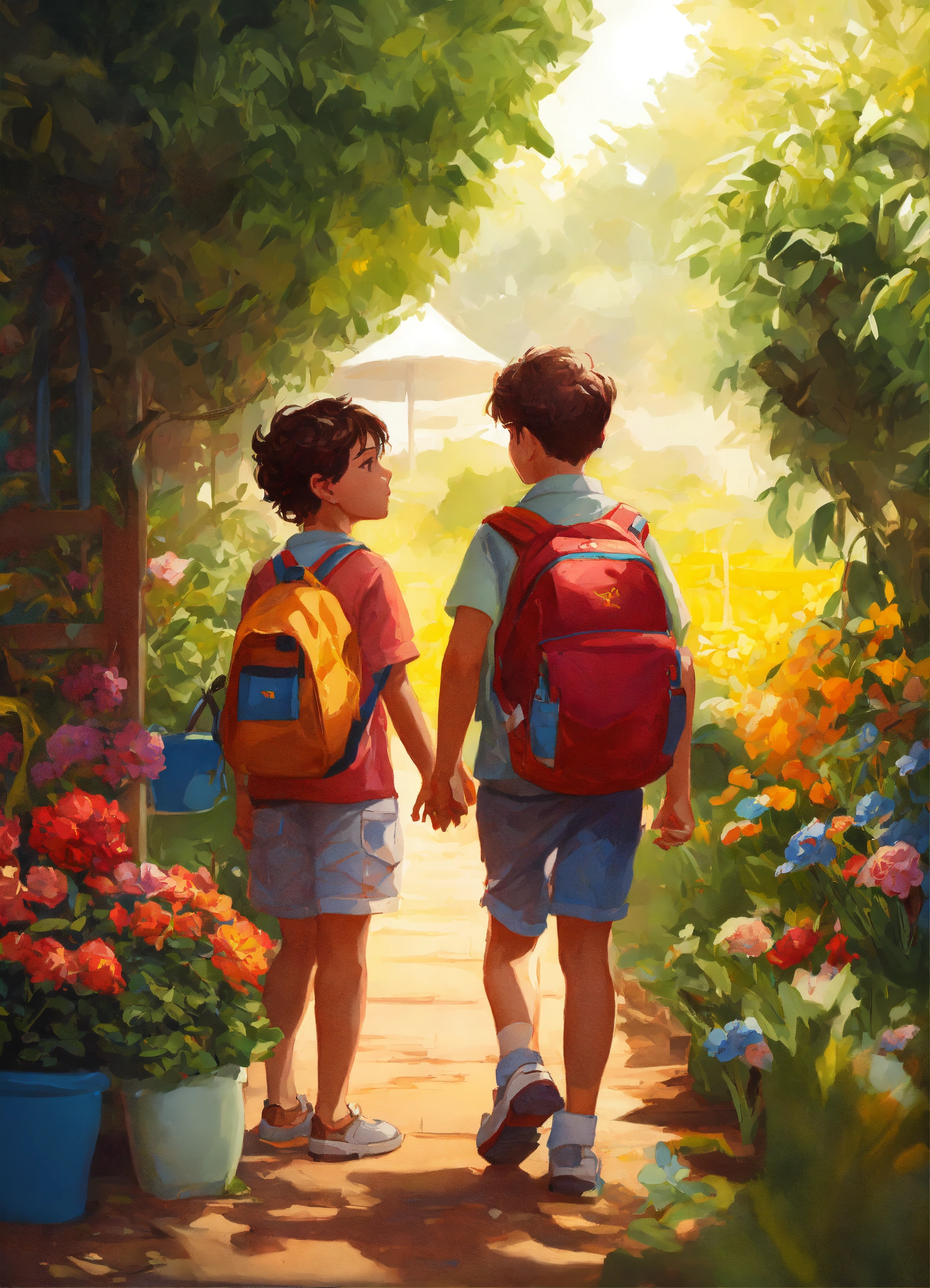 Hyper detailed ultra sharp, vibrant, intricate, digital painting, concept art, smooth, sharp focus, illustration, handsome, kids in the garden