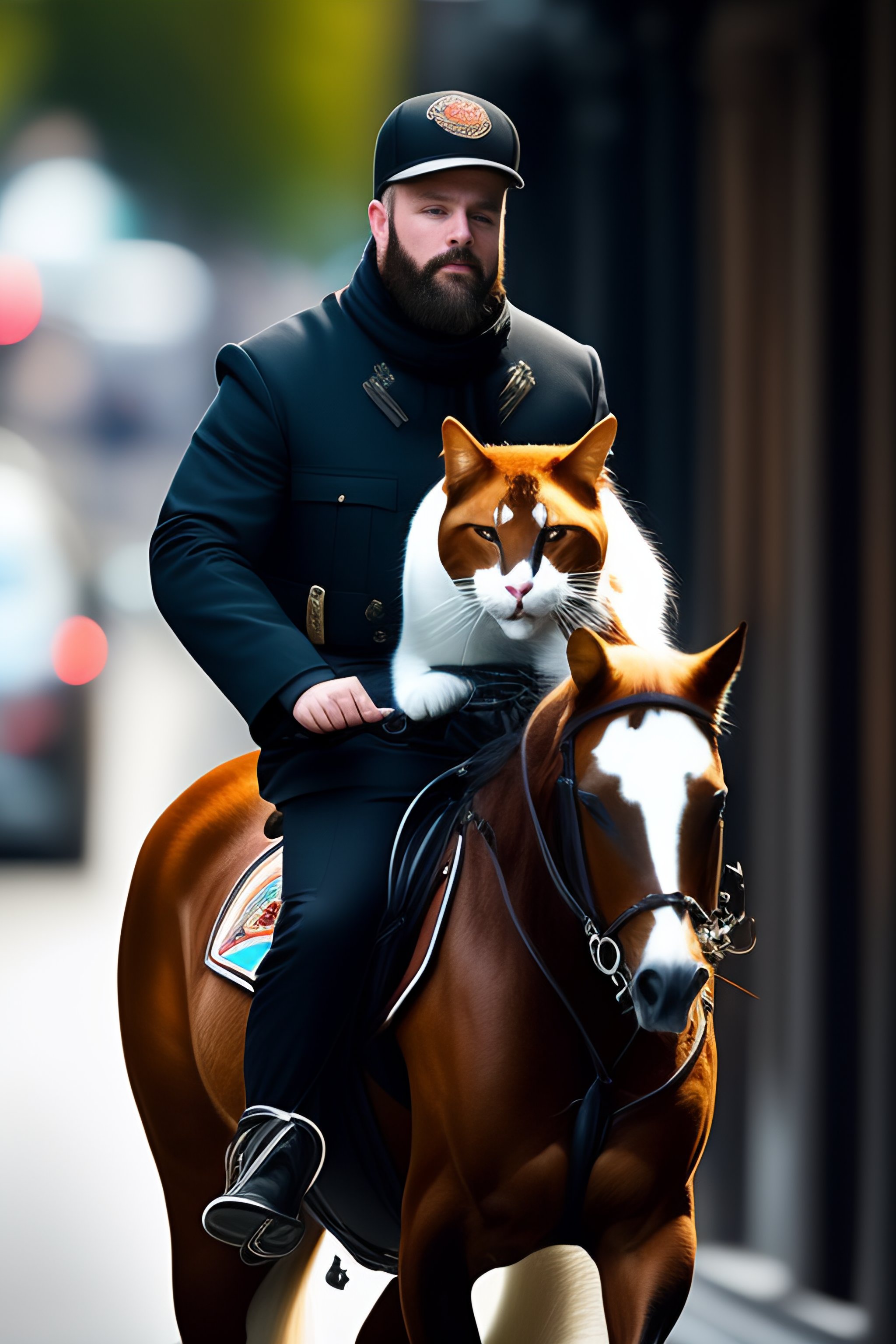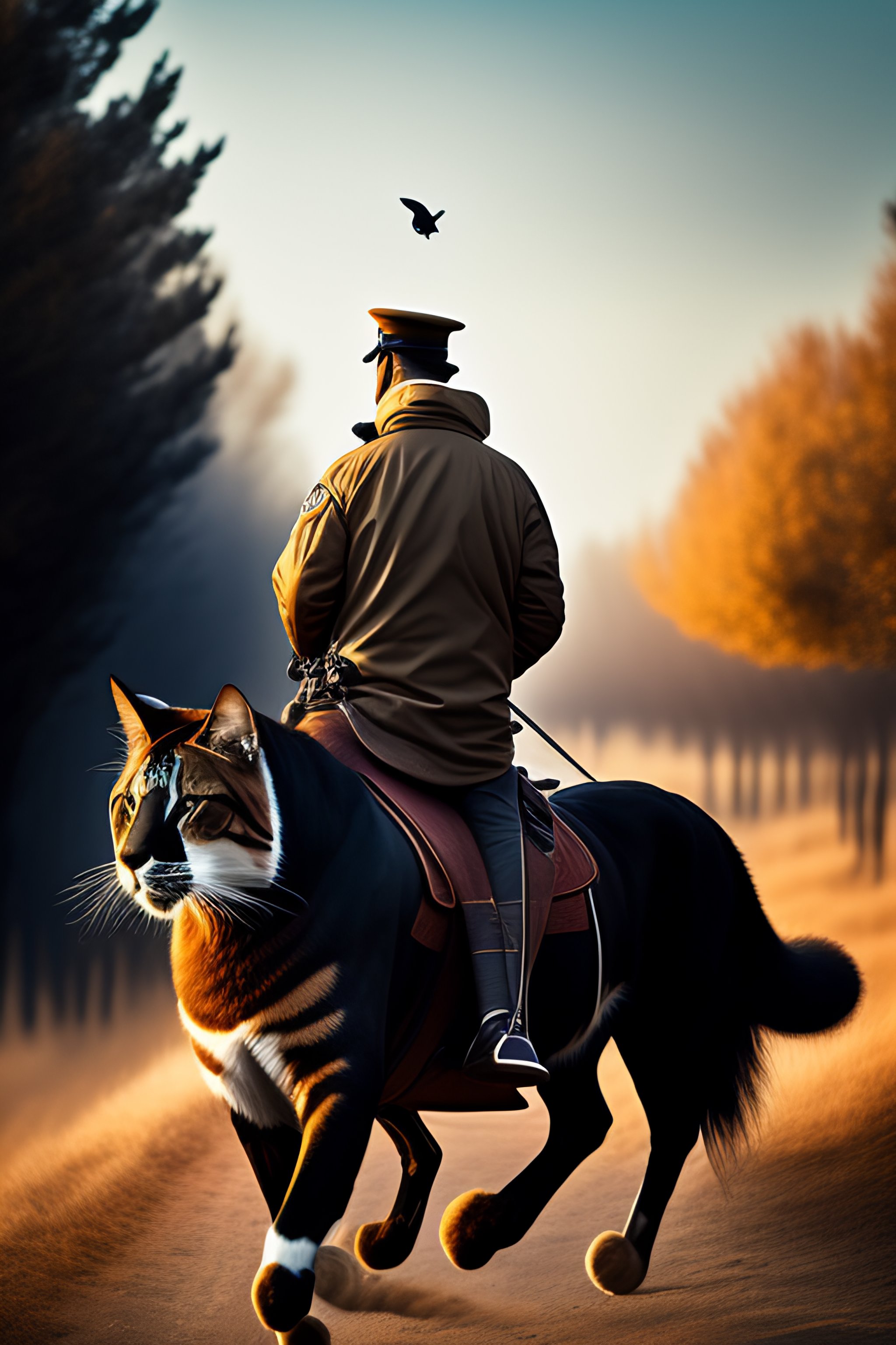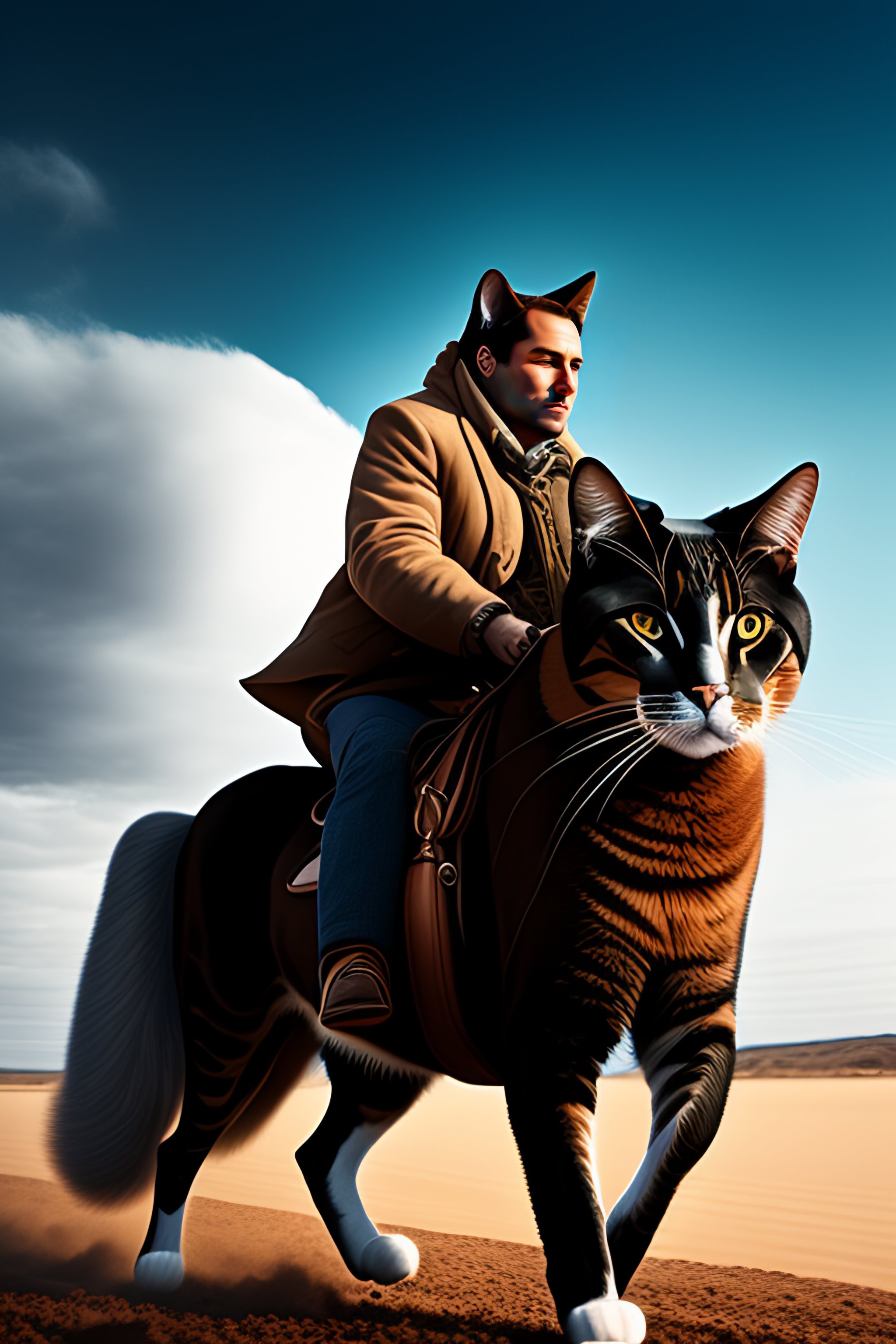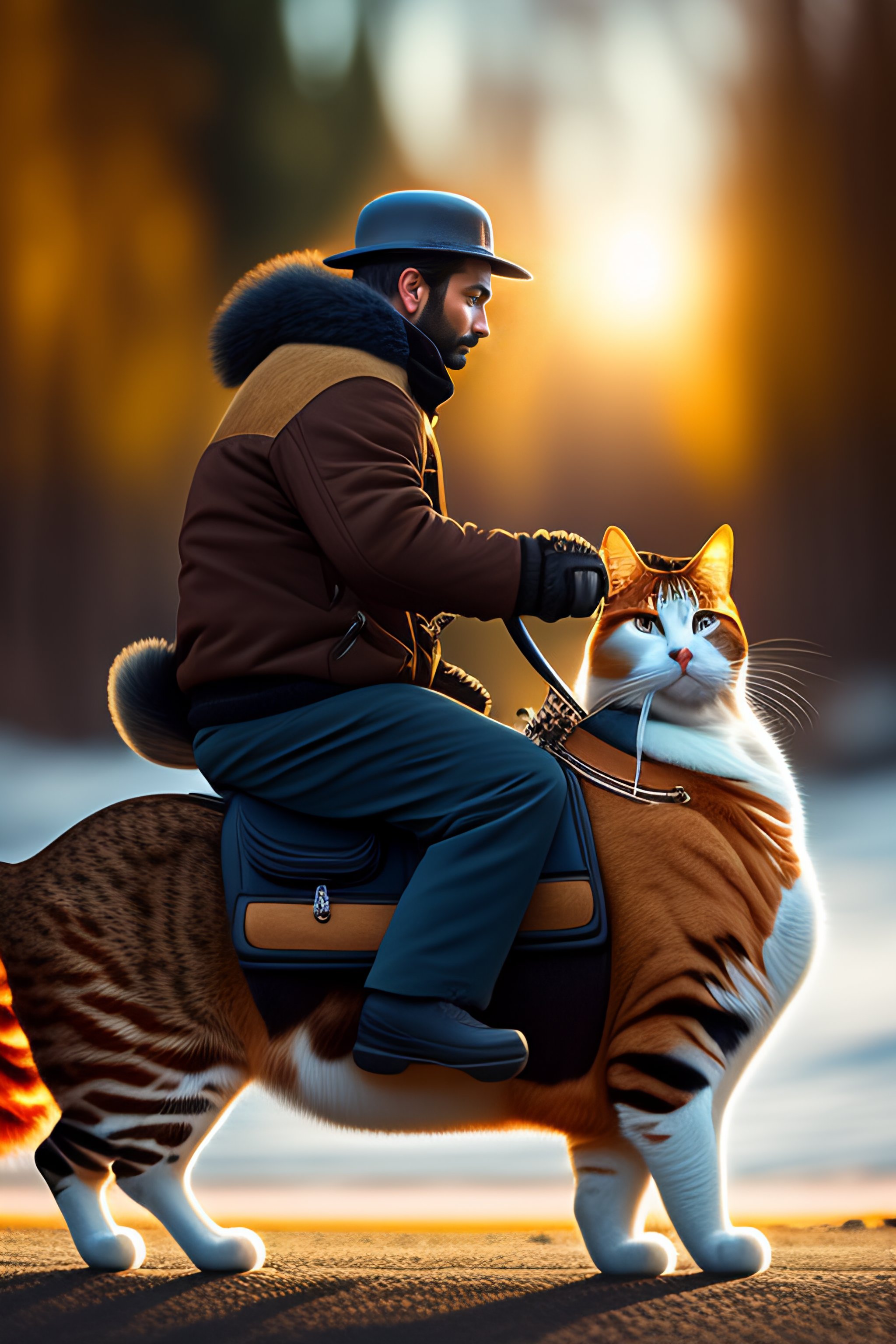 A man riding a cat
