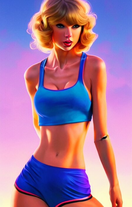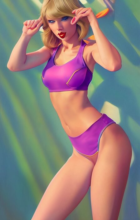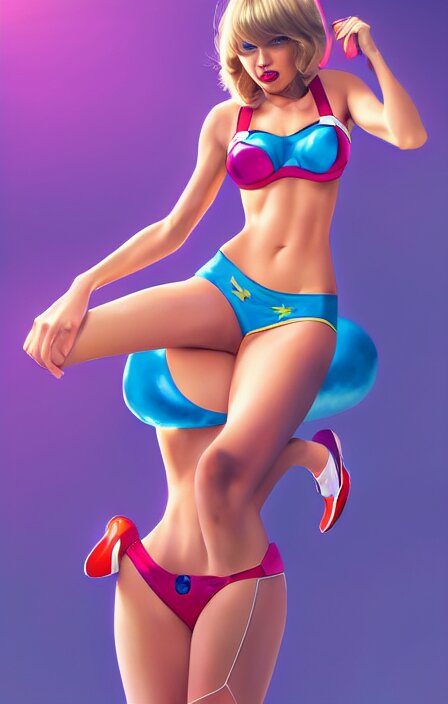 Taylor swift cosplaying lola bunny, modeling, posing, playboy bunny, two piece workout clothes, training bra, photorealistic lighting, professional lighting, vibrant colors, gta 5 skin tone, photorealistic skin tone, tooth wu artgerm greg rutkowski alphonse mucha beeple artstation deviantart, 8k, fanart, extreme aesthetic