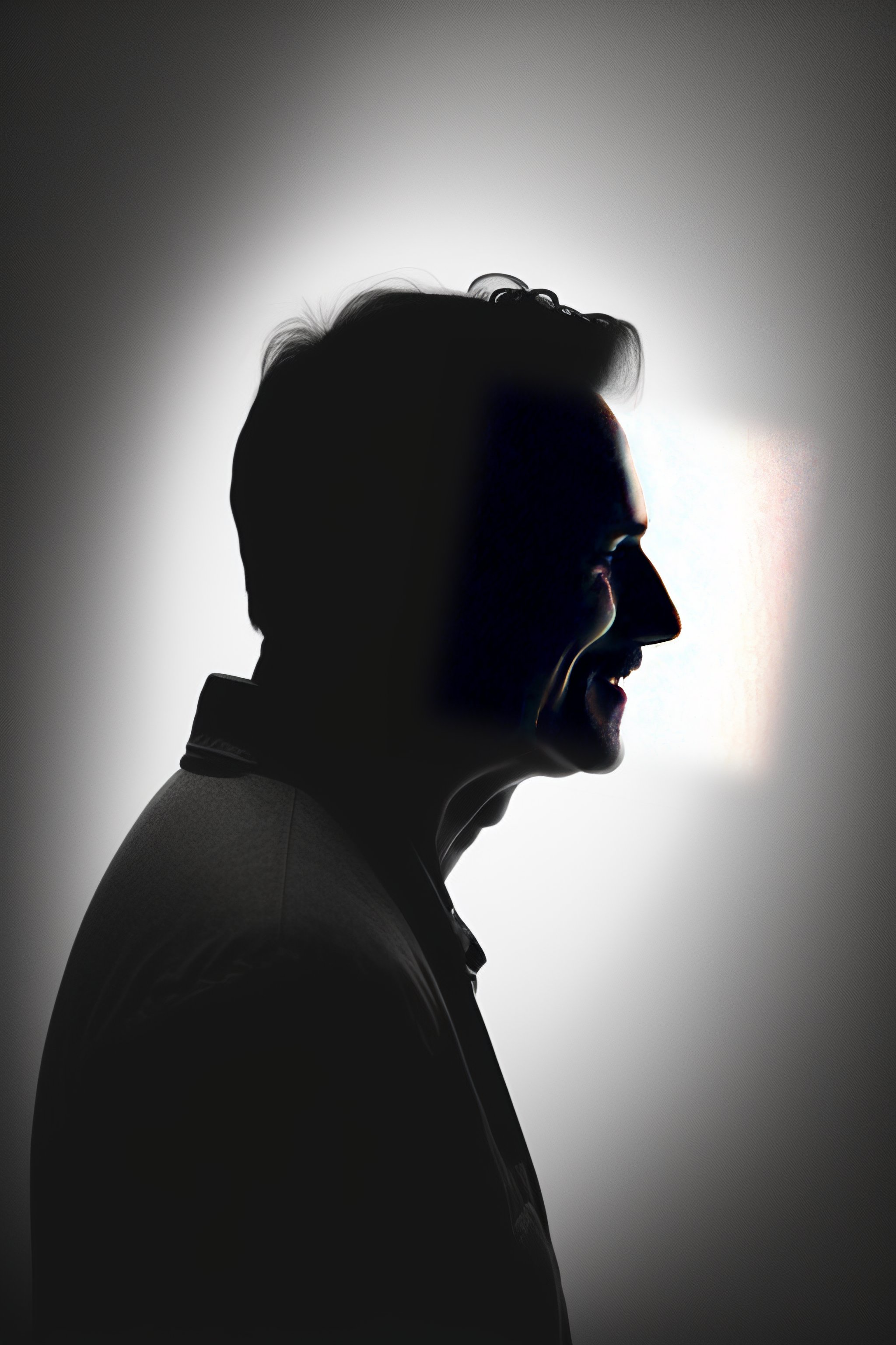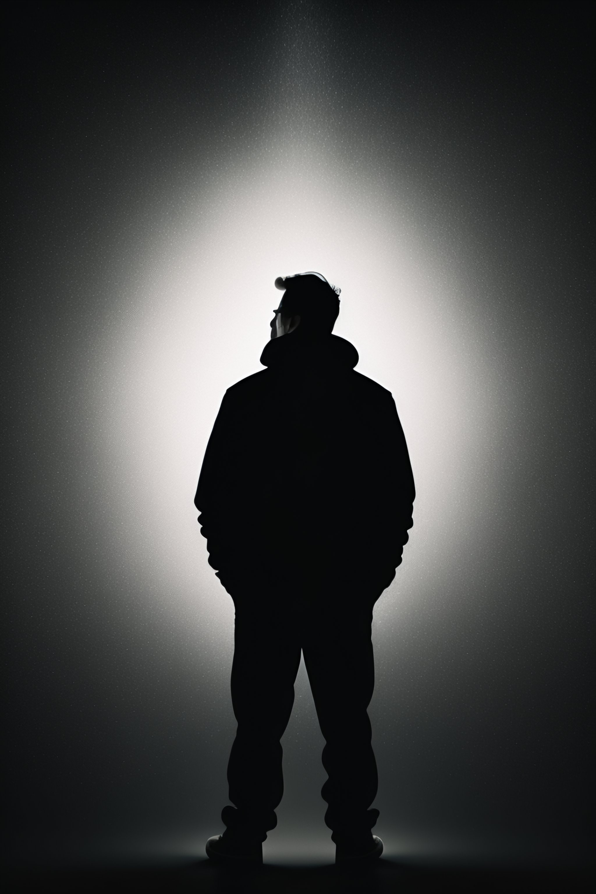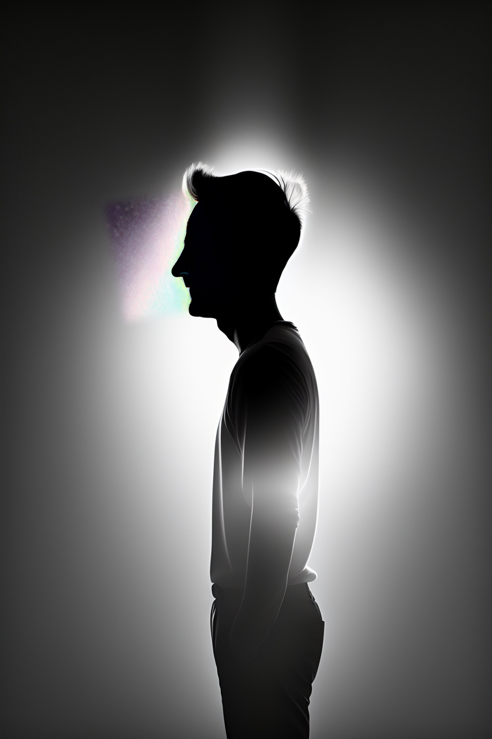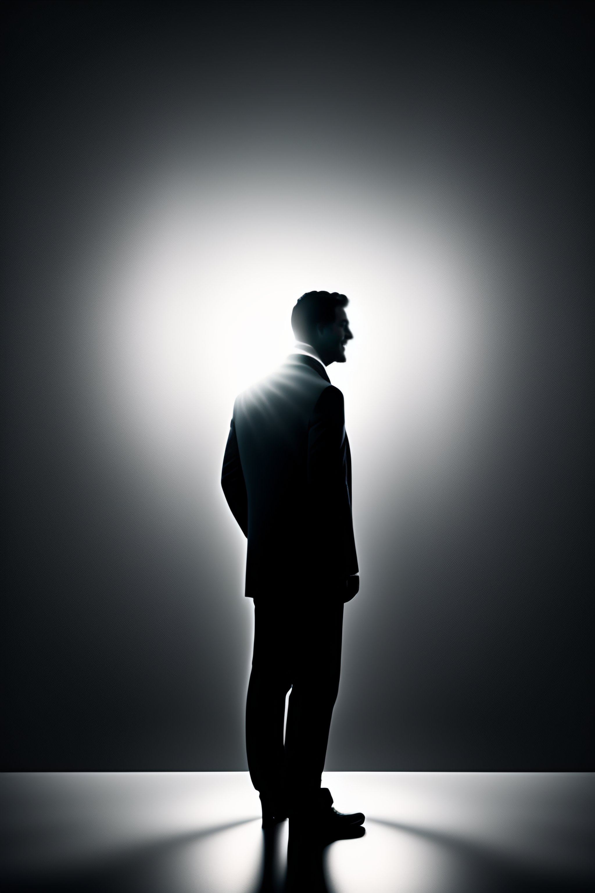 Silhouette of a happy man standing in light