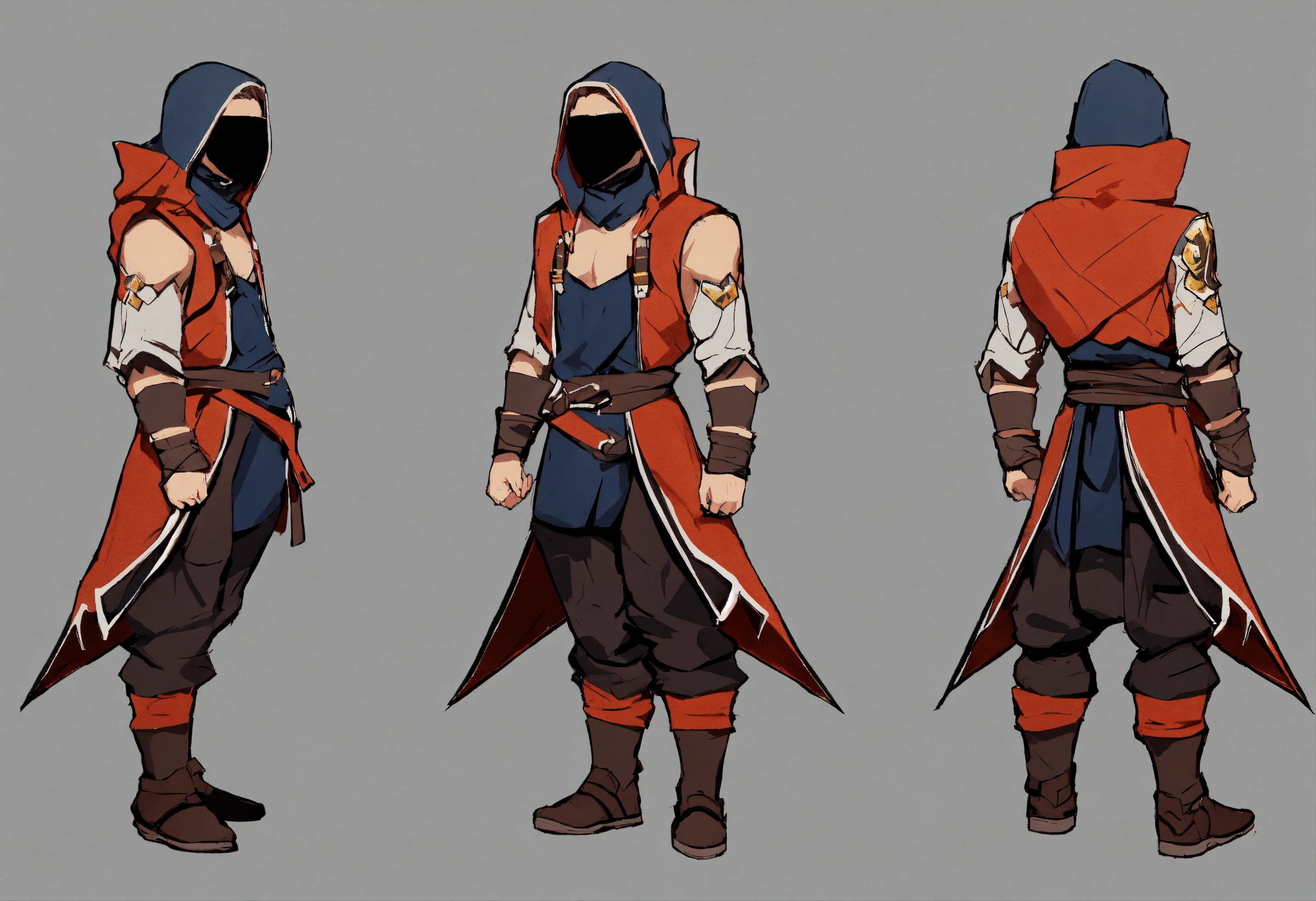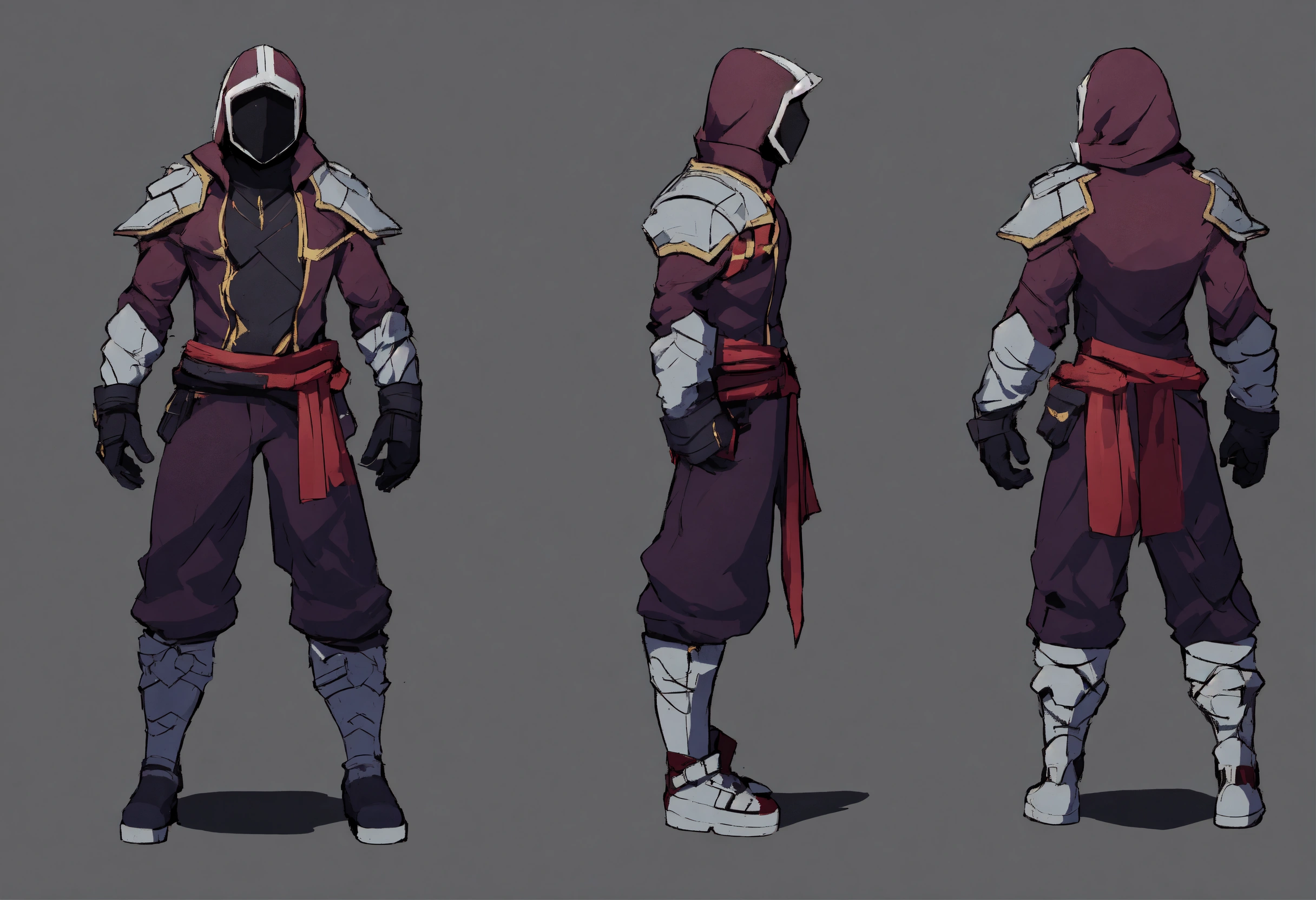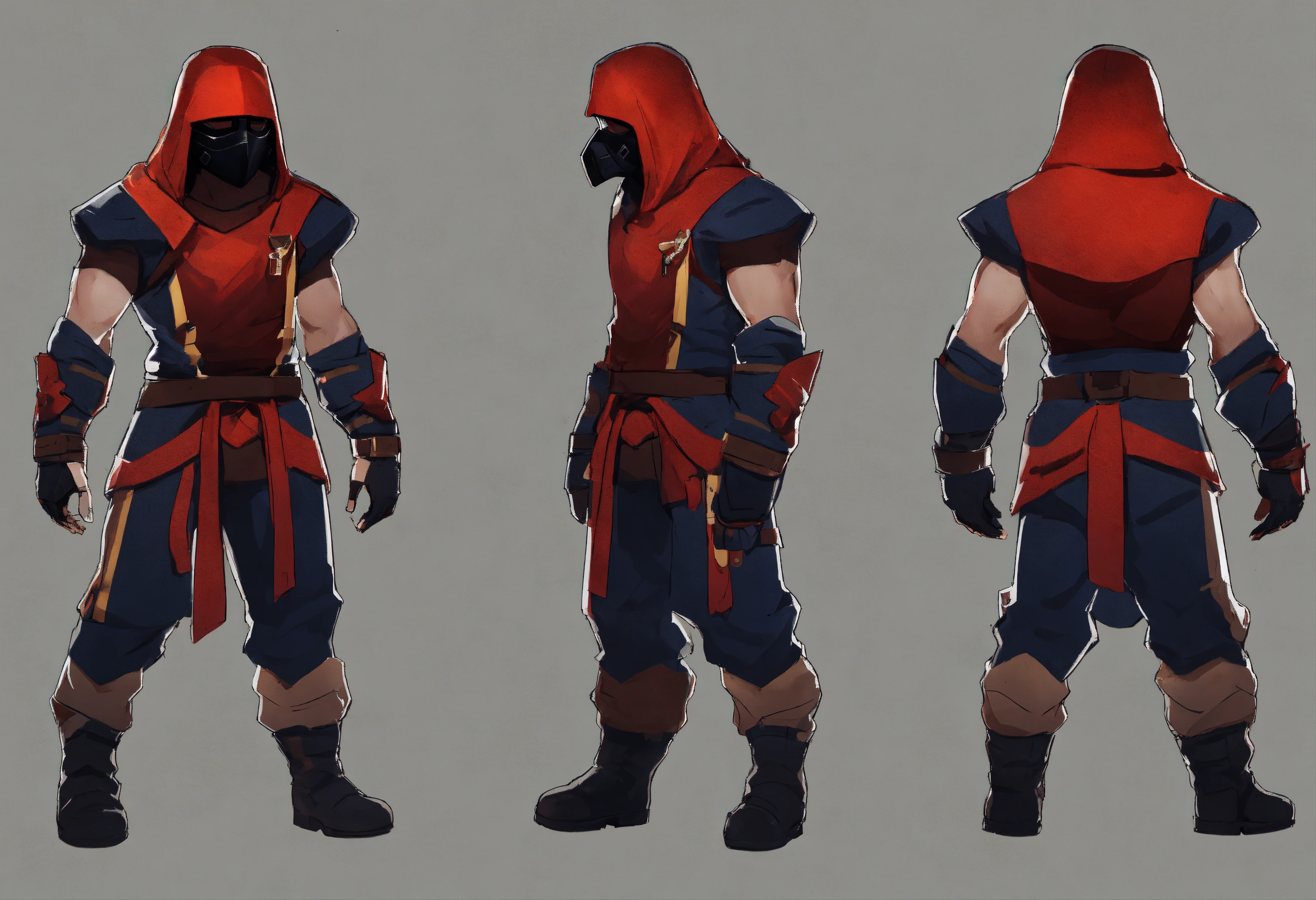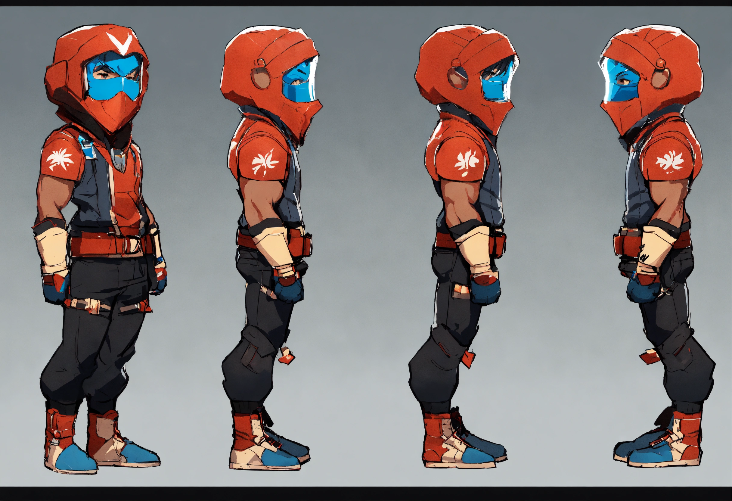 Game art, concept art, masked, guy, fighter, walking, game art, full body view, side view, chibi proportions, blank background