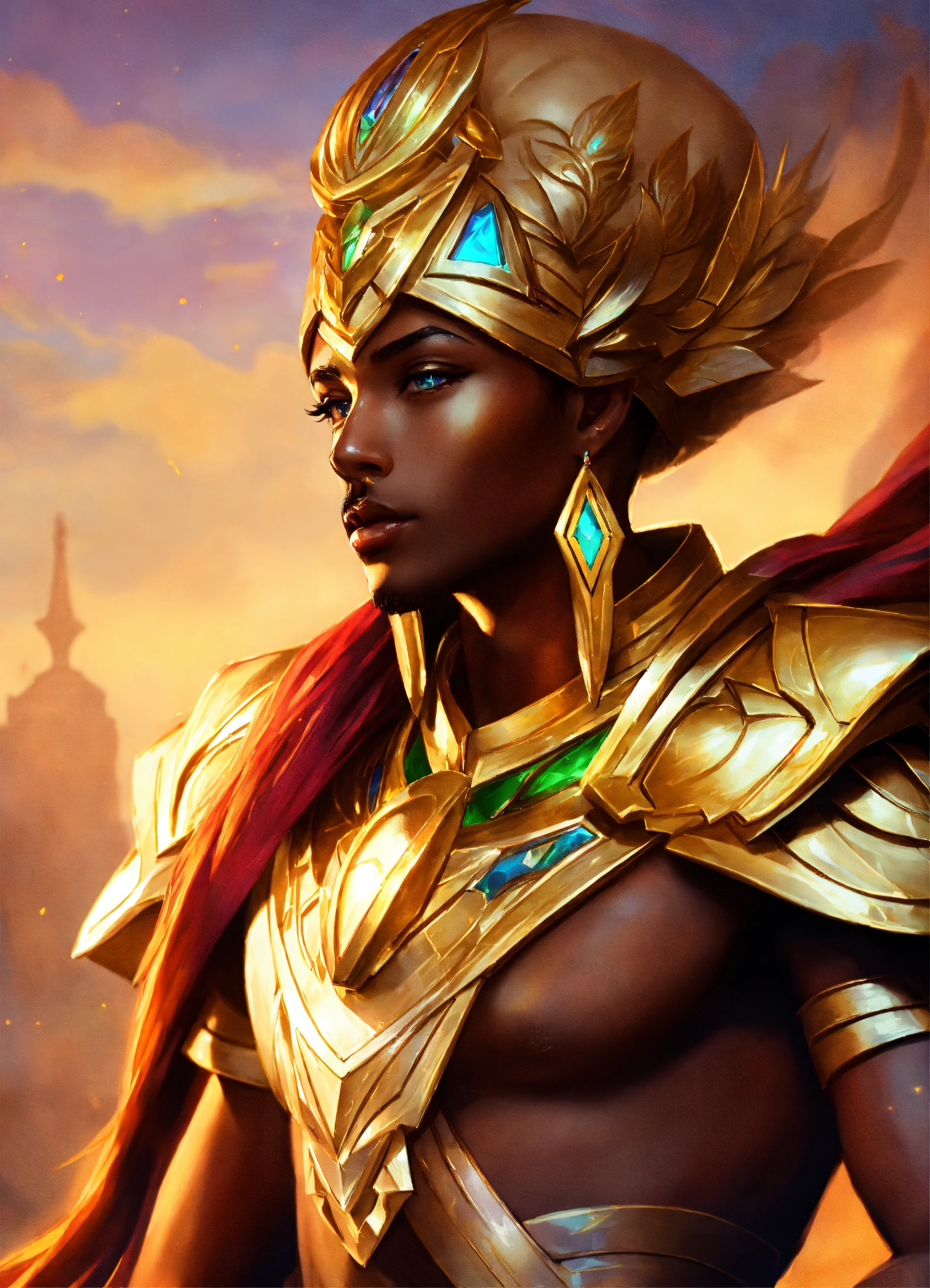 Ethiopian azir from league of legends, hyperrealistic, shiny, glossy, shadowed lighting, featured on vogue