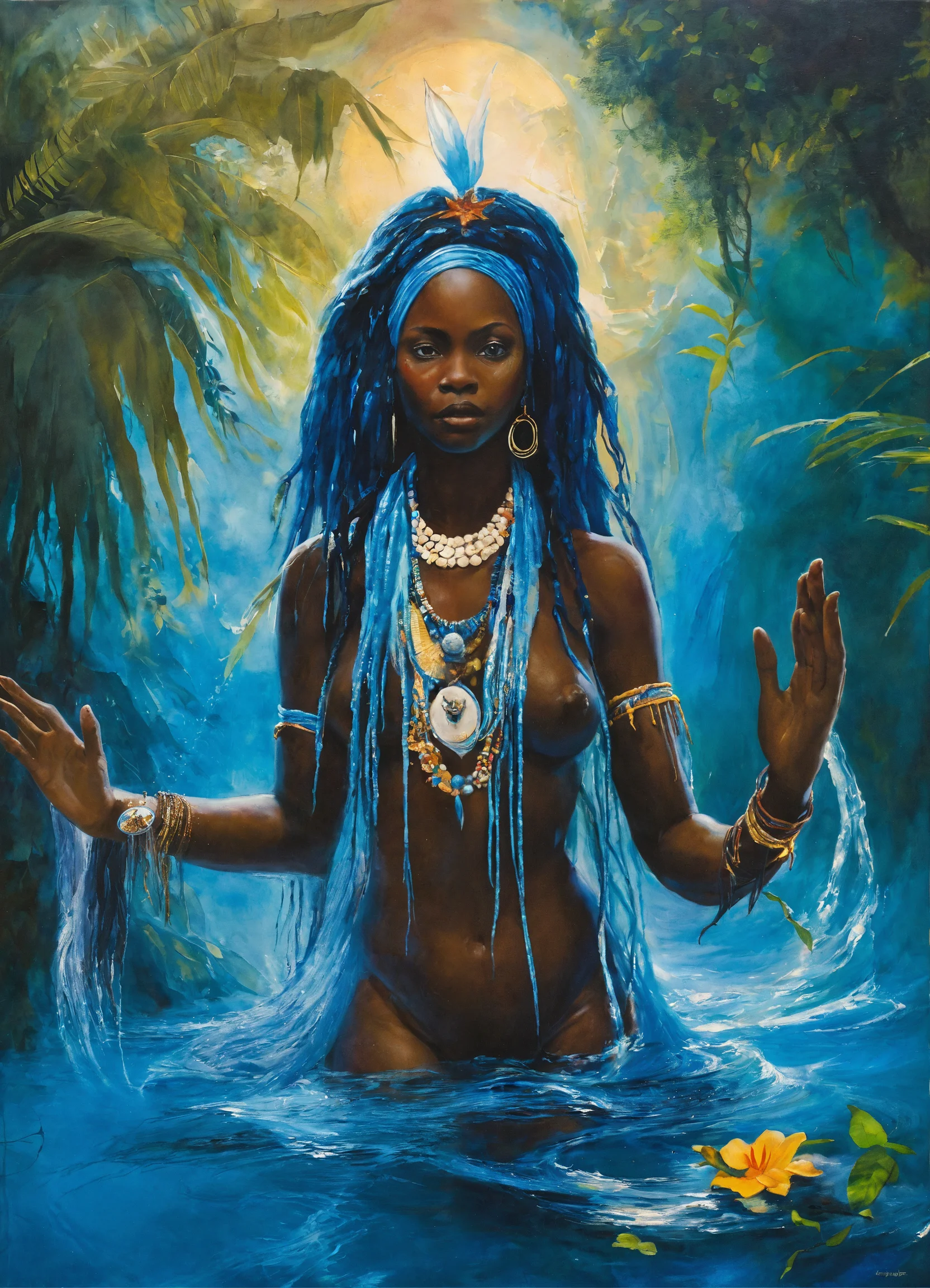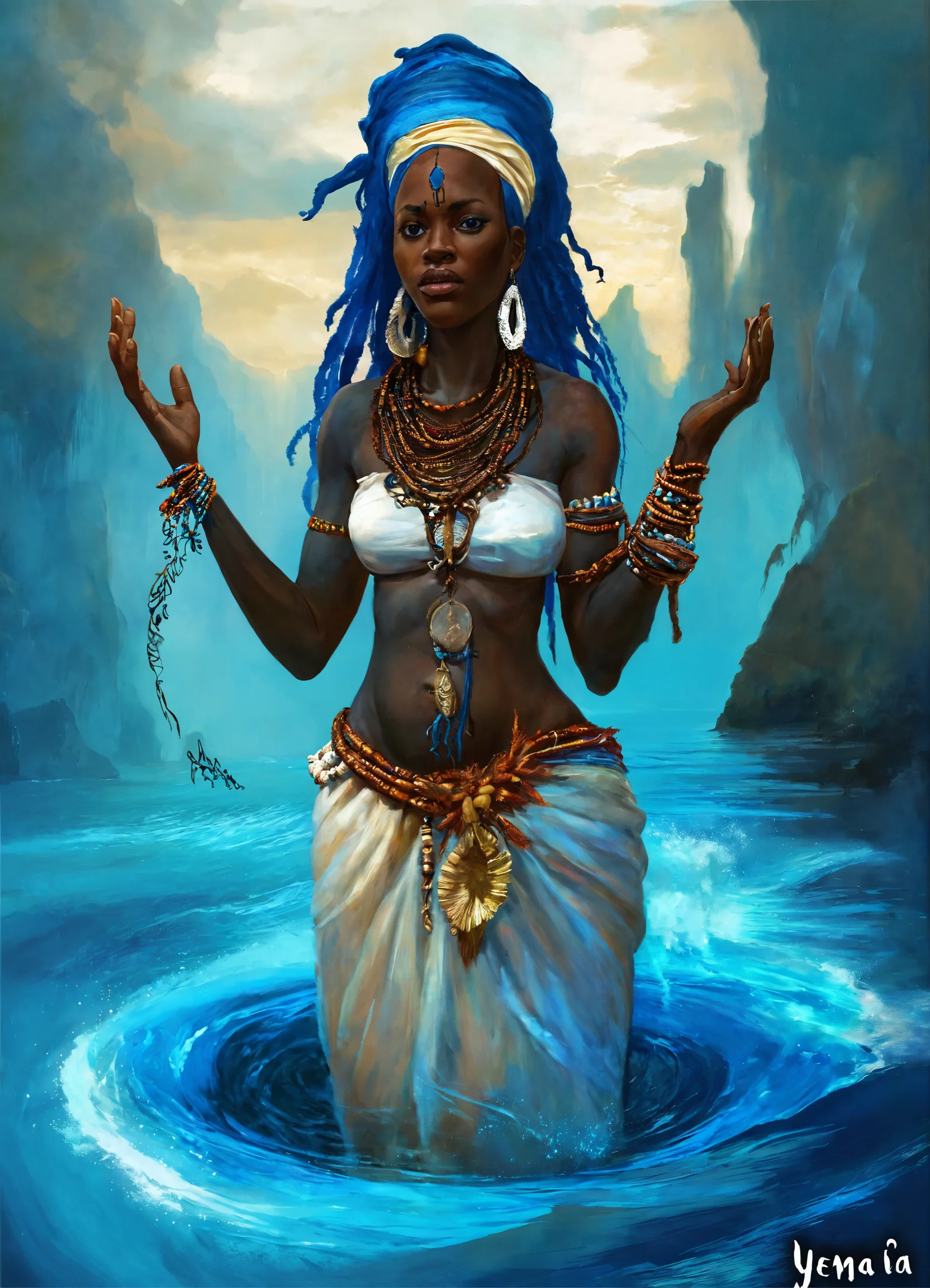 Yemaya, also known as yemanjá, is a powerful, primordial spiritual entity or orisha in yorubaland mythology that is associated with water and is considered the mother of all. she is a prominent and beloved spirit in santeria, candomblé, and other african diaspora traditions.