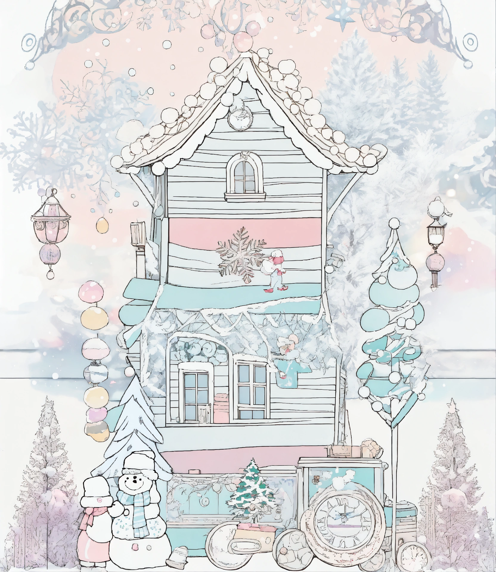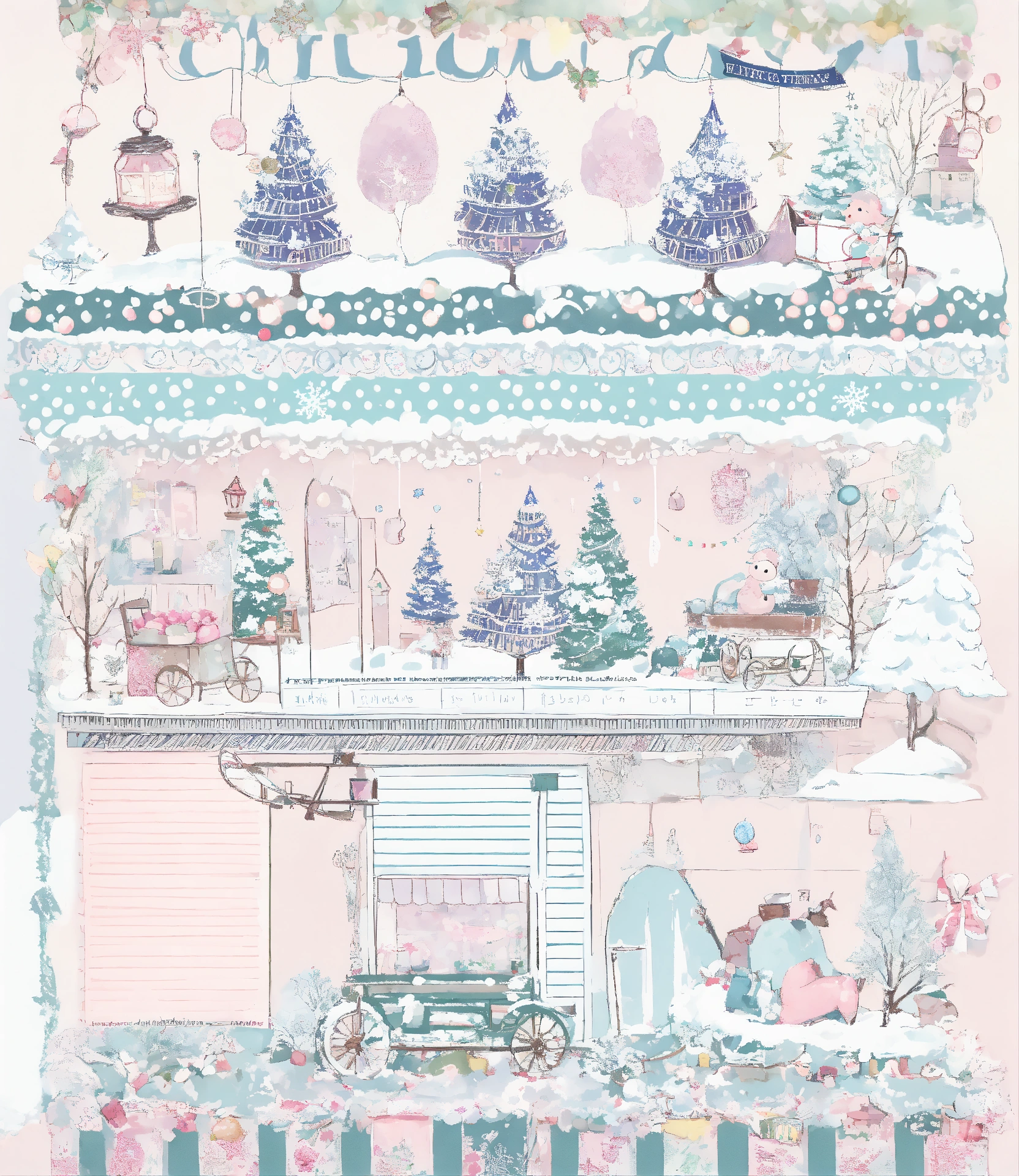 Shabby chic dreamy mist pastel colors junk journal whimsical children at snowy christmas wintertime