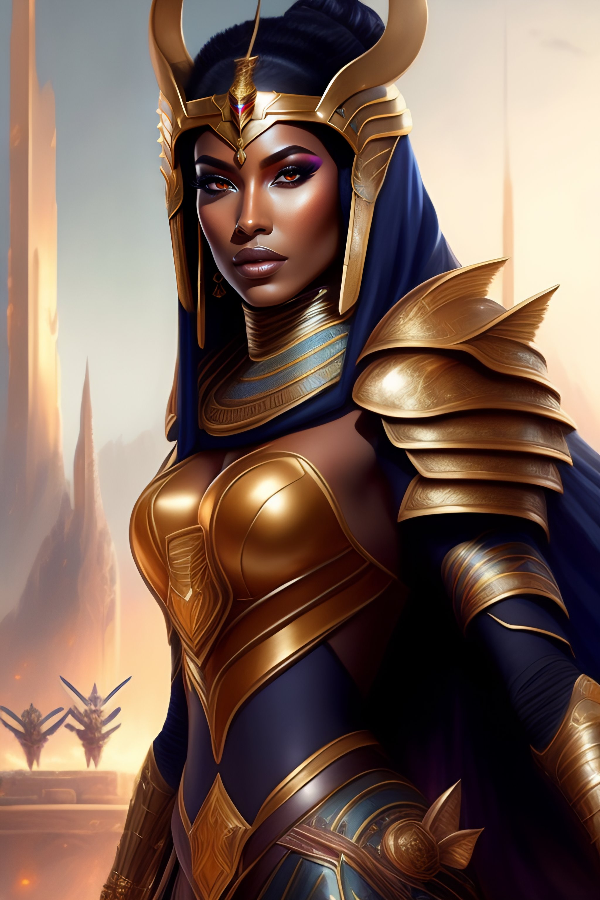Sci-fi armor wearing pharaoh, holding a laser khopesh, egyptian, beetle, deep focus, d & d, fantasy, intricate, elegant, highly detailed, digital painting, artstation, concept art, matte, sharp, illustration, hearthstone, art by artgerm and greg rutkowski and alphonse mucha