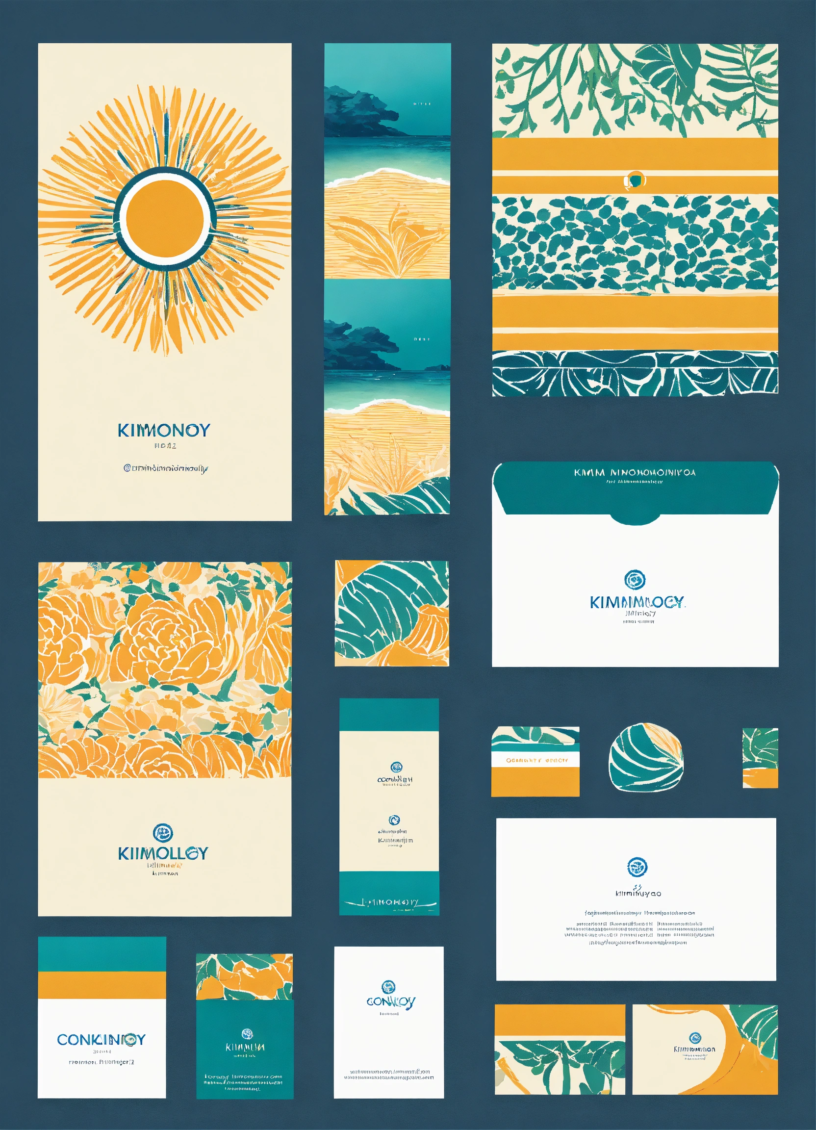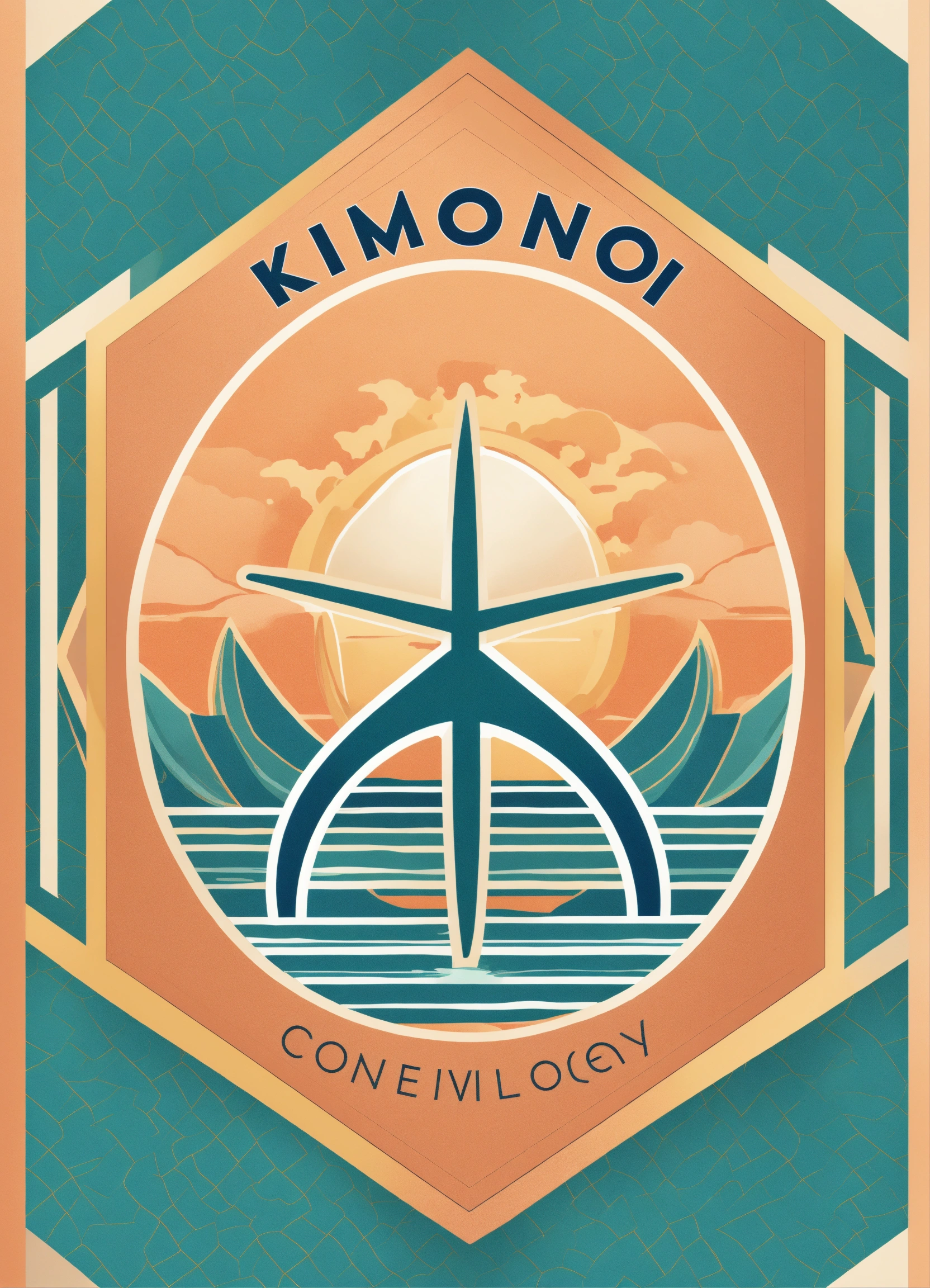 High resolution icon of a extremely simple 2d, elegant, clean and modern geometric logo, business identity, business card, letterhead for beach inspired women's clothing company "kimonology" conveying "peace", "freedom", "ocean", "tropical", serene