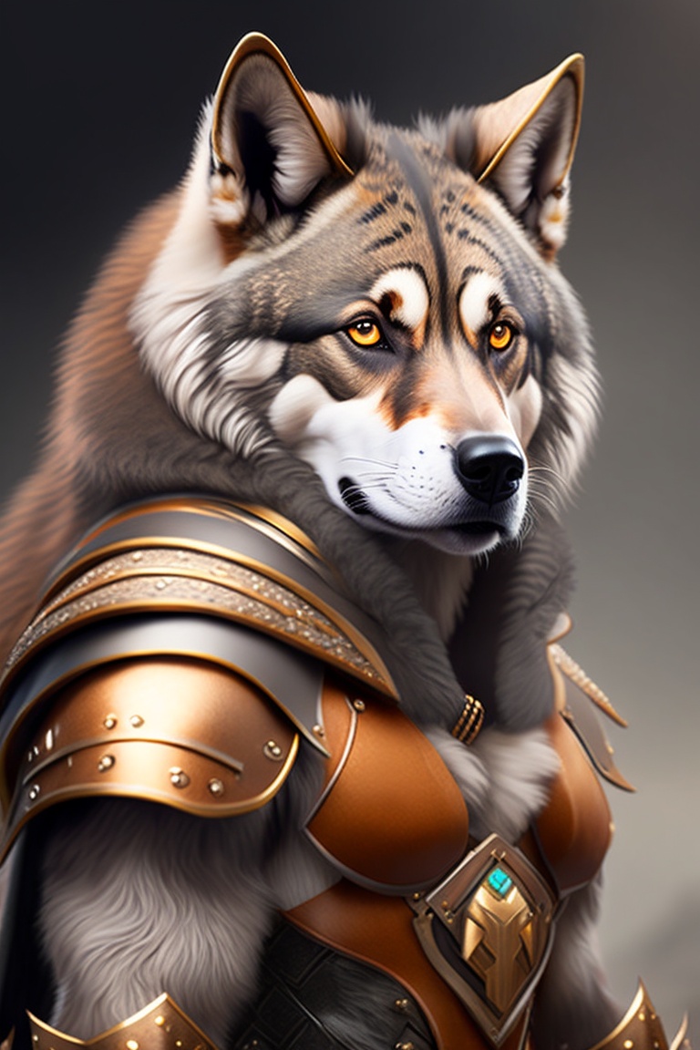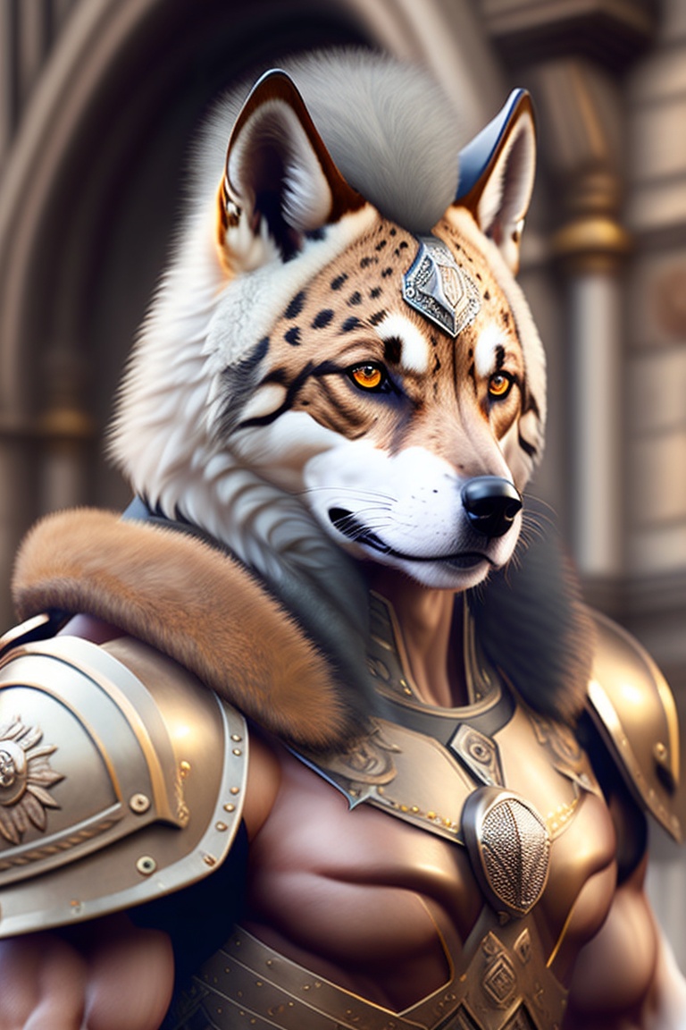 Ultra realistic humanoid gnoll warrior with husky like features. leopard print fur, heavily muscled. wearing leather armor