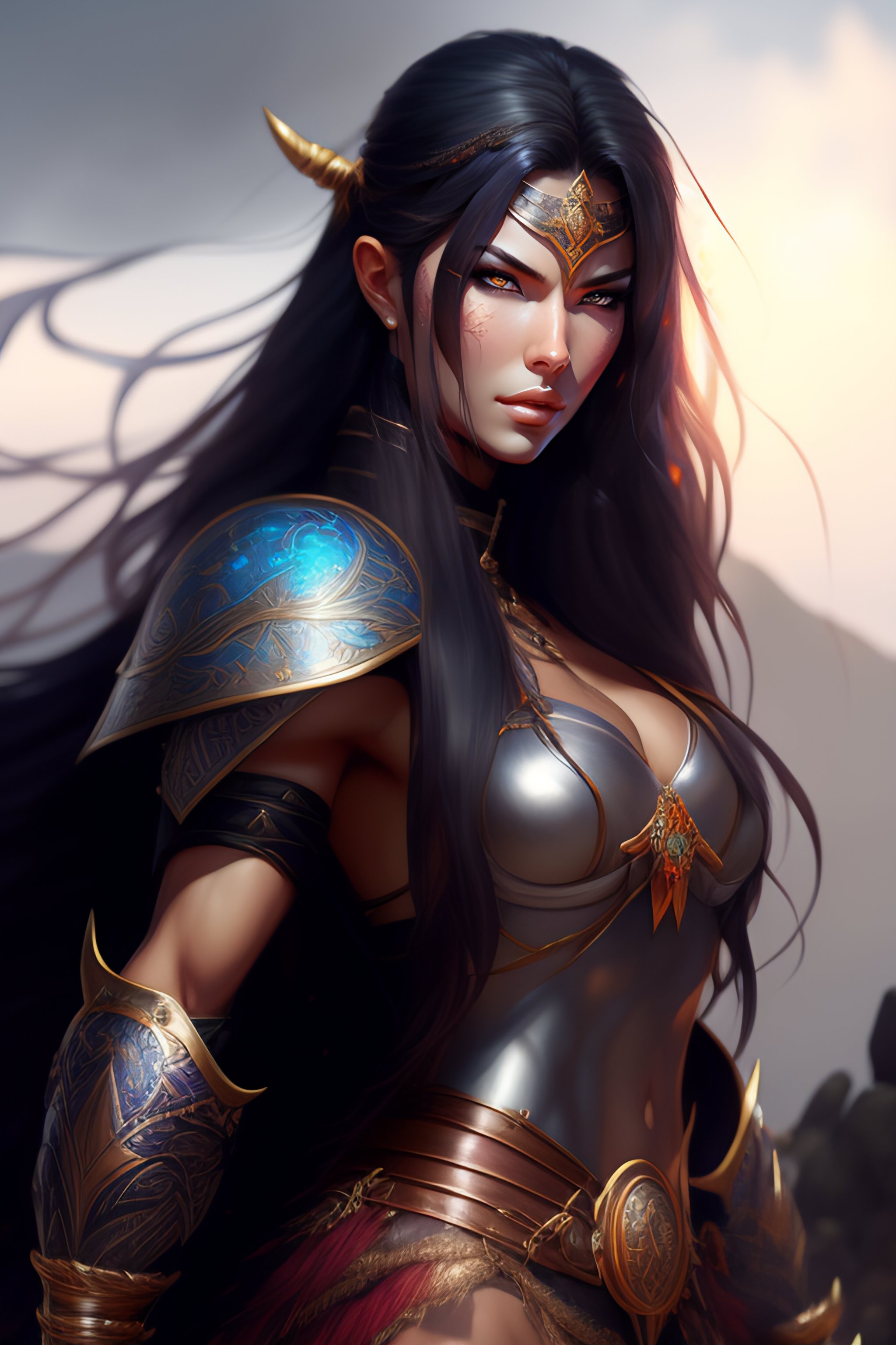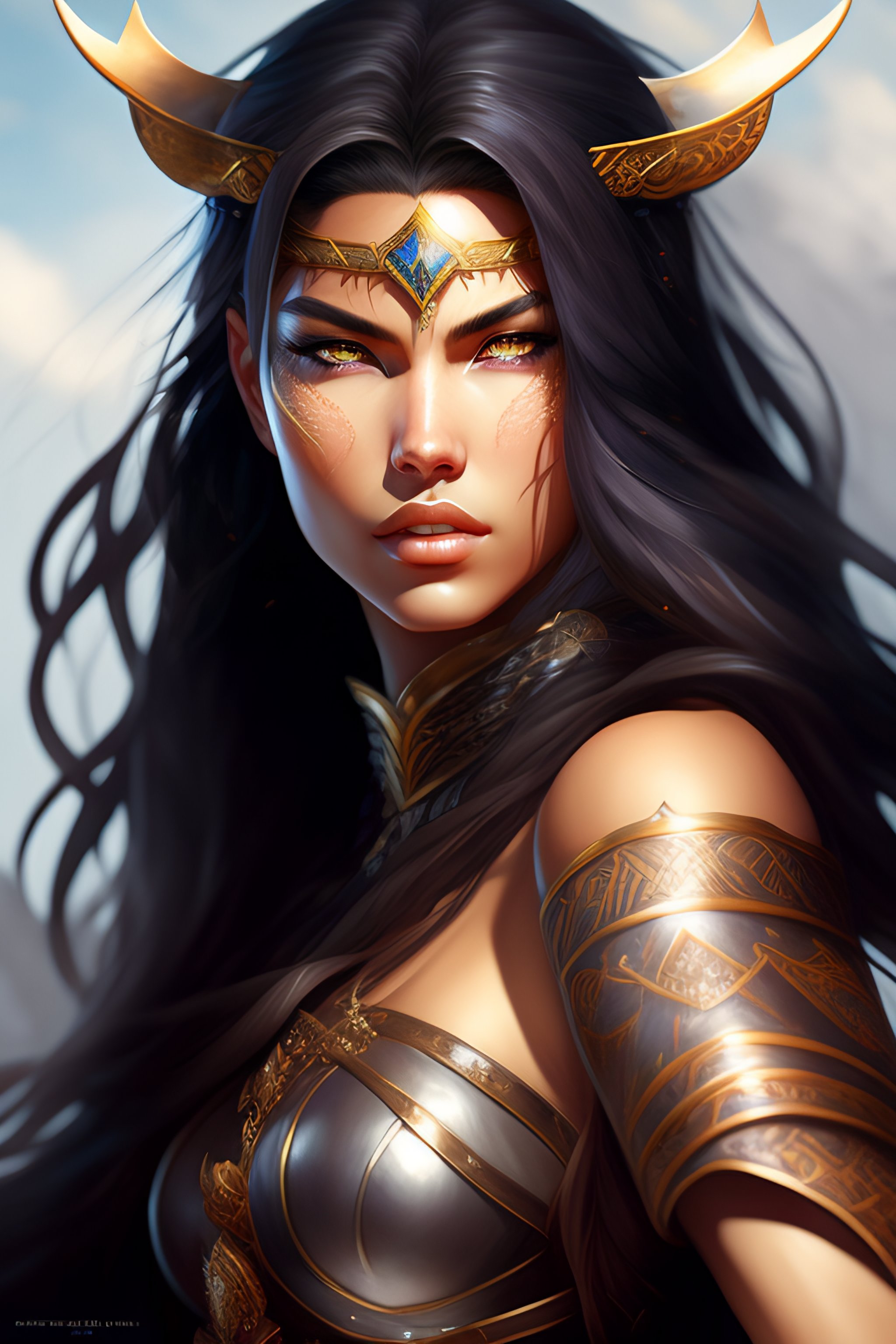 Full body potrait of thin muscular adriana lima as viking woman warrior anime version, full long black hair highly intricate detailed, light and shadow effects, intricate, highly detailed, digital painting, art station, concept art, smooth, sharp focus, illustration, advanced digital anime art, atmospheric lighting, detailed face, 8 k, hq, artstation, by makoto shinkai, stanley artgerm lau, wlop, rossdraws ”