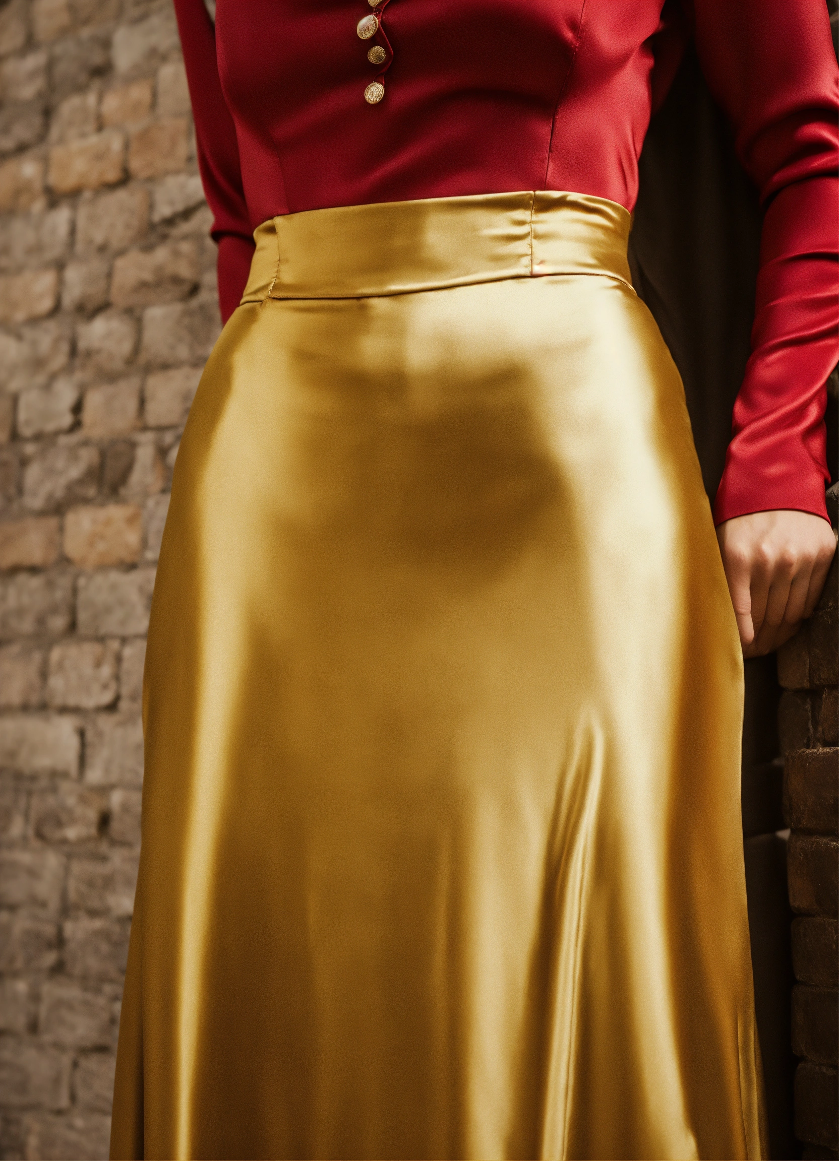 Shot looking up at man wearing tight satin skirt, shiny, figure-hugging, clingy, pencil maxi skirt, pulled tight, close up, godlike manly body