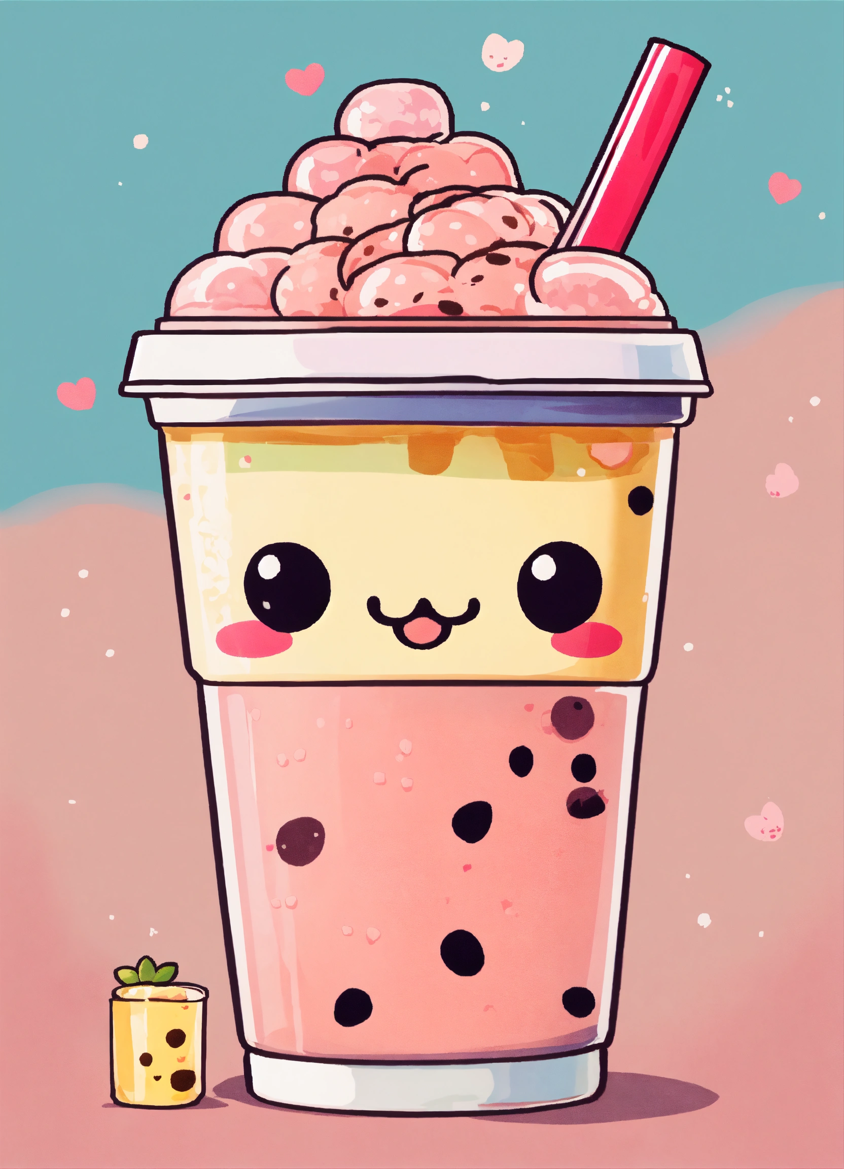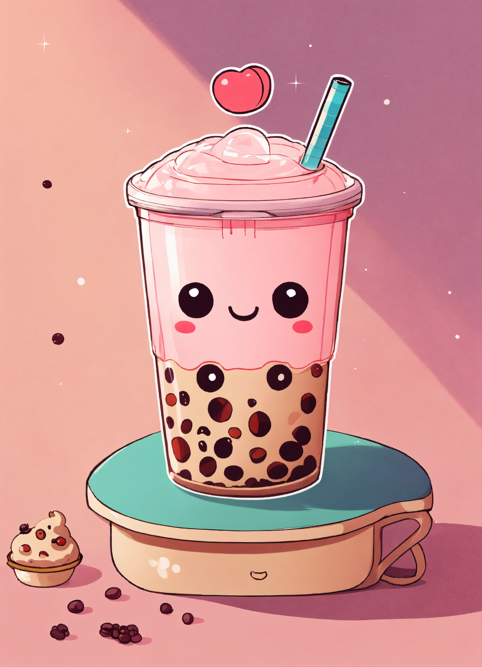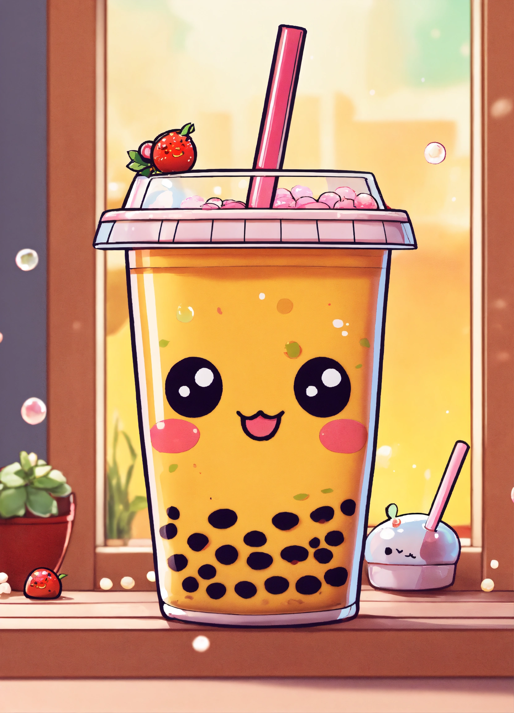 A cute bubble tea cup kawaii style