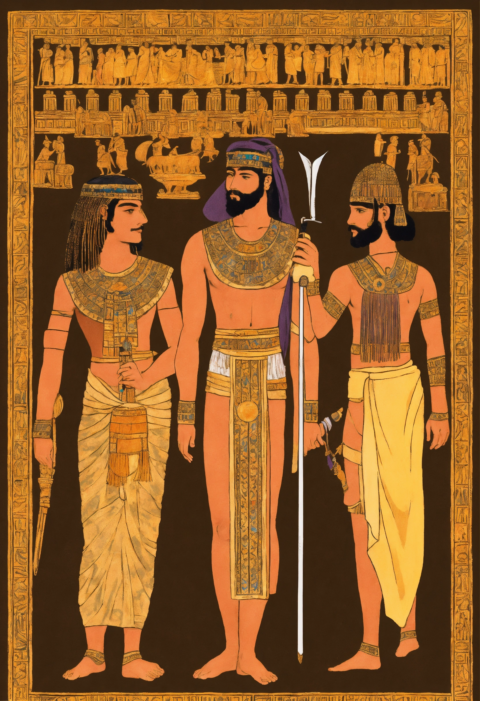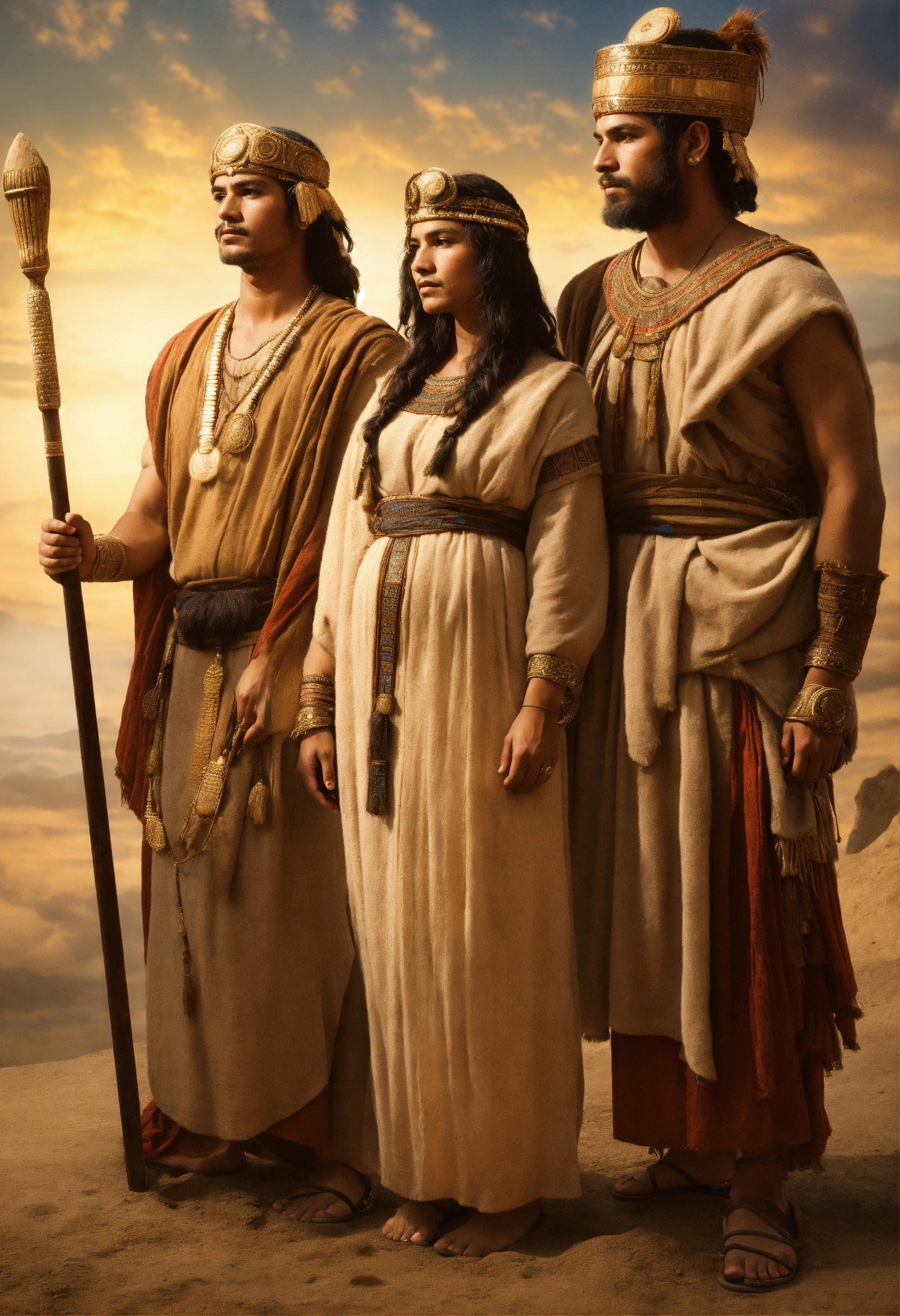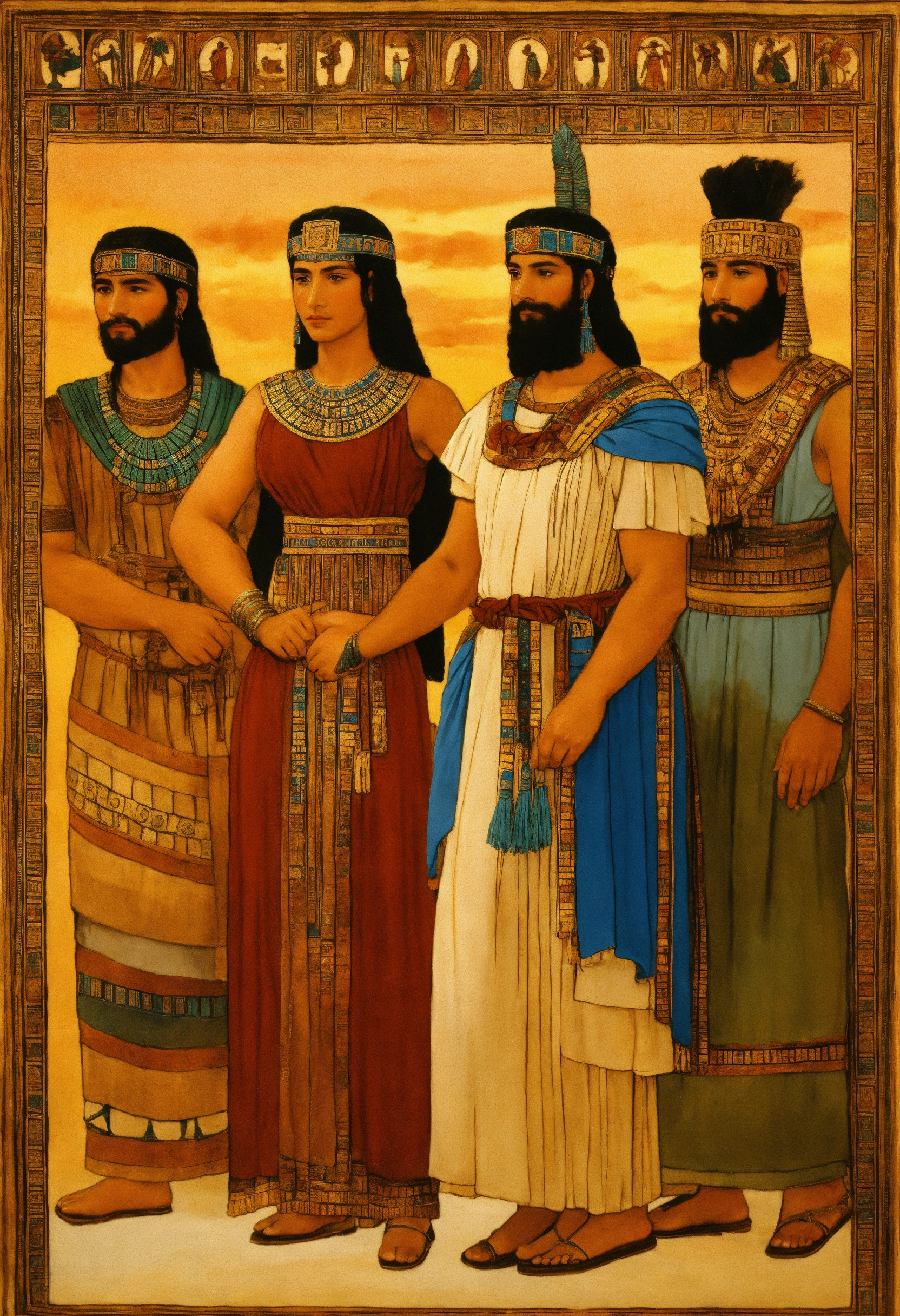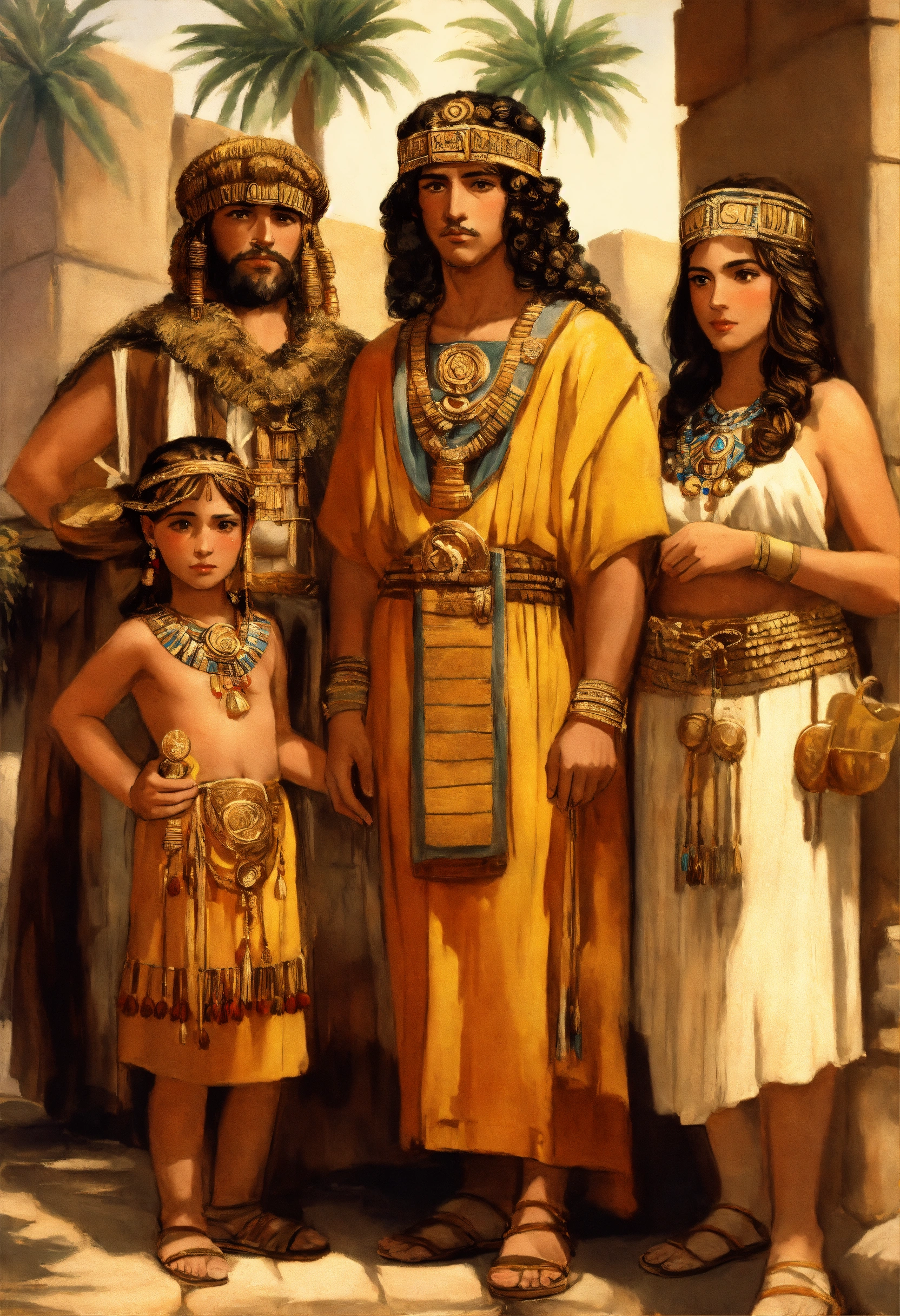 Ancient people iv - iii millennium bc era of sumer, dressed in ancient costumes of the people of sumer. family of 5 people