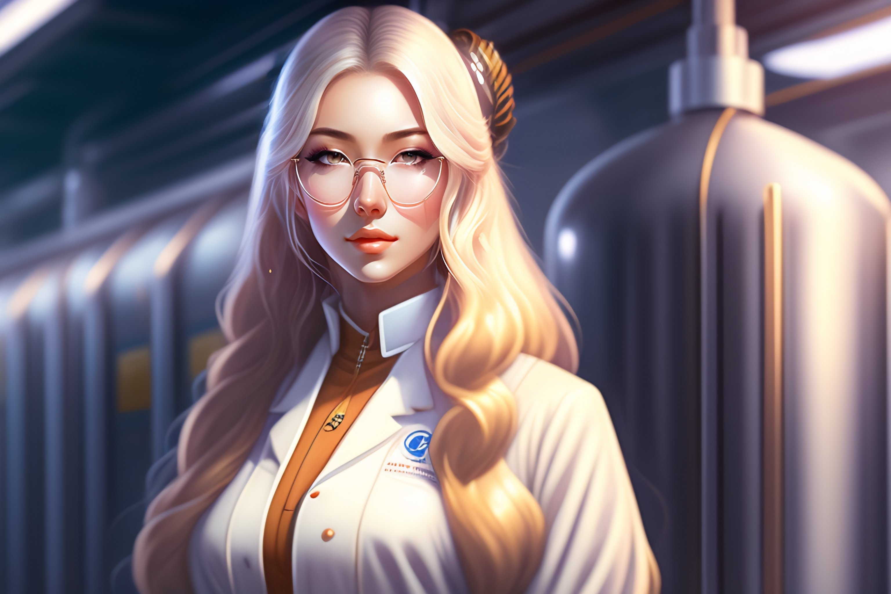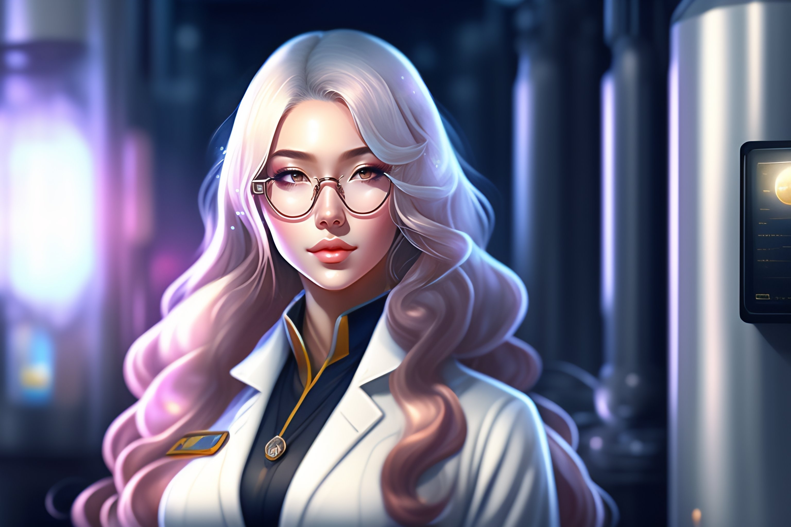 Beautiful anime girl with long white hair, wearing lab coat and glasses, holding a clipboard, standing inside a research facility, character portrait, 1 9 6 0 s, long hair, intricate, elegant, highly detailed, digital painting, artstation, concept art, smooth, sharp focus, illustration, art by wlop, charlie bowater and alexandra fomina