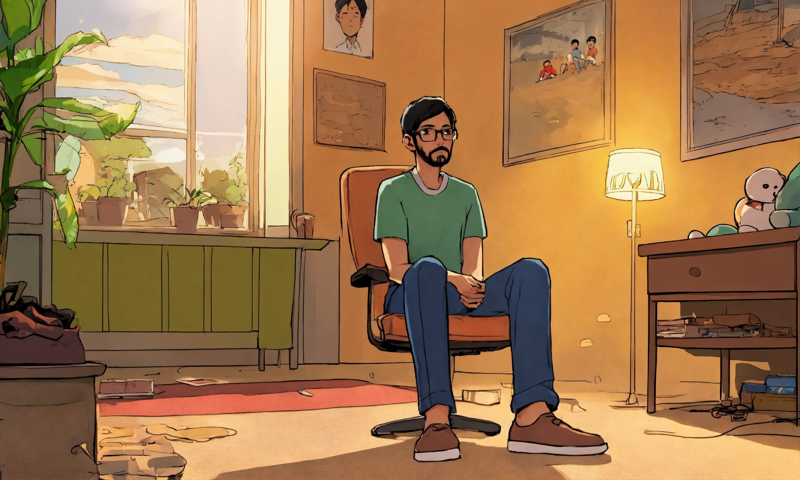 Sundar pichai comic strip of the boy is sad and sitting in the room scene