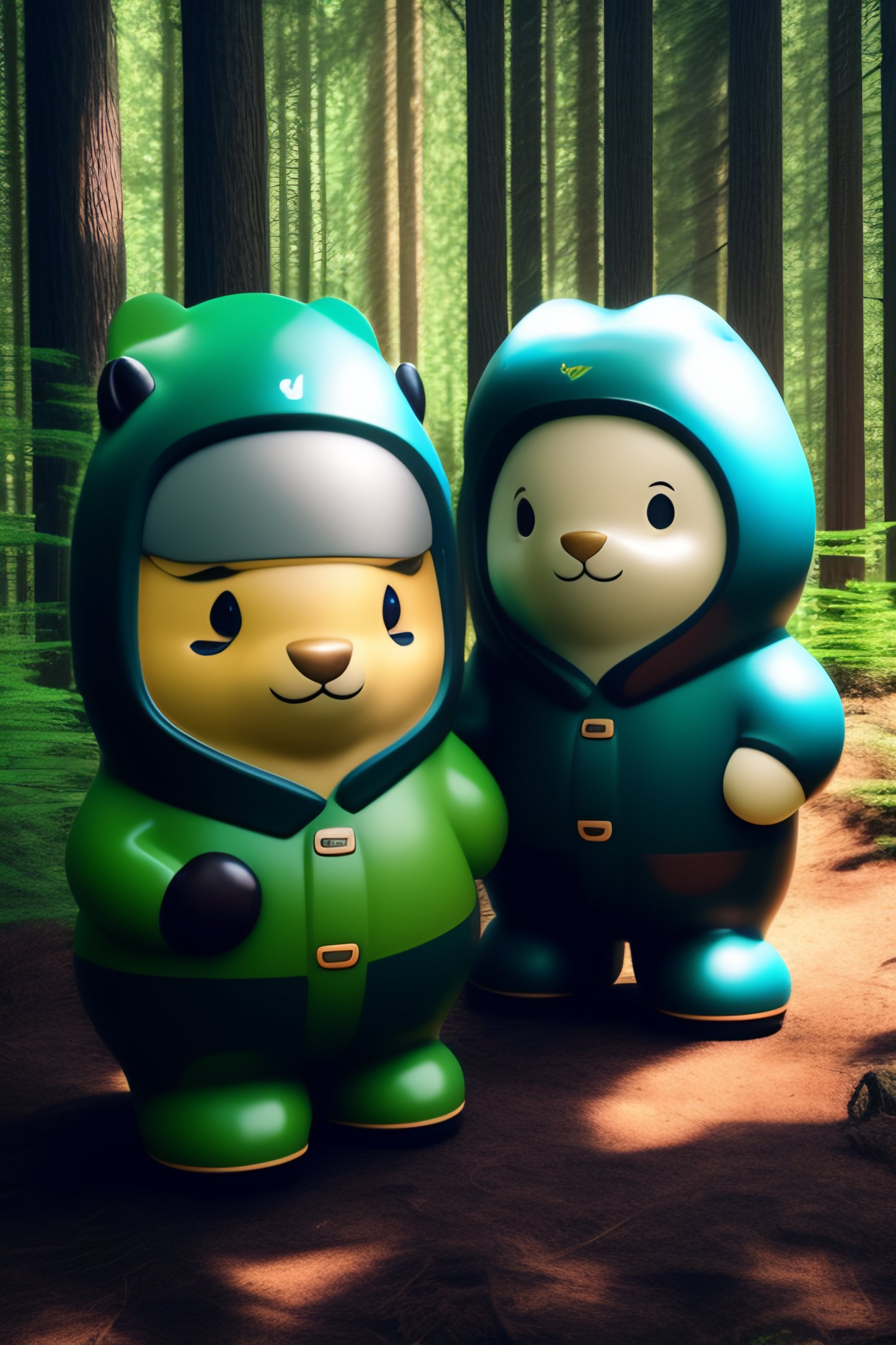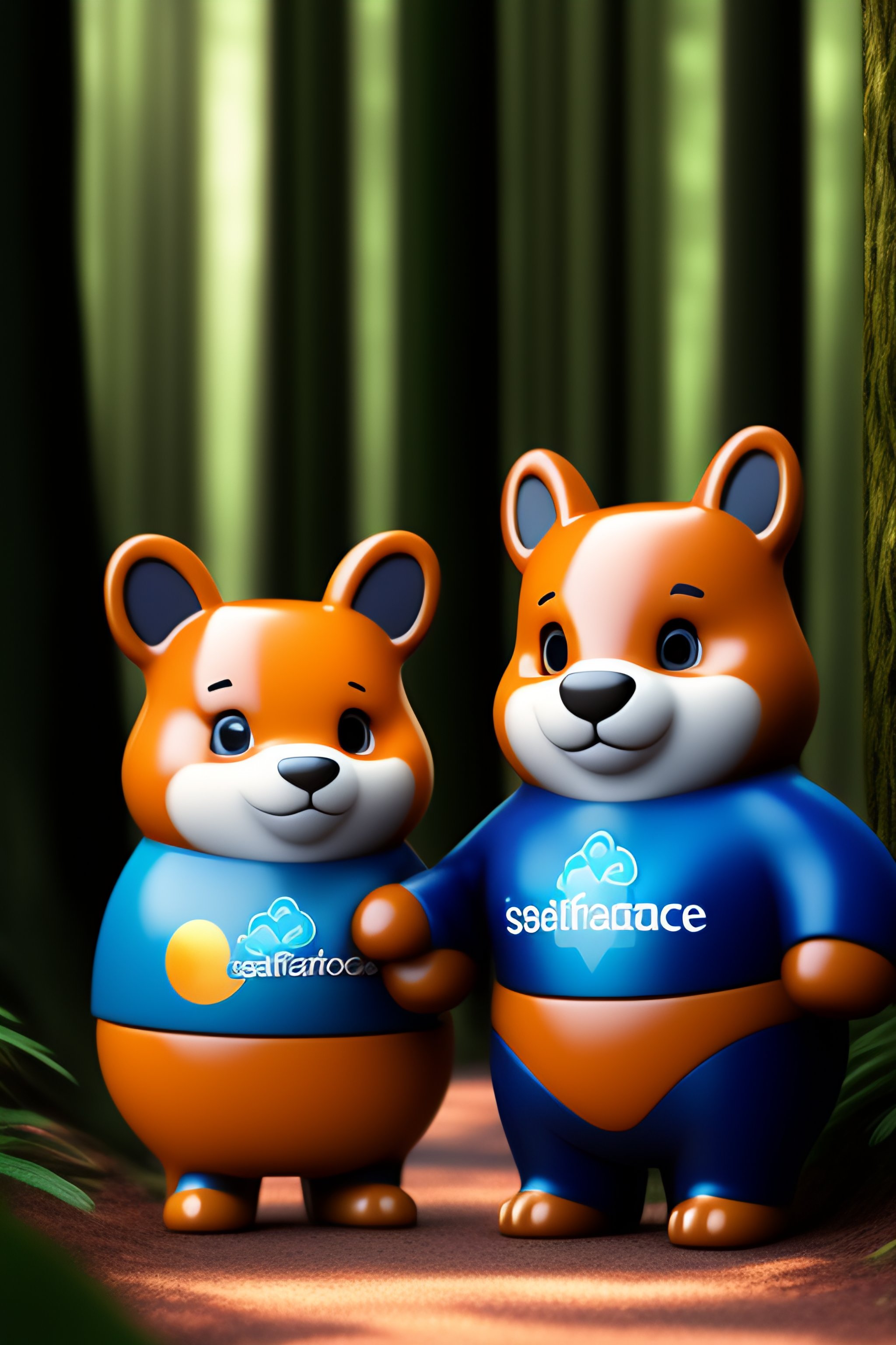 Salesforce mascots in a forest