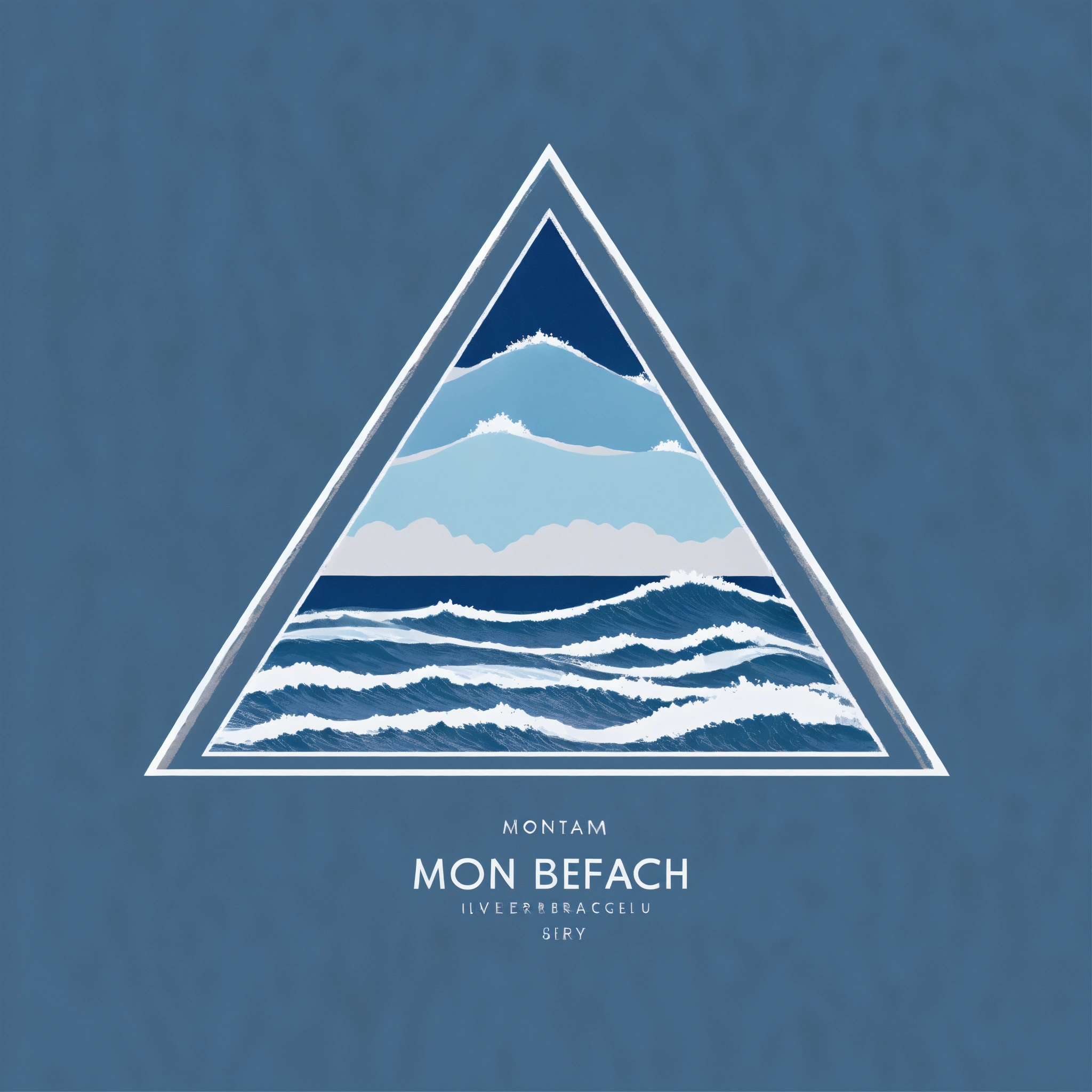 Logo16k, minimalist, flat vector design triangle, minimal handwritten mark blue color, white flower, big wave composed of flowers, text montabeach, with grey background, with photo merge, with photo effects, with cinema lighting
