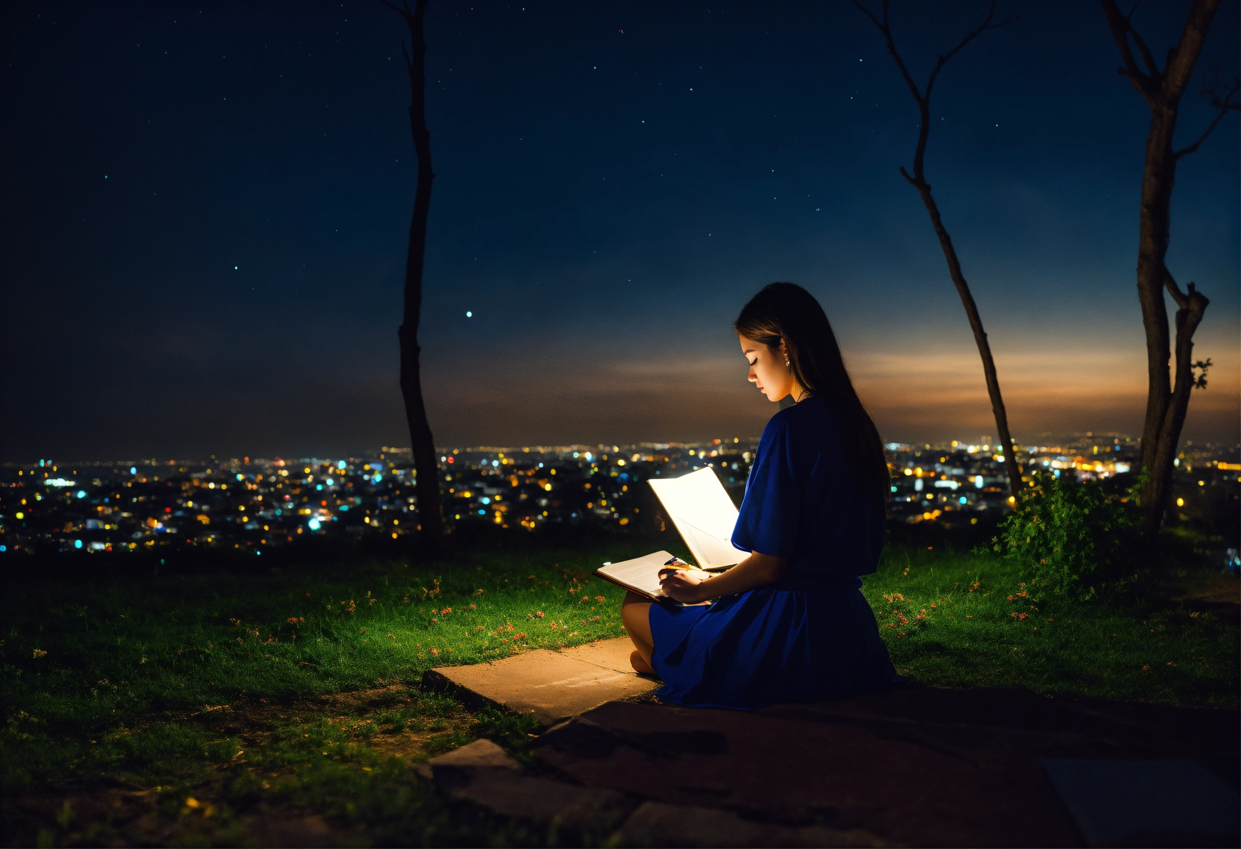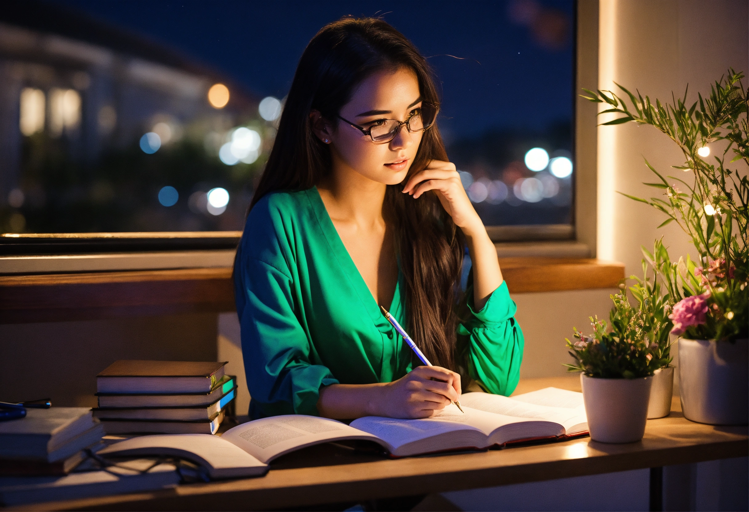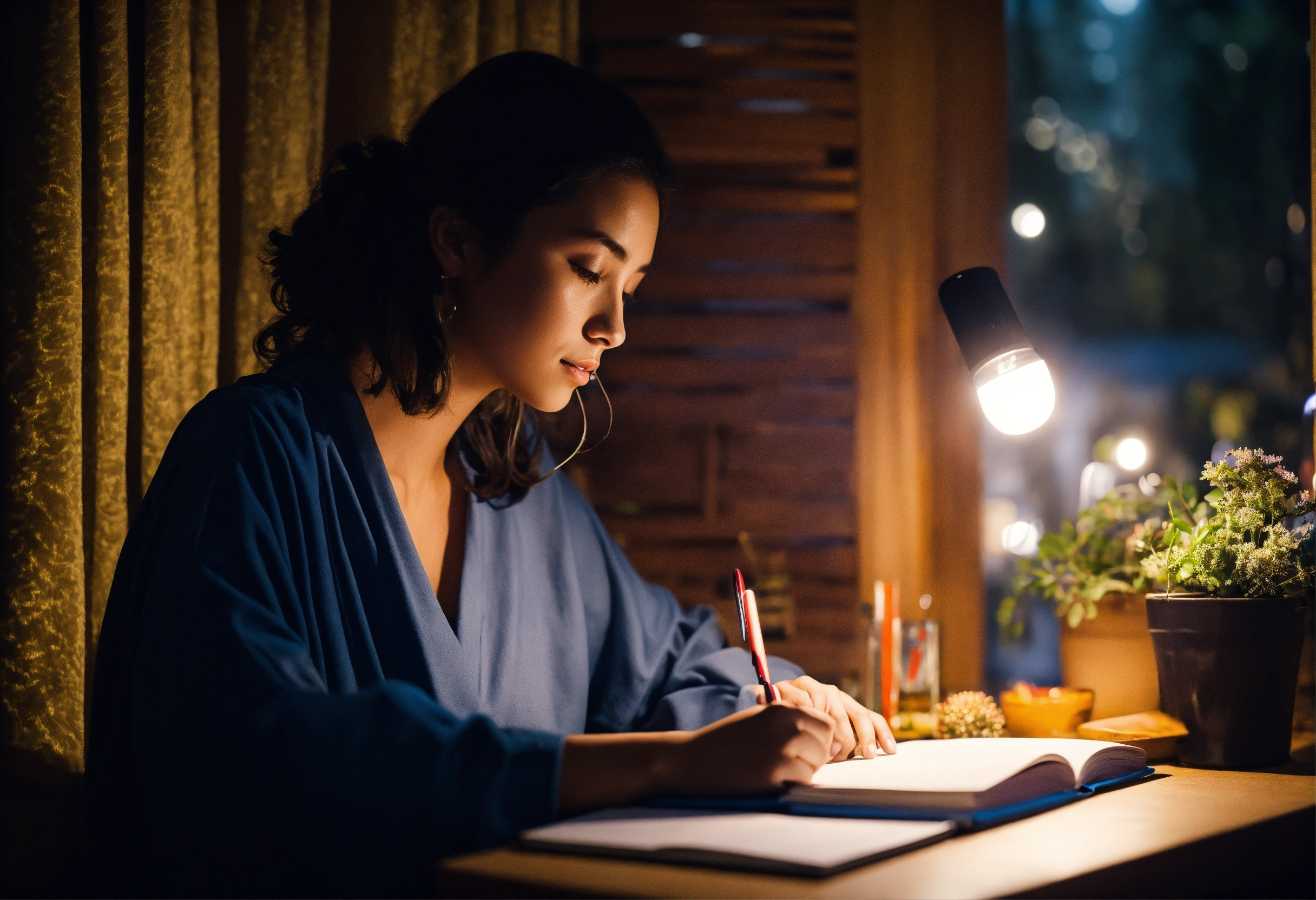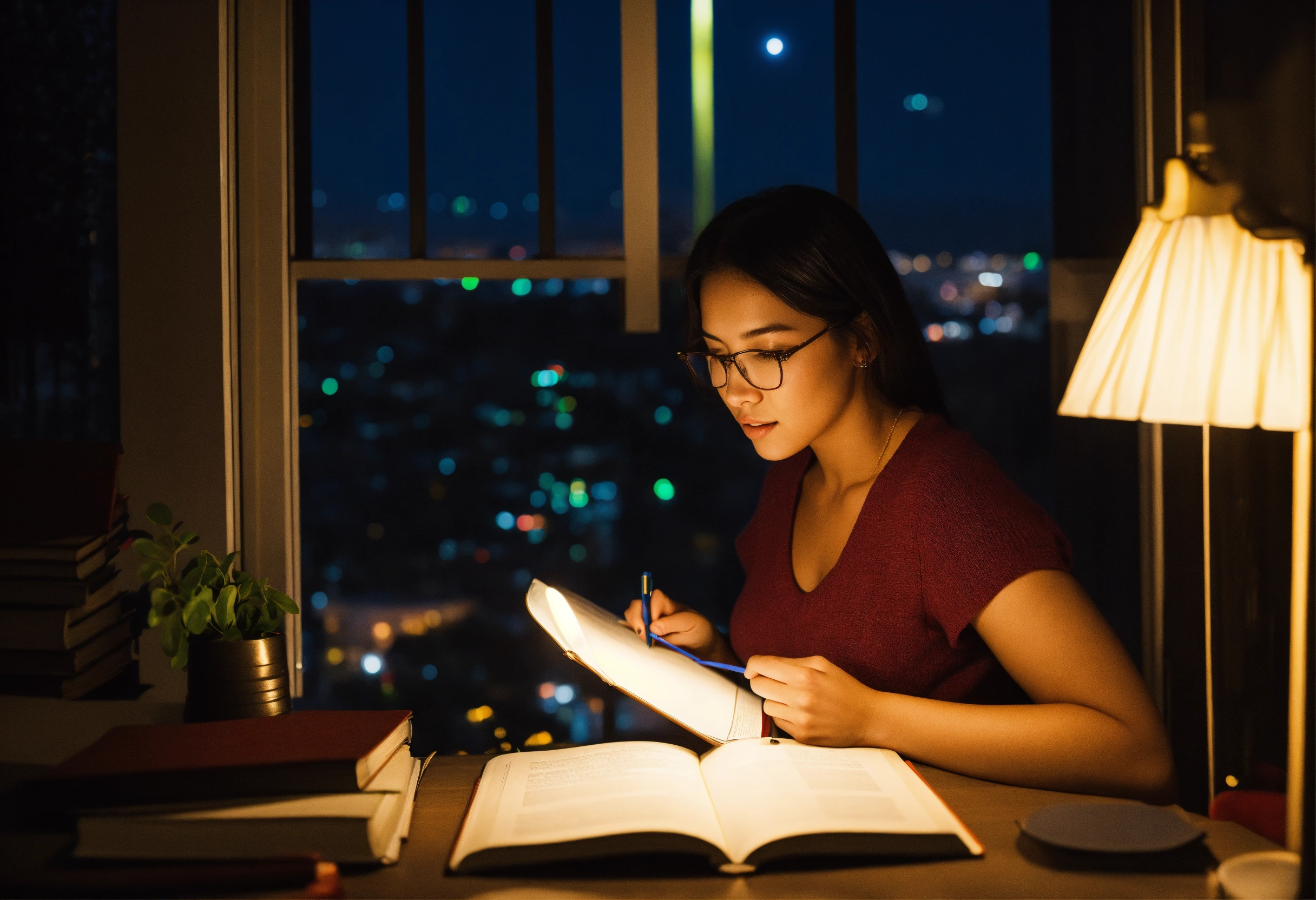 Woman studying at night