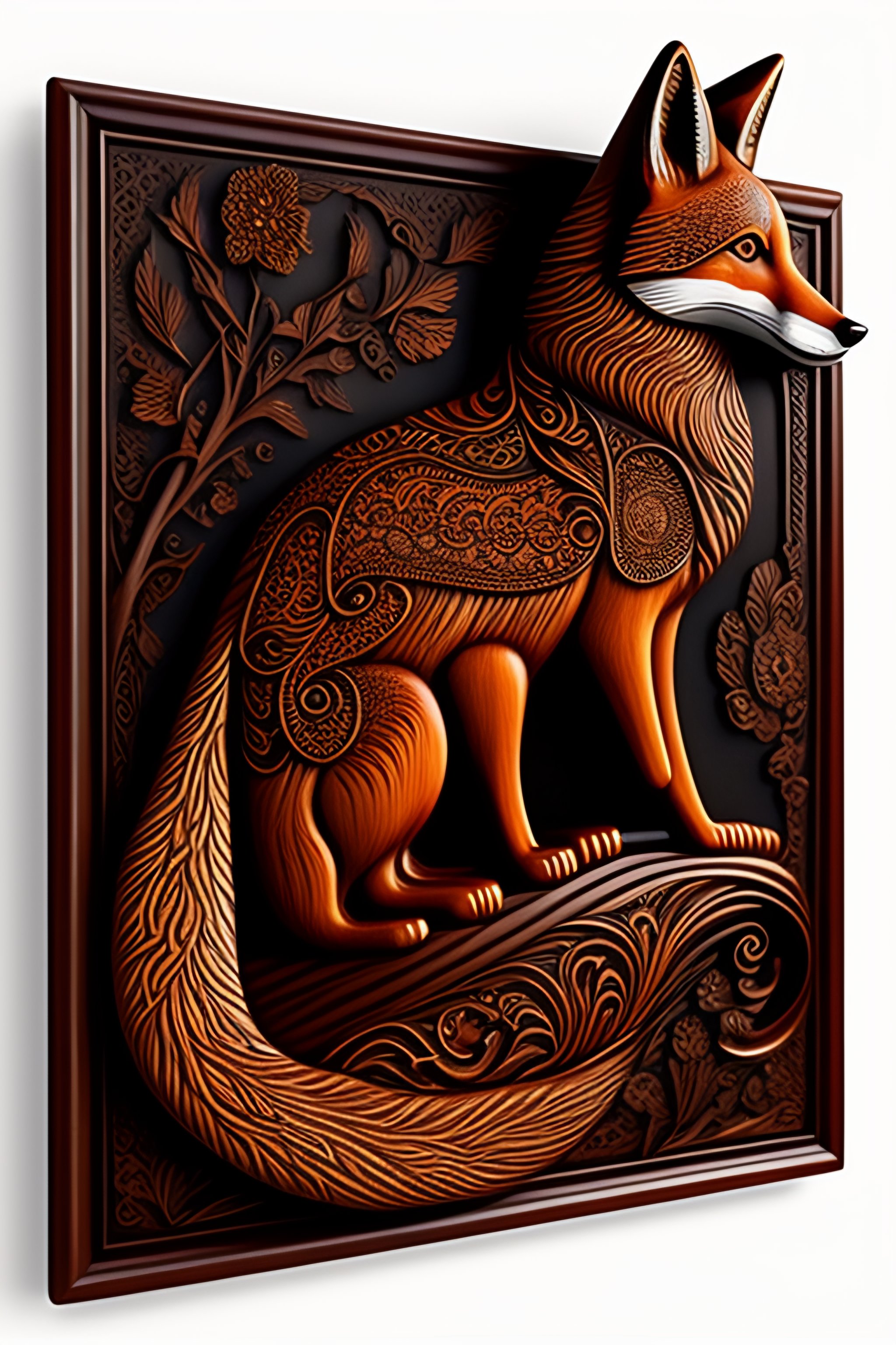 wood carving with intricate background detail
