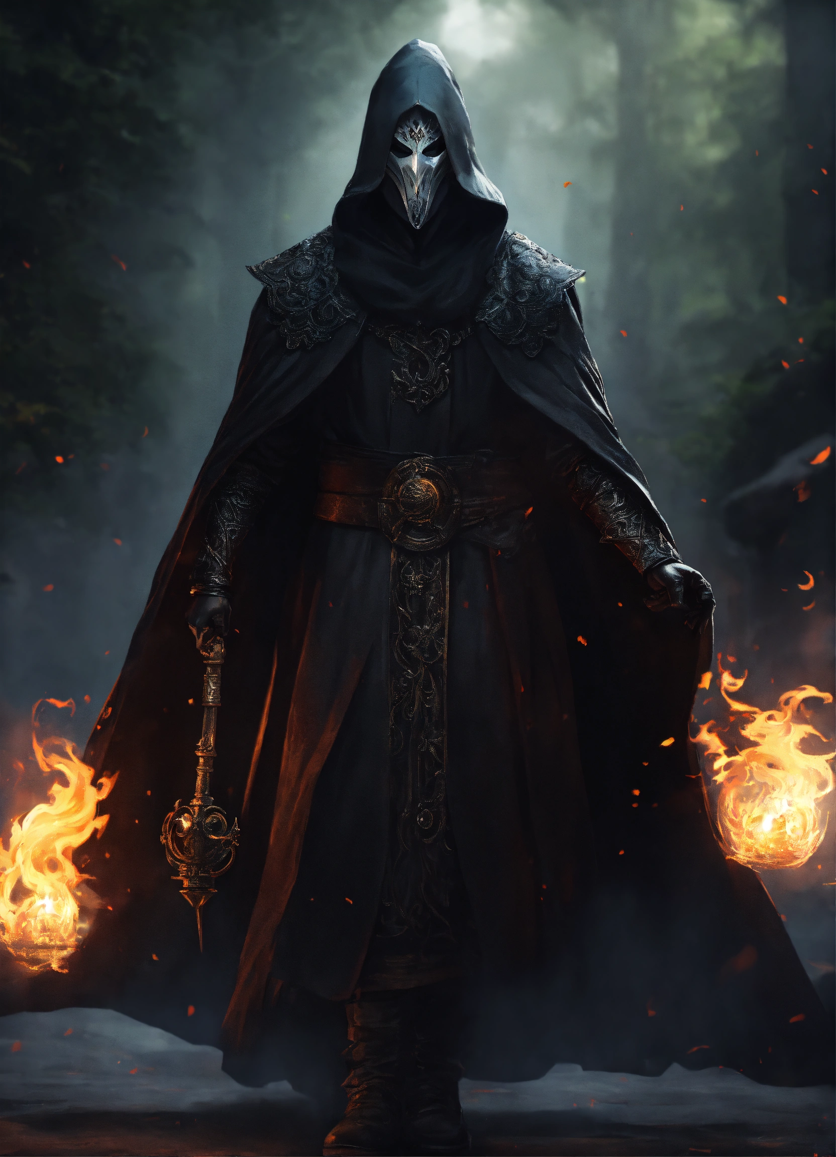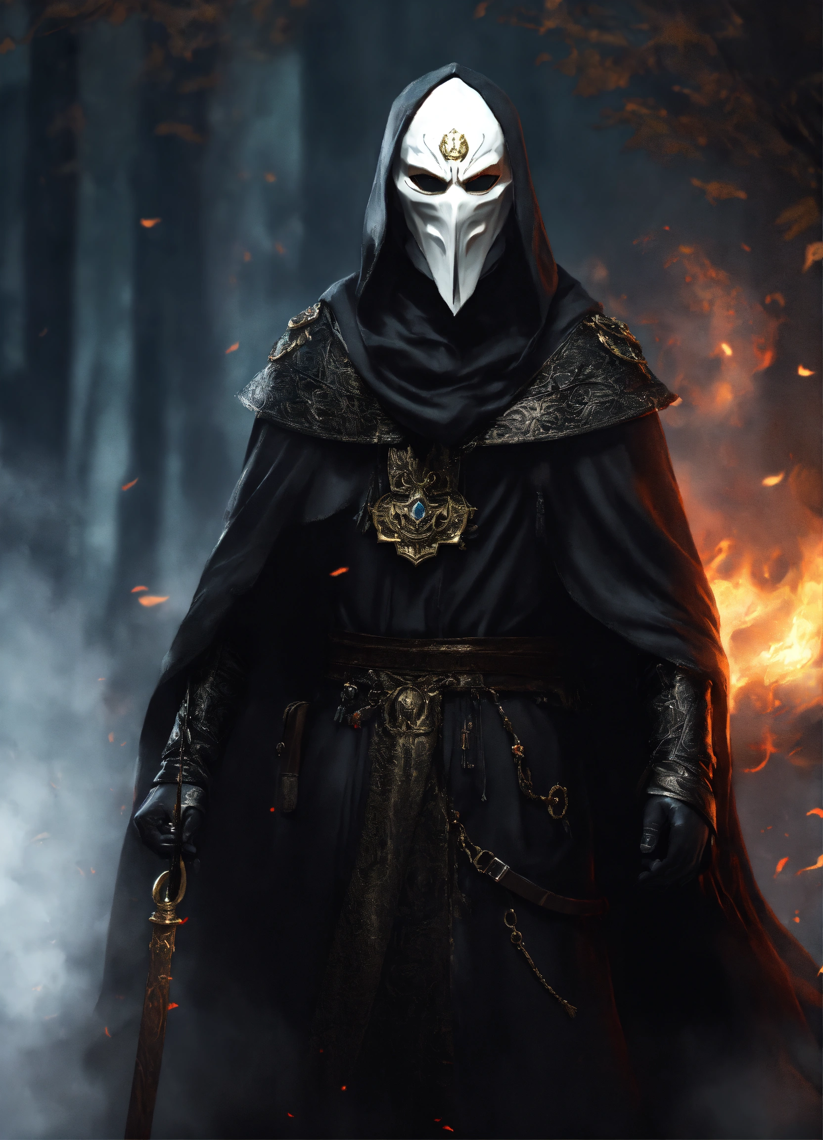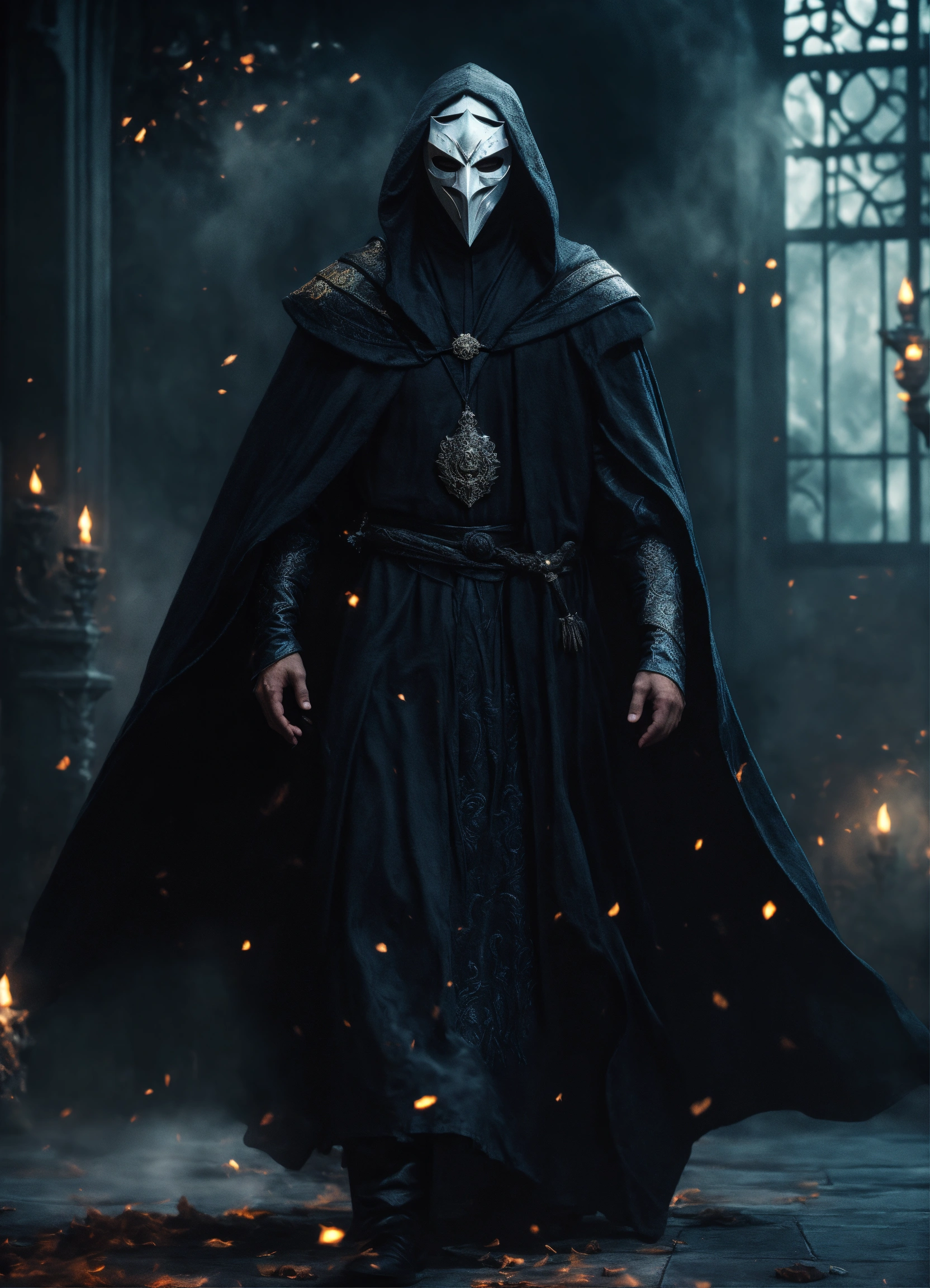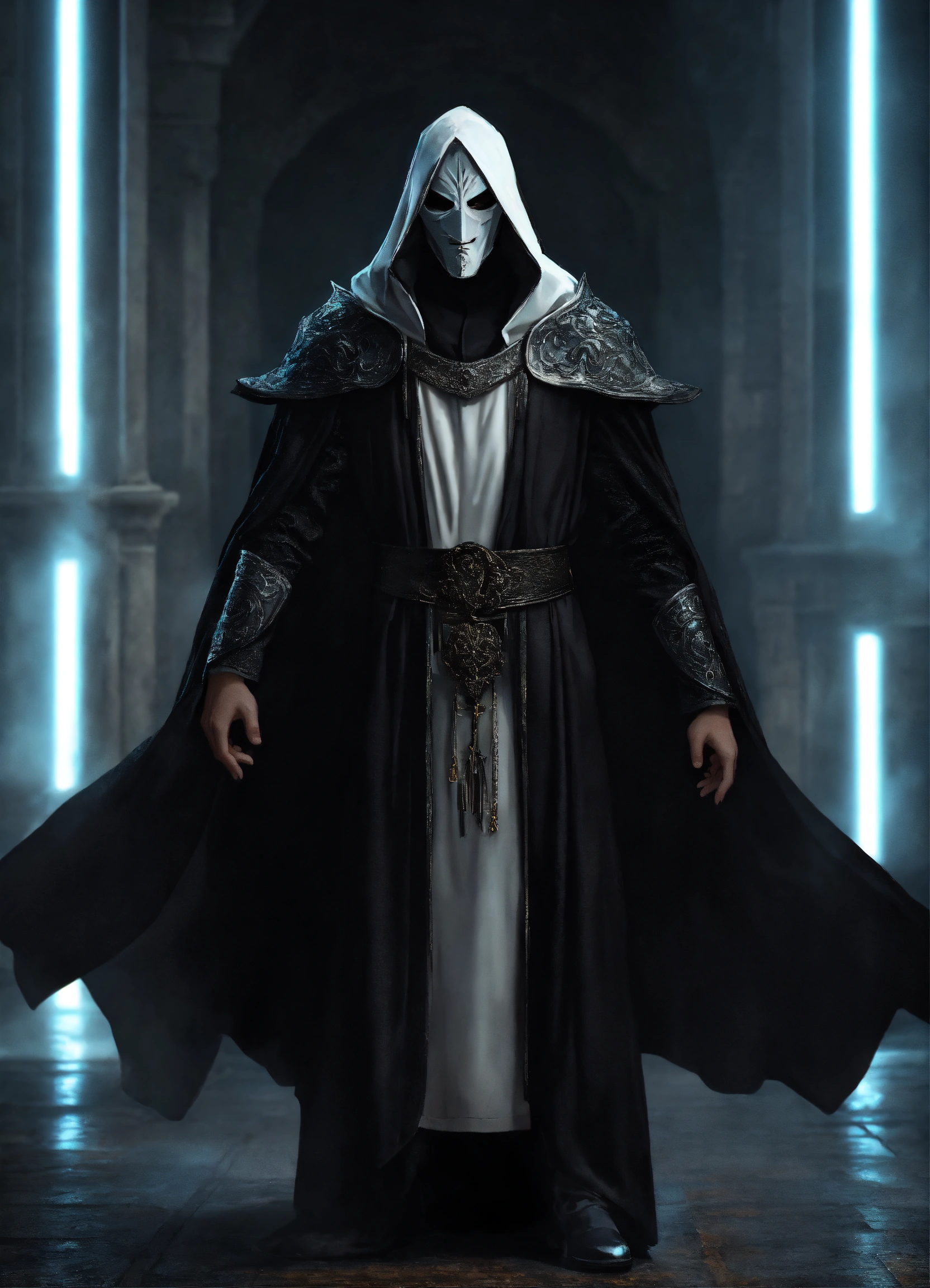 White masked man wearing black robes
