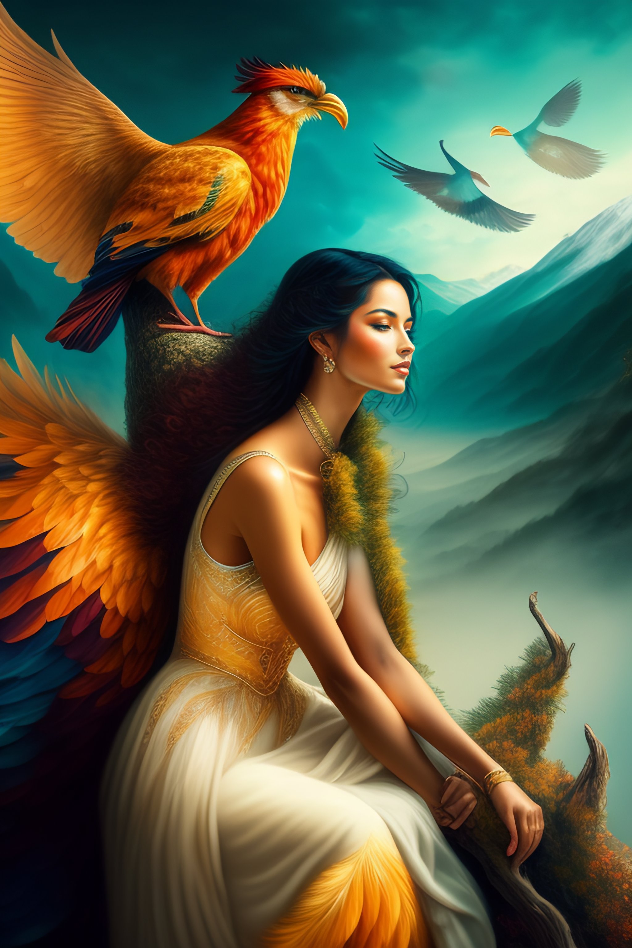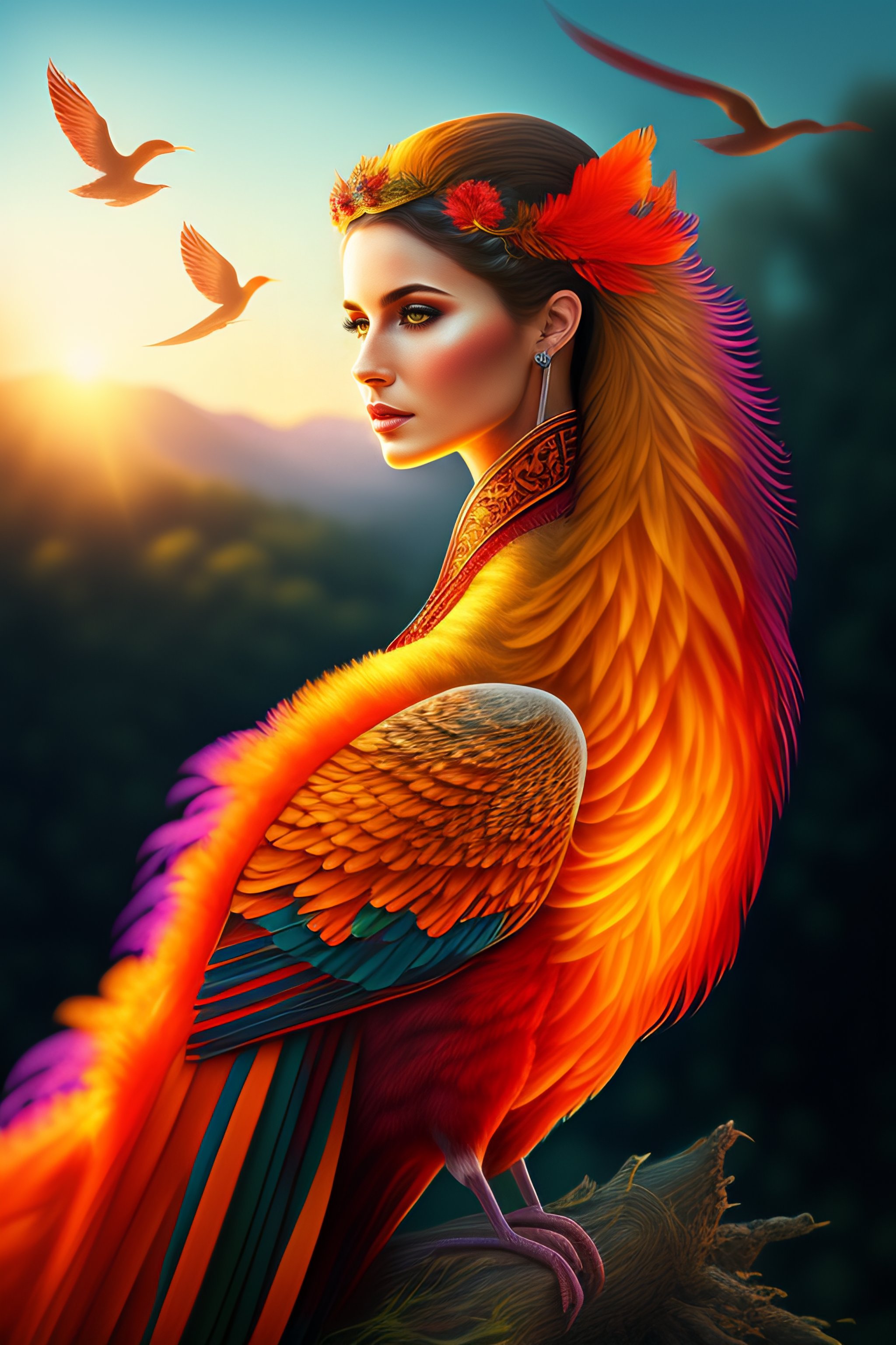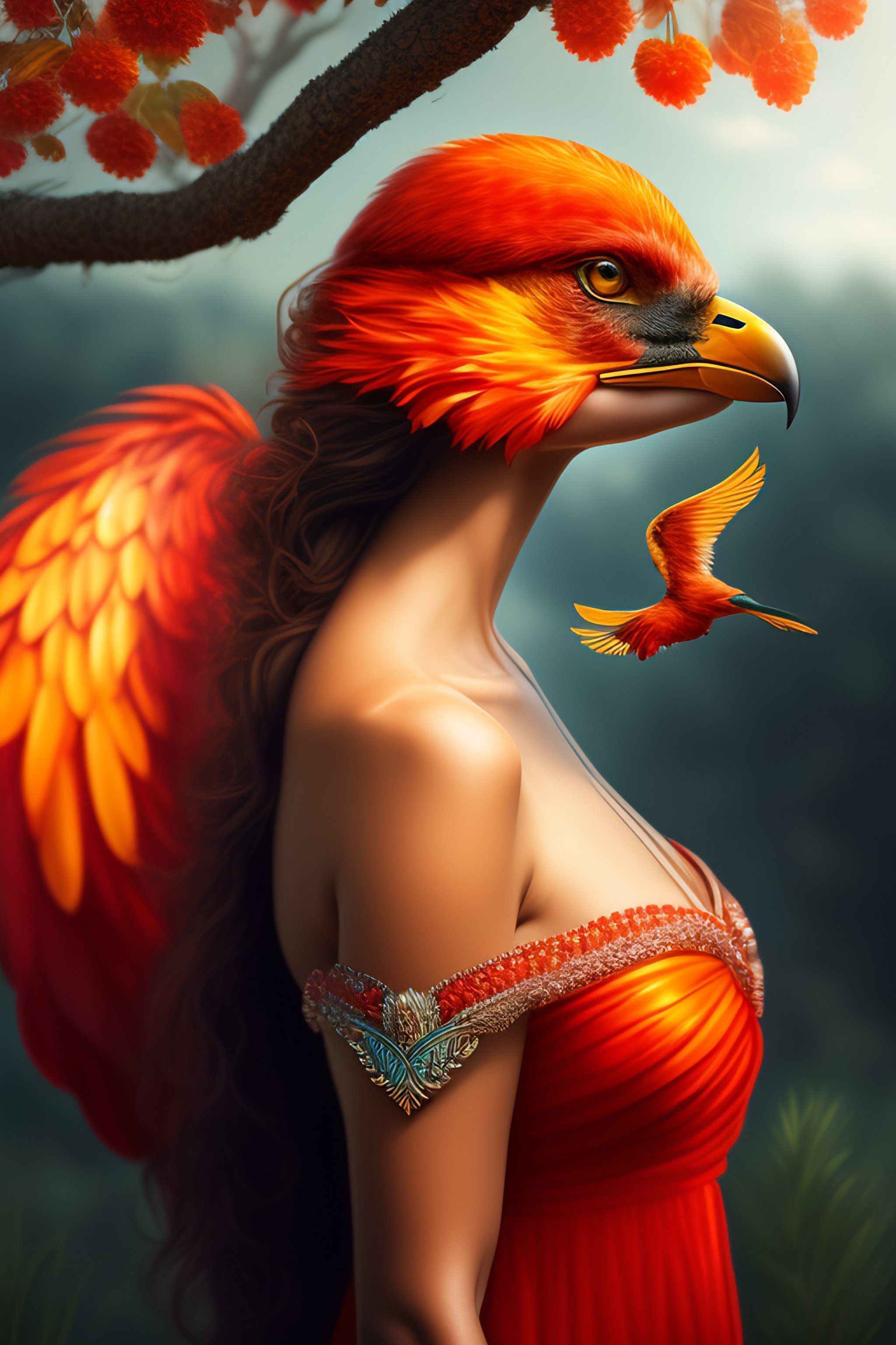 woman in the form of a phoenix bird