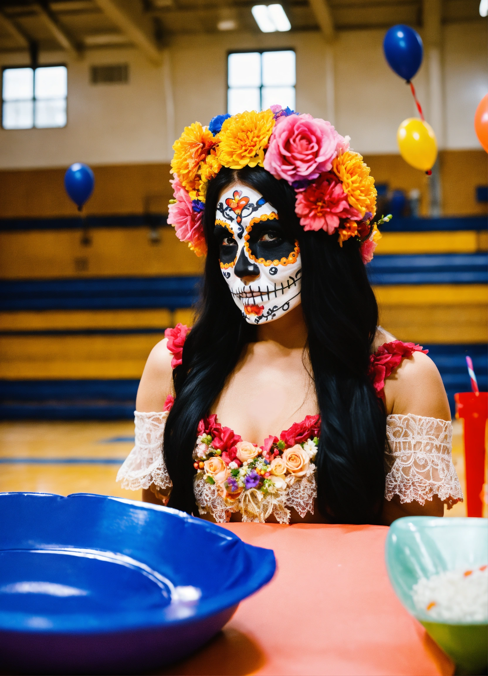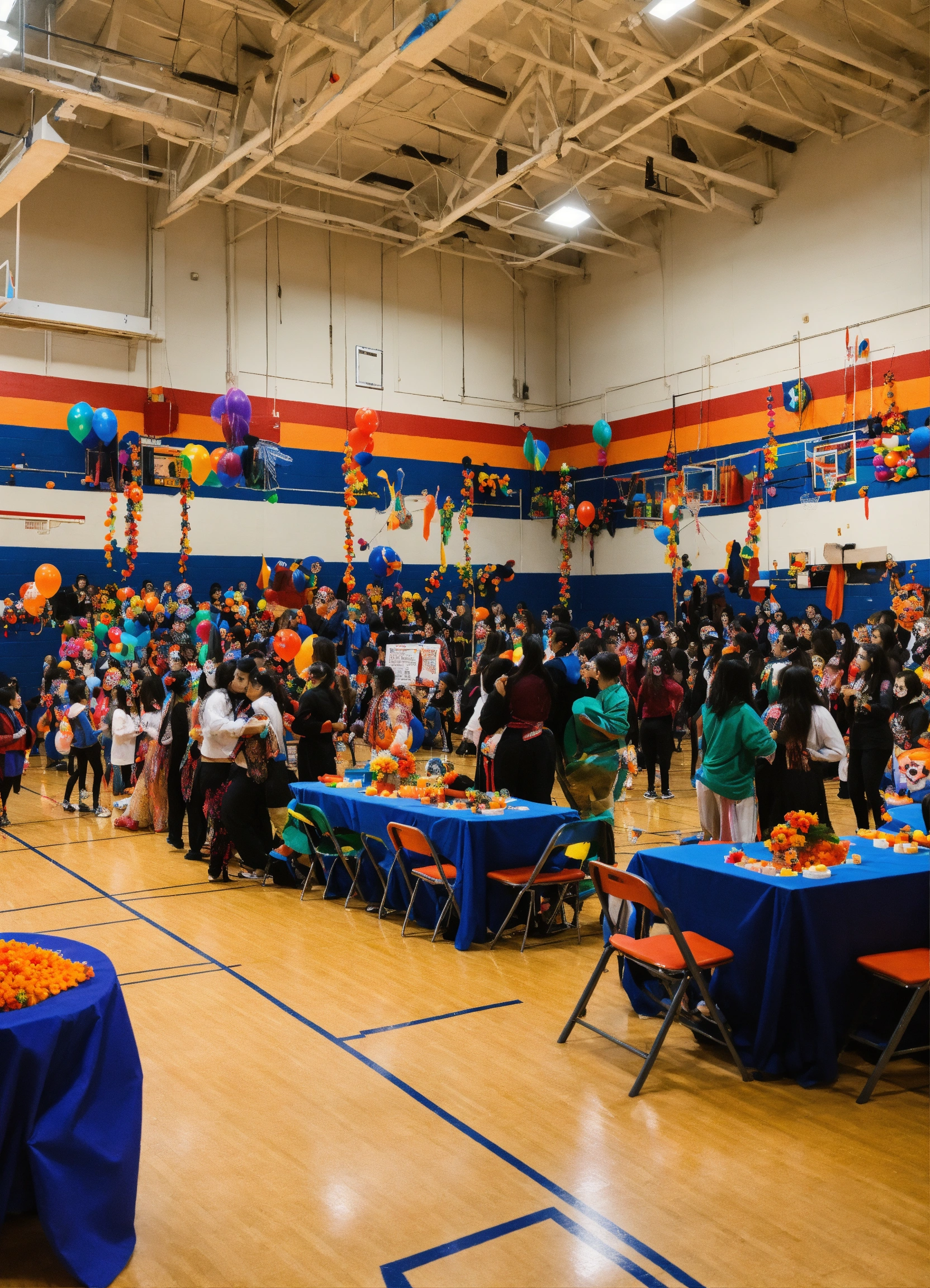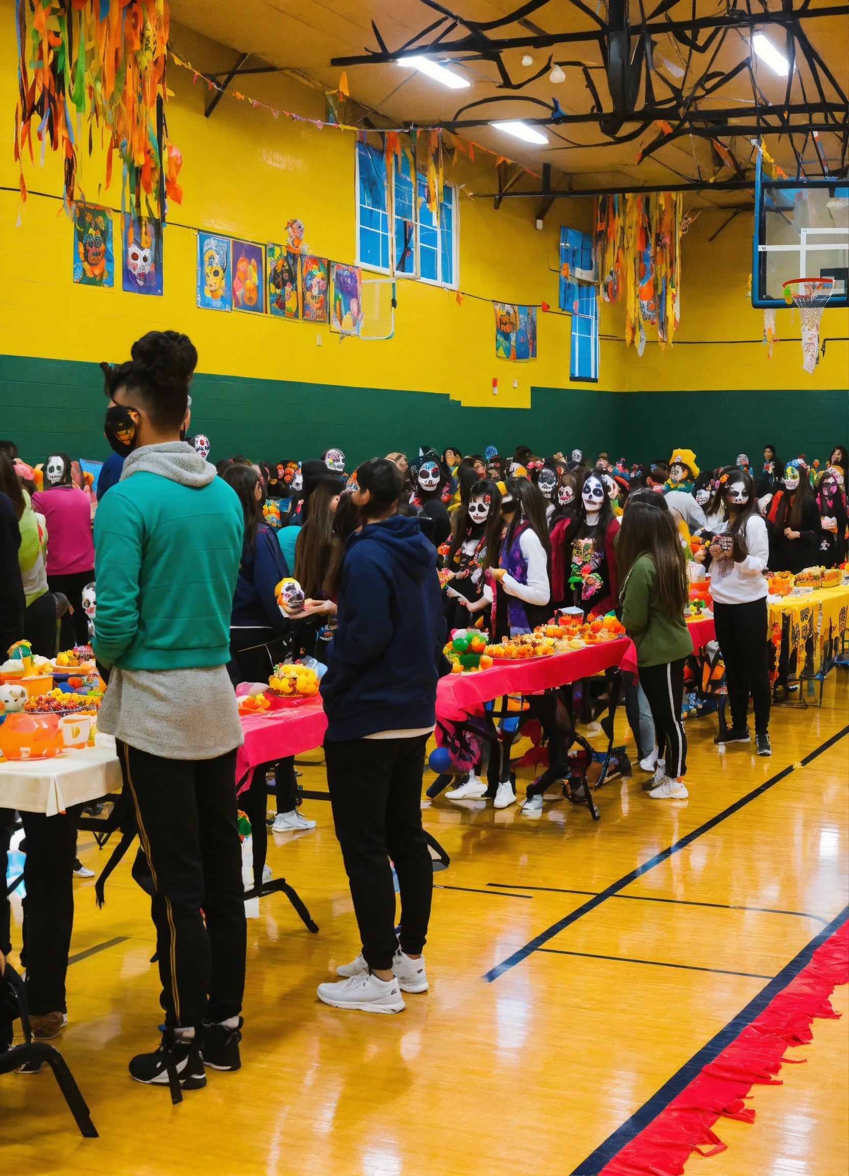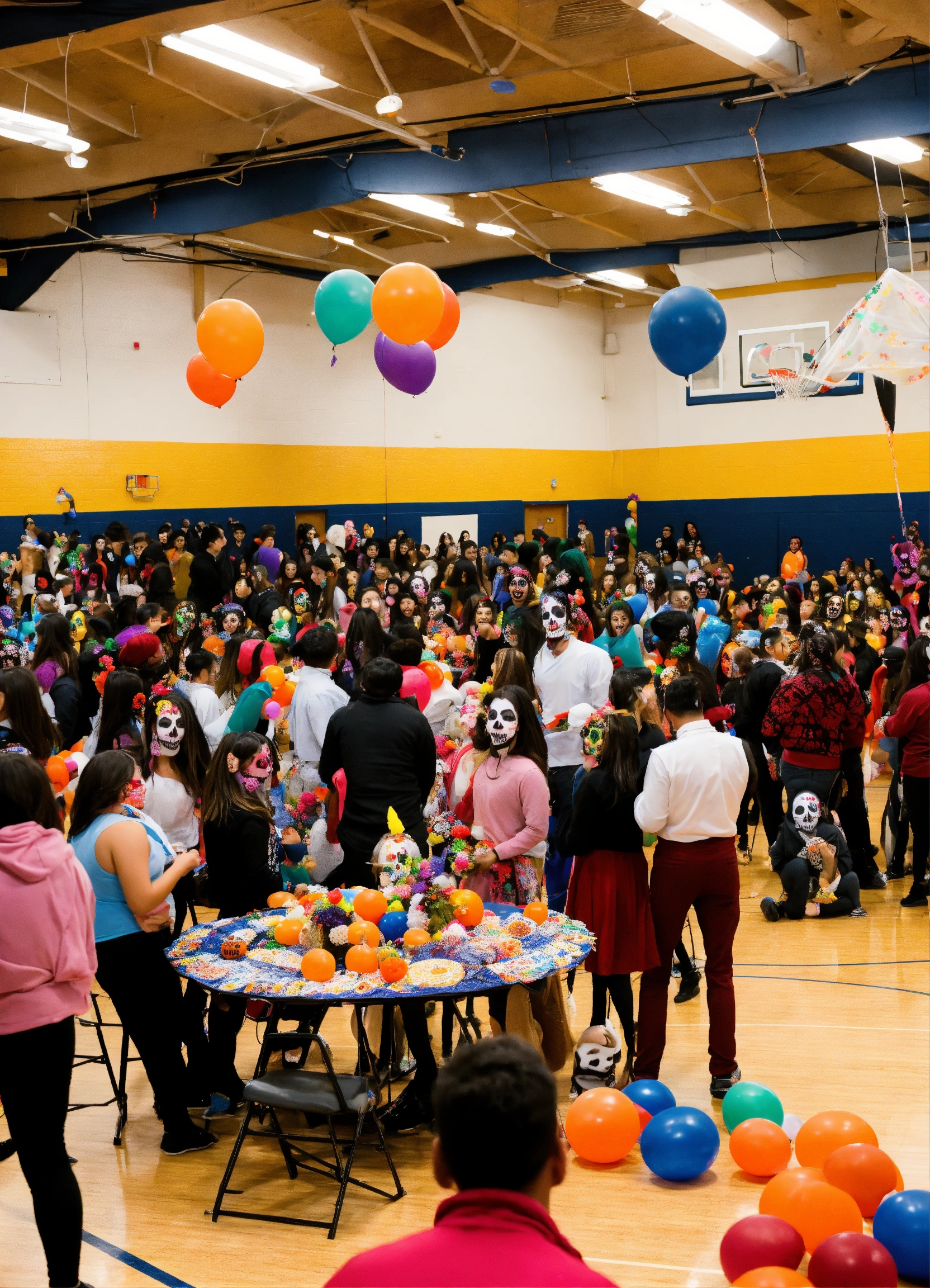 Photo of a día de muertos party in a high school gym