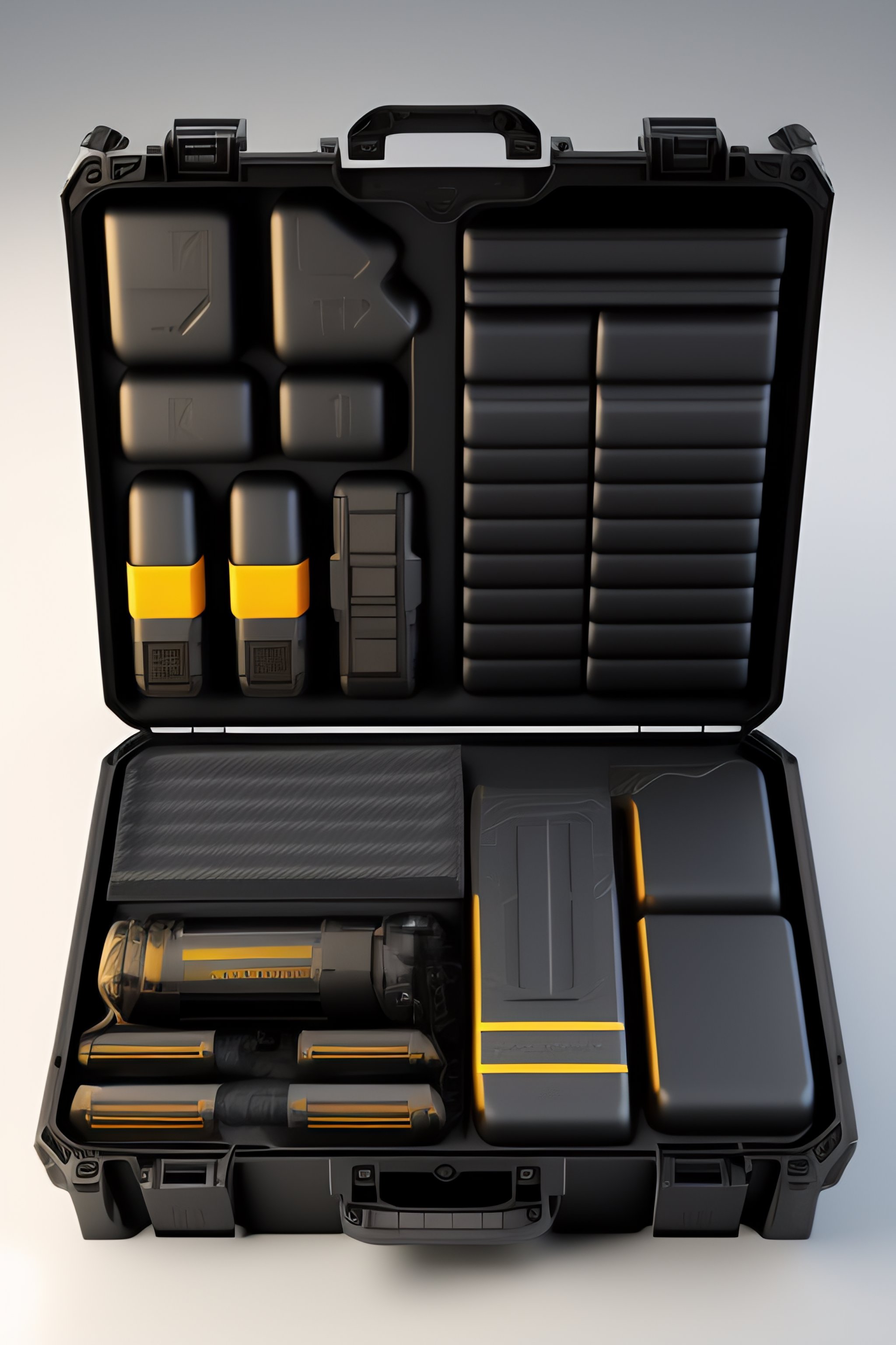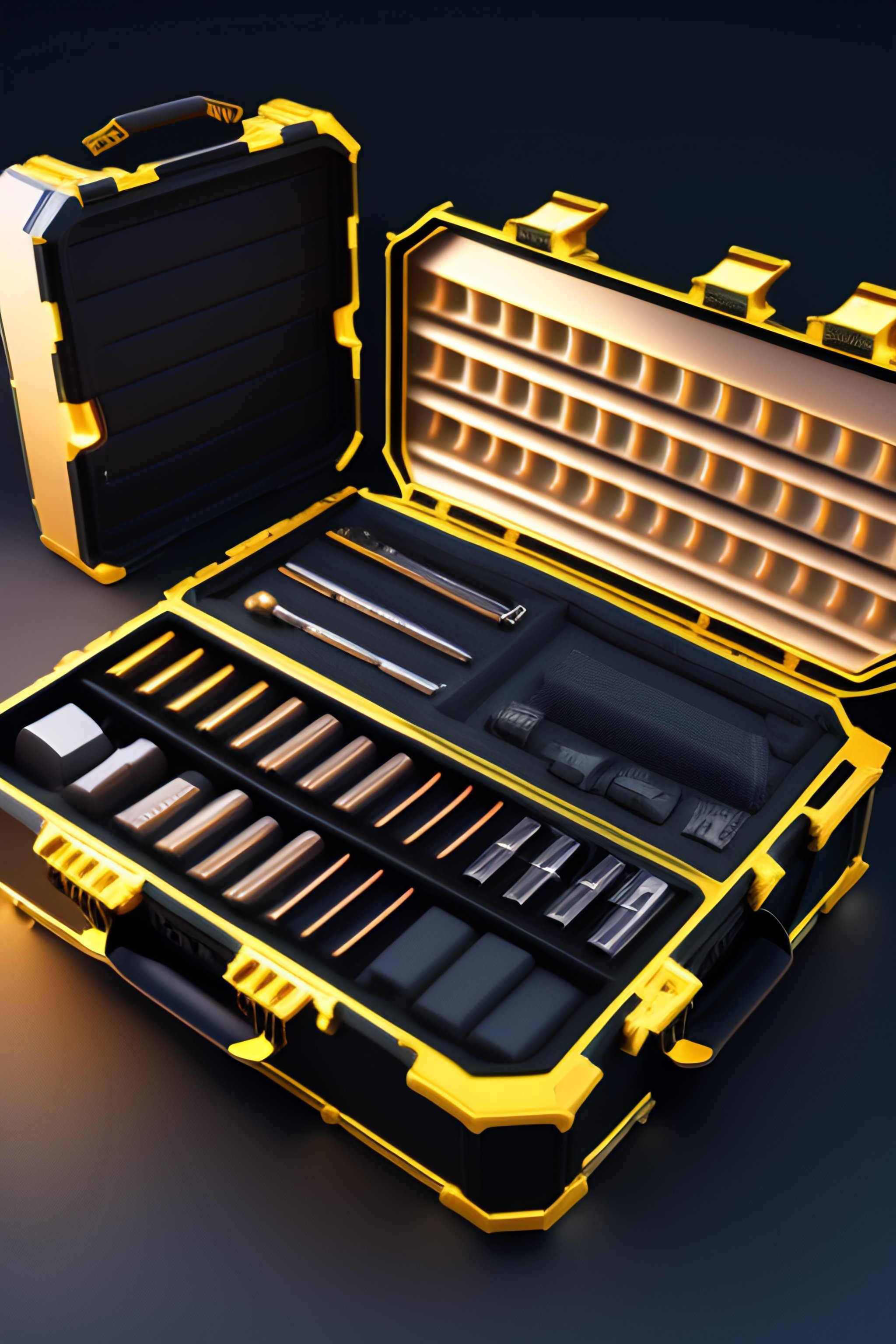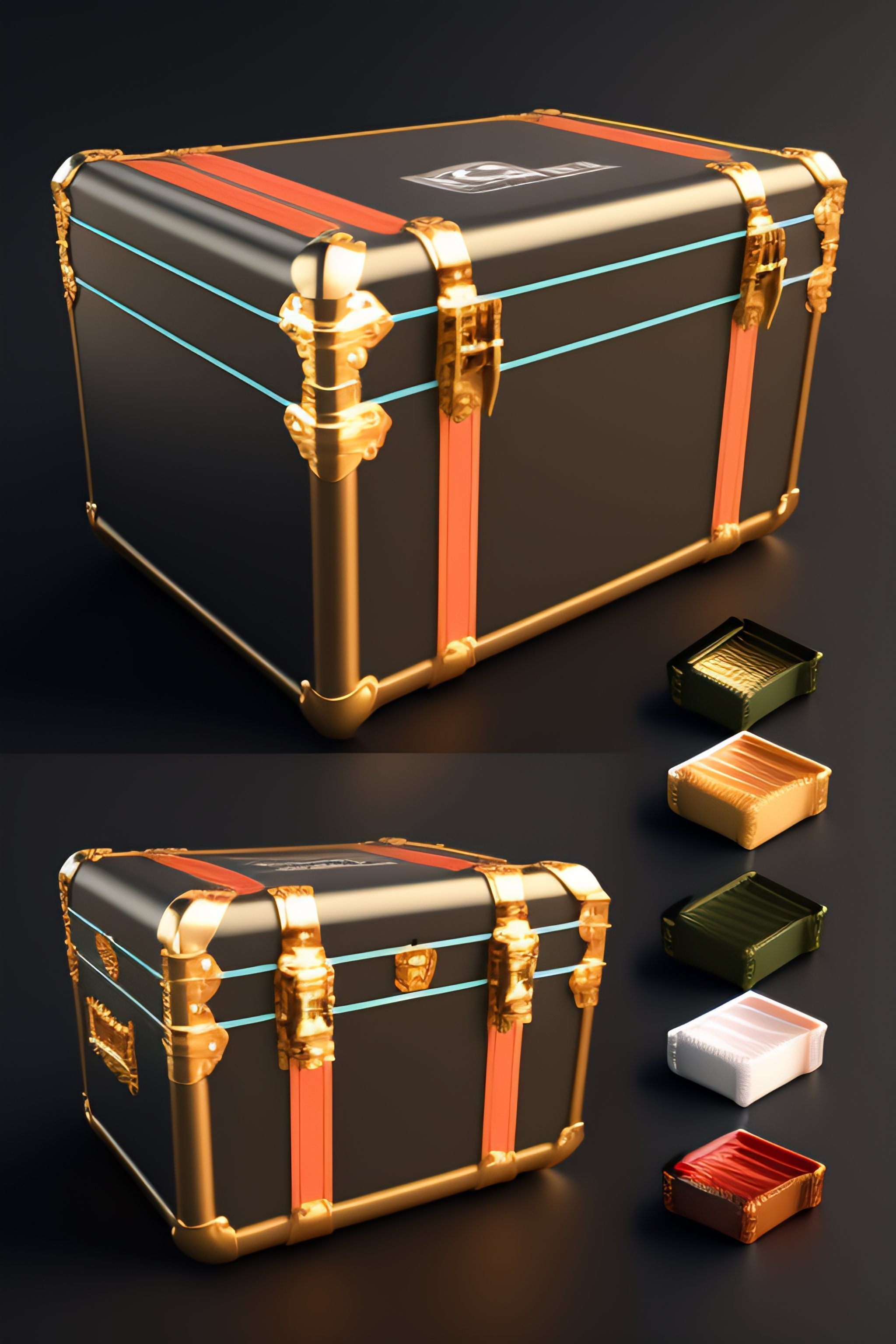Cs-go box case collection, c knolling layout, deconstruction, highly detailed, depth, lumen render, 8k