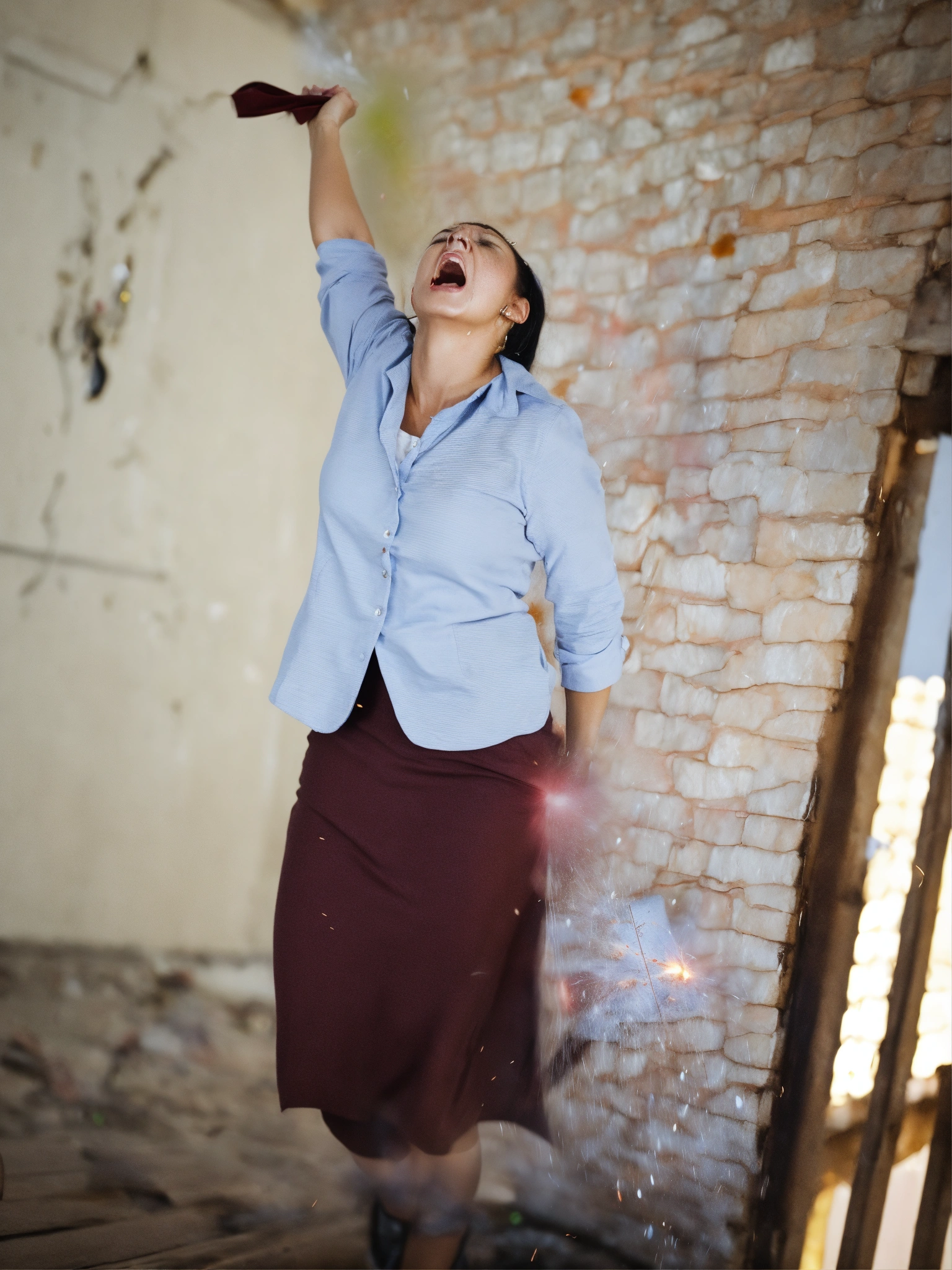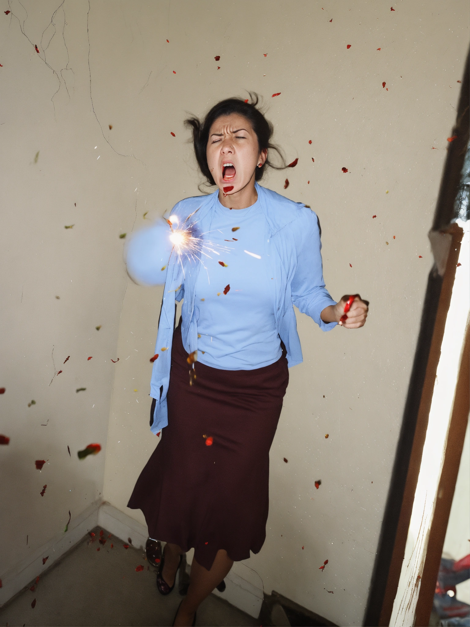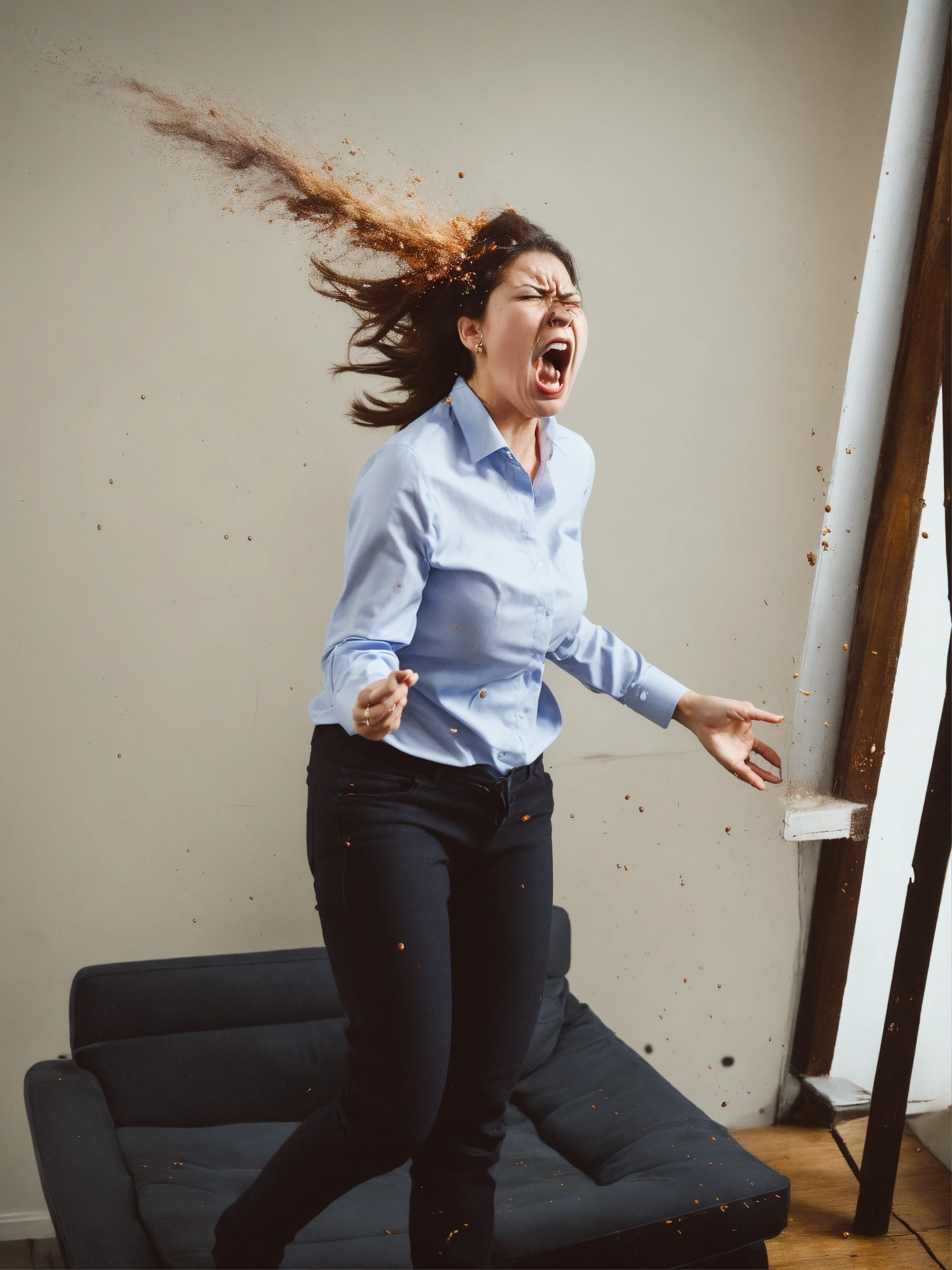 A woman getting very angry and exploding with anger
