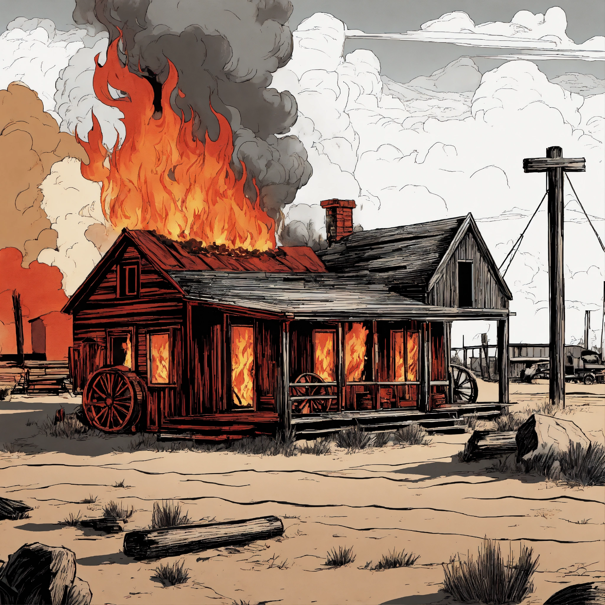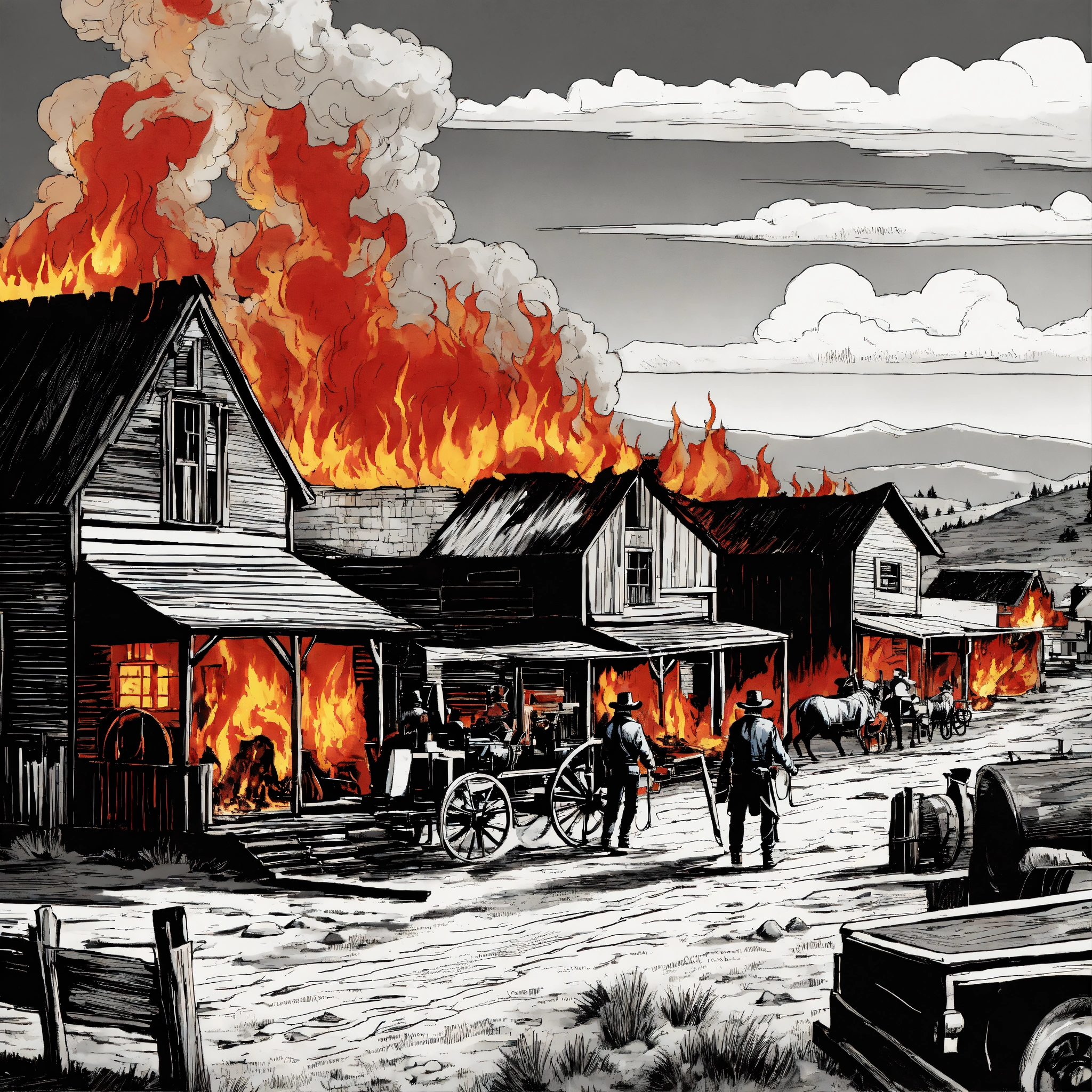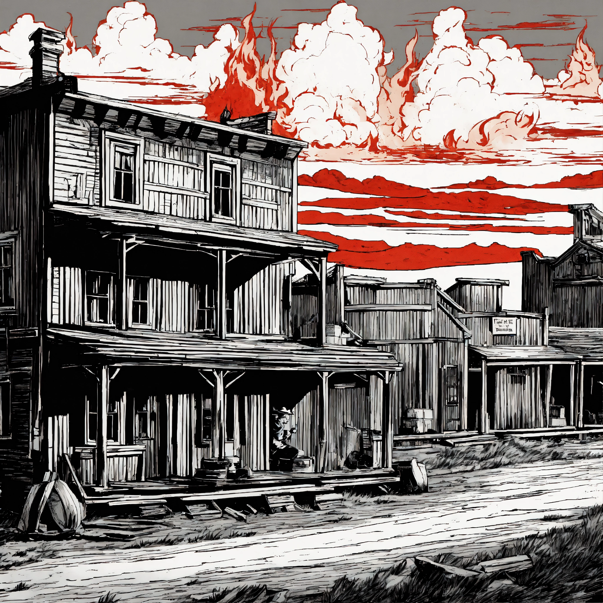A old farwest town burning in fire