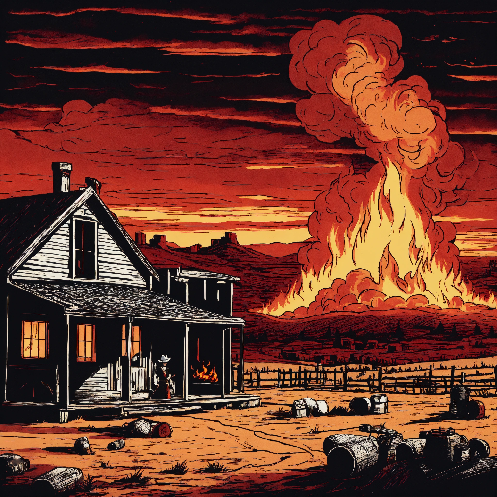 red flames cowboys classic comic style