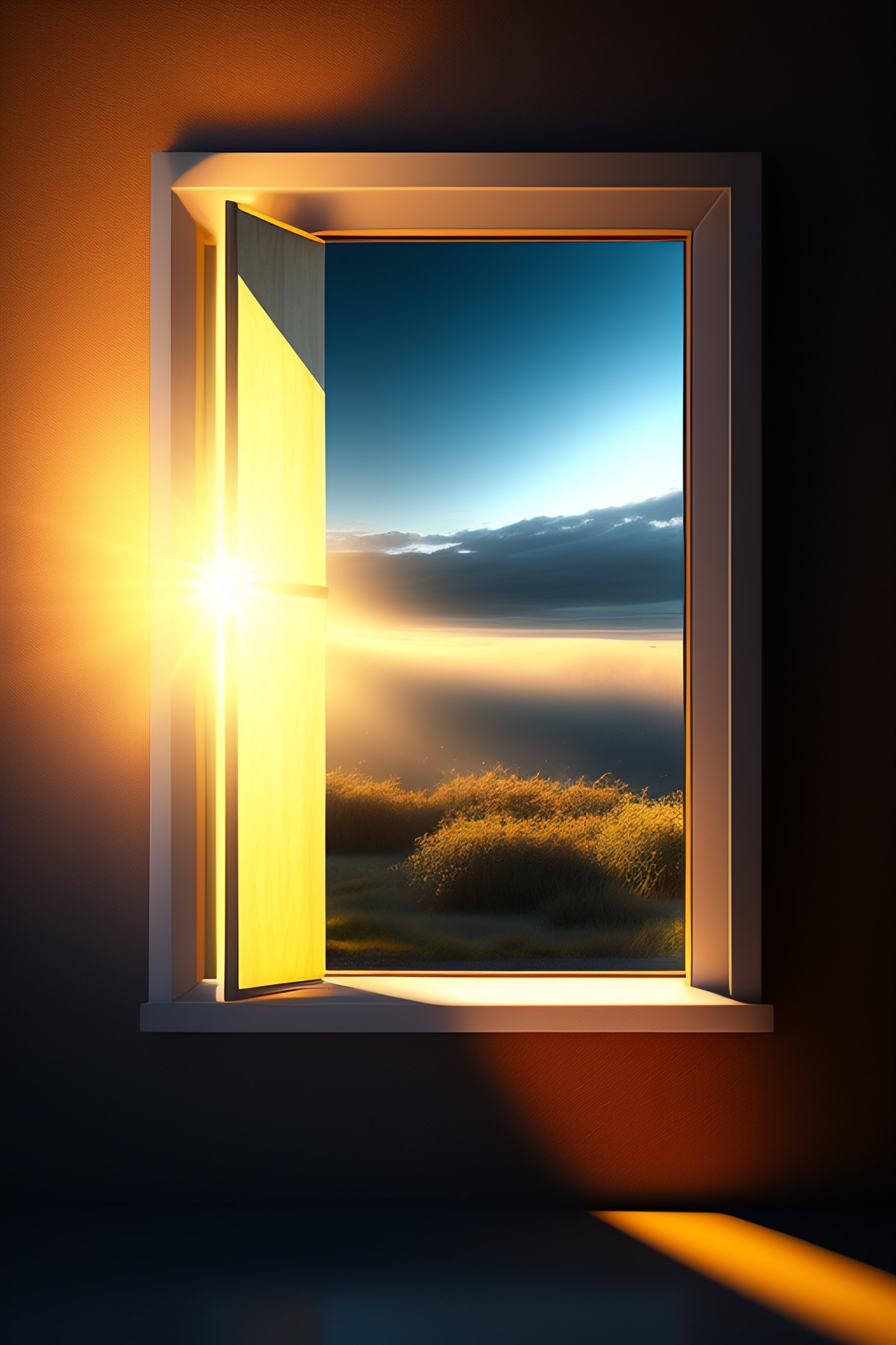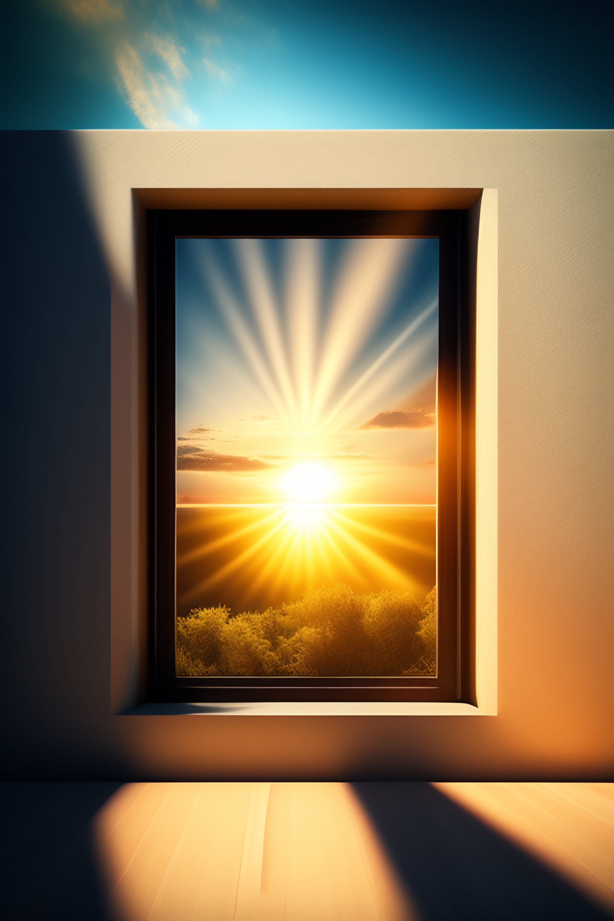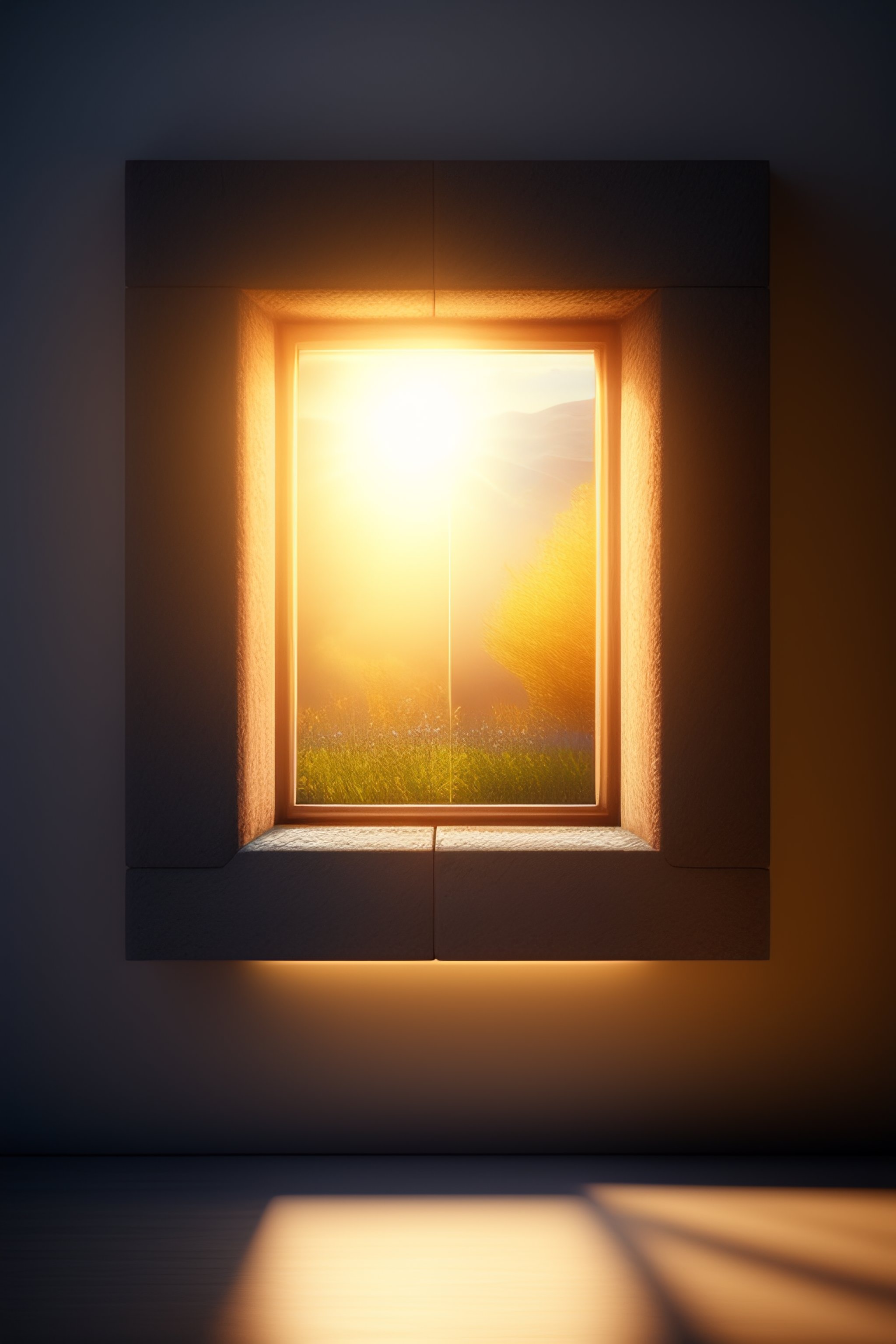Sunlight coming from a small square window on a wall