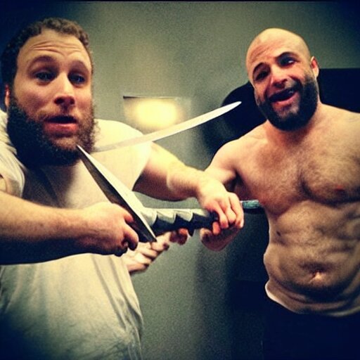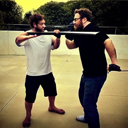 “ seth rogen sword fighting with joe rogan ”