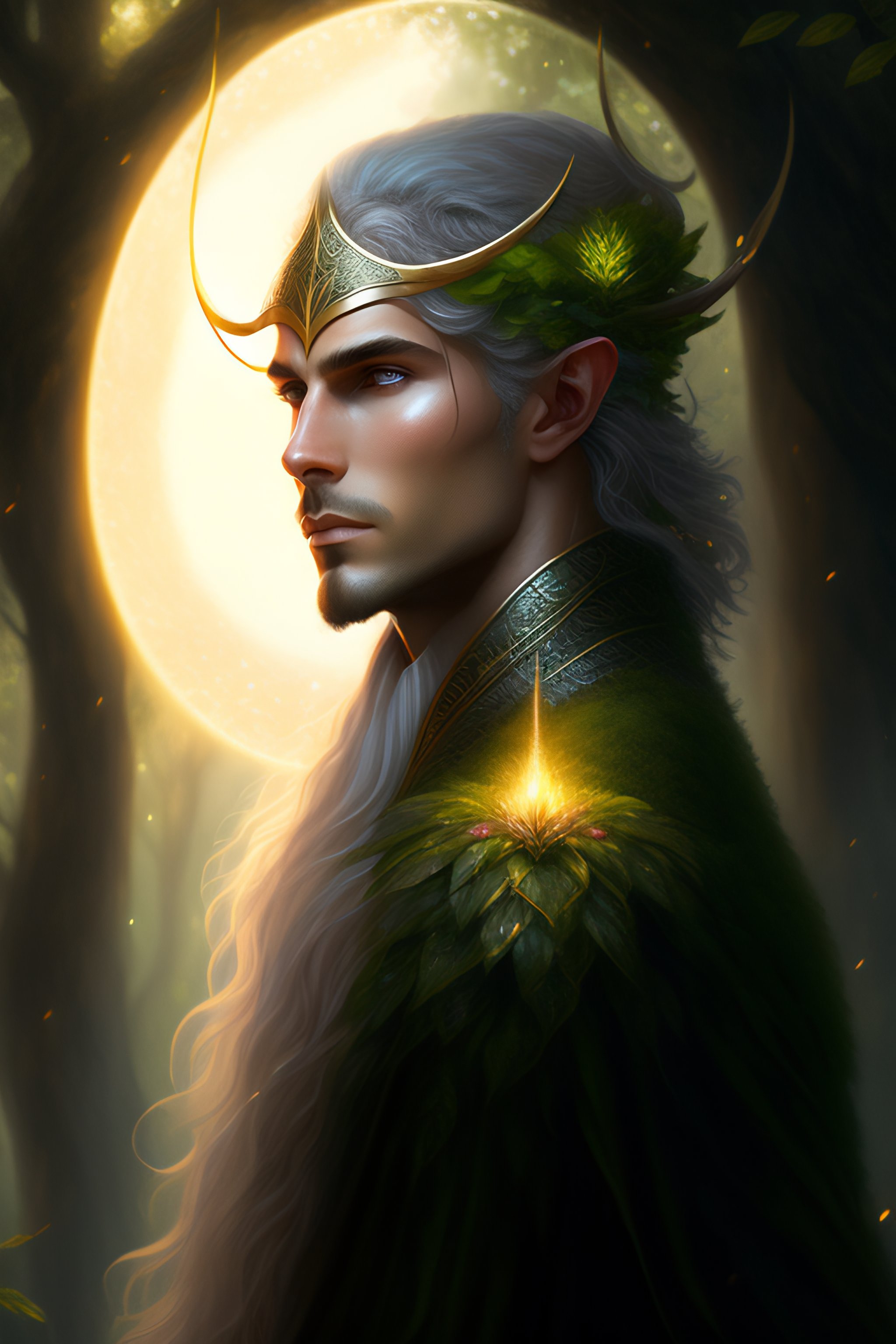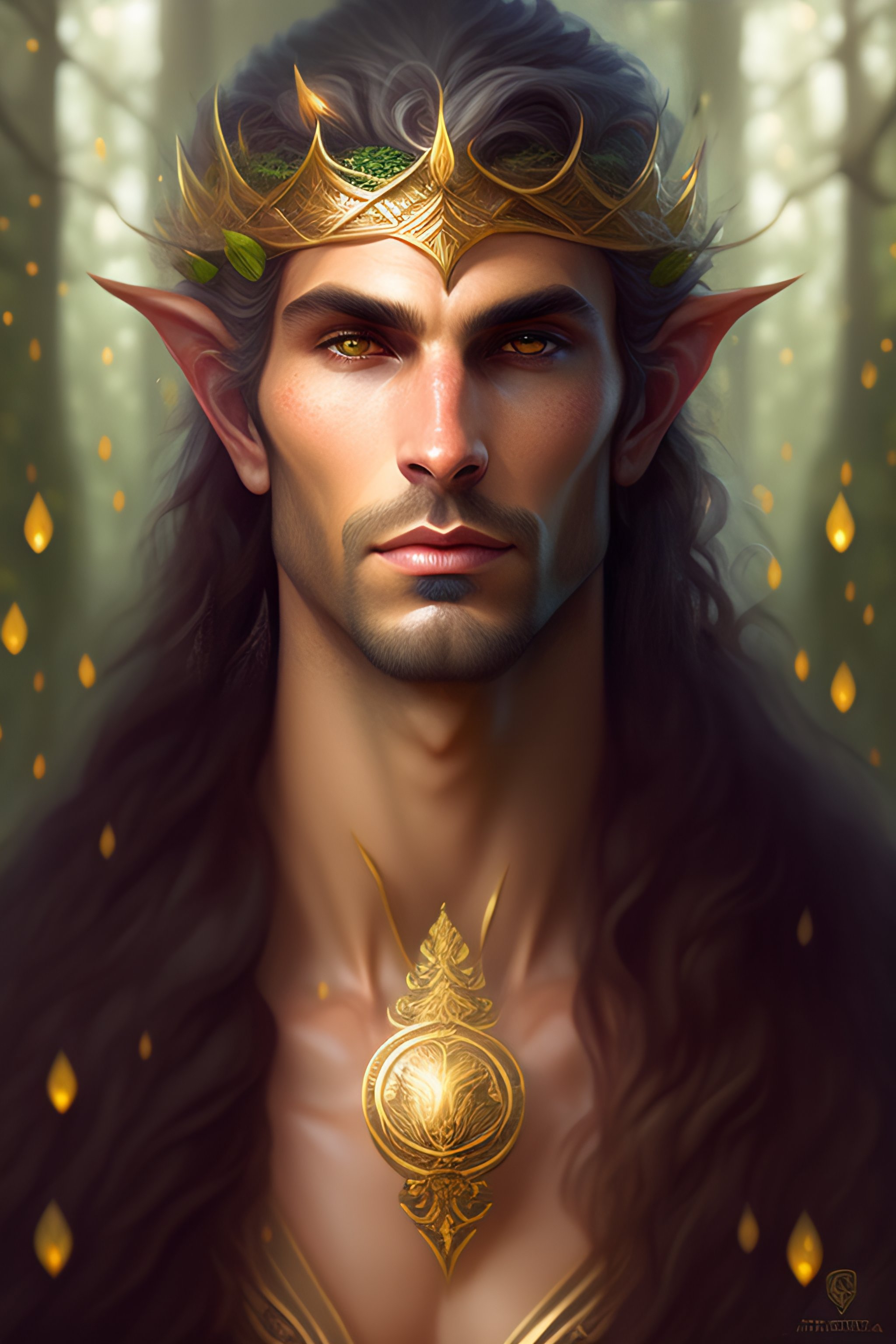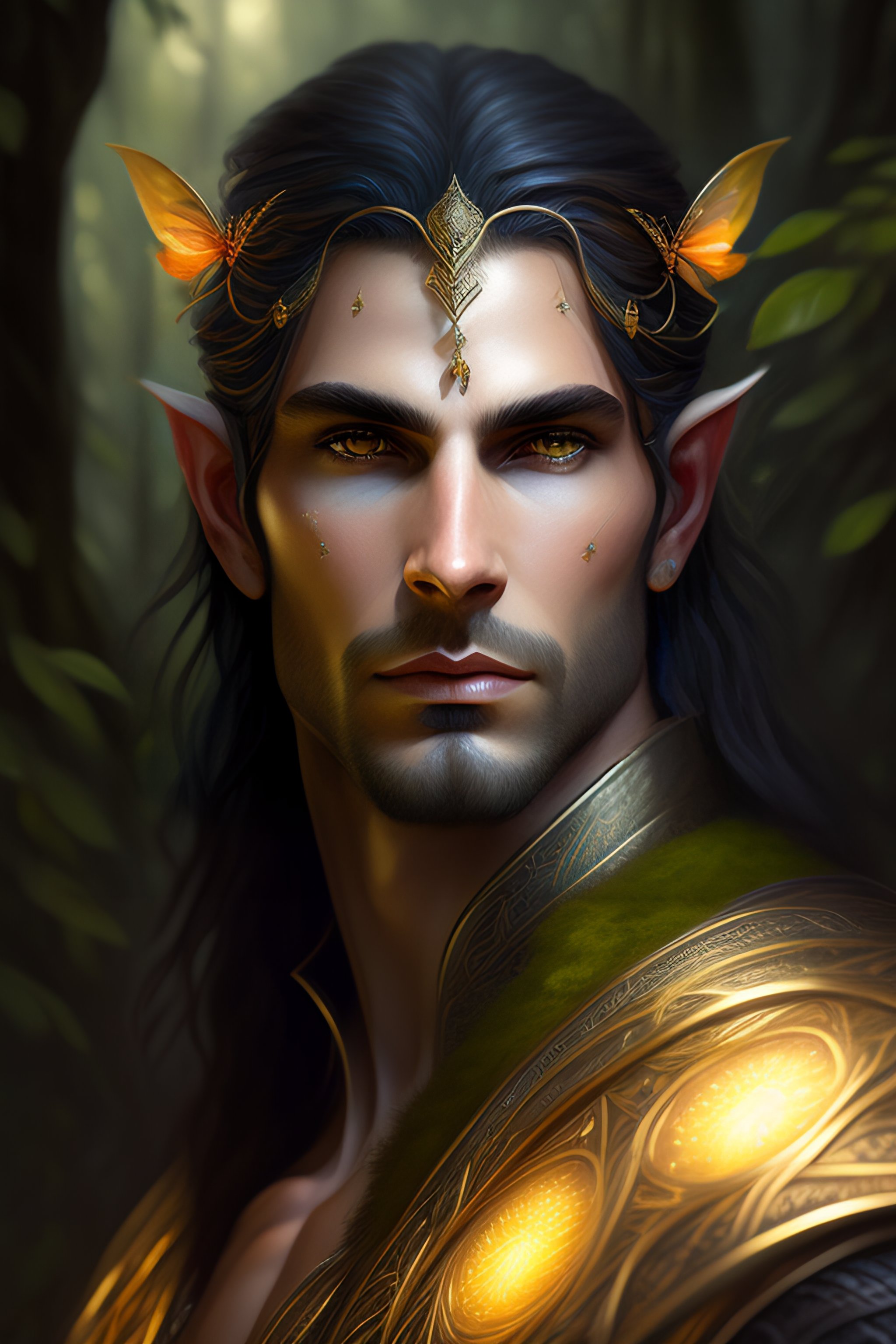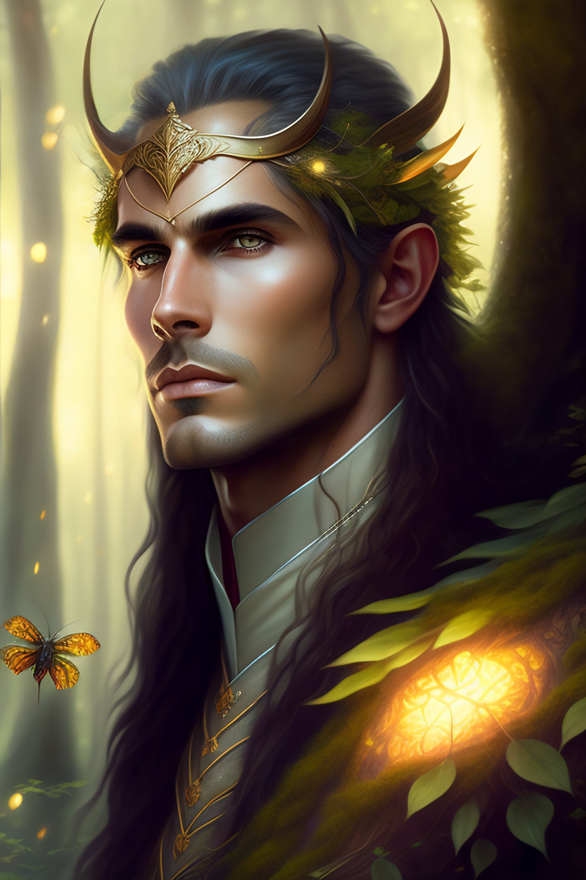 Symmetry portrait of male moss king of elves of fangorn forest, glam, fae, fireflies, forest background, highly detailed, digital painting, artstation, concept art, smooth, sharp focus, illustration, art by artgerm and greg rutkowski and fra angelico and alphons mucha